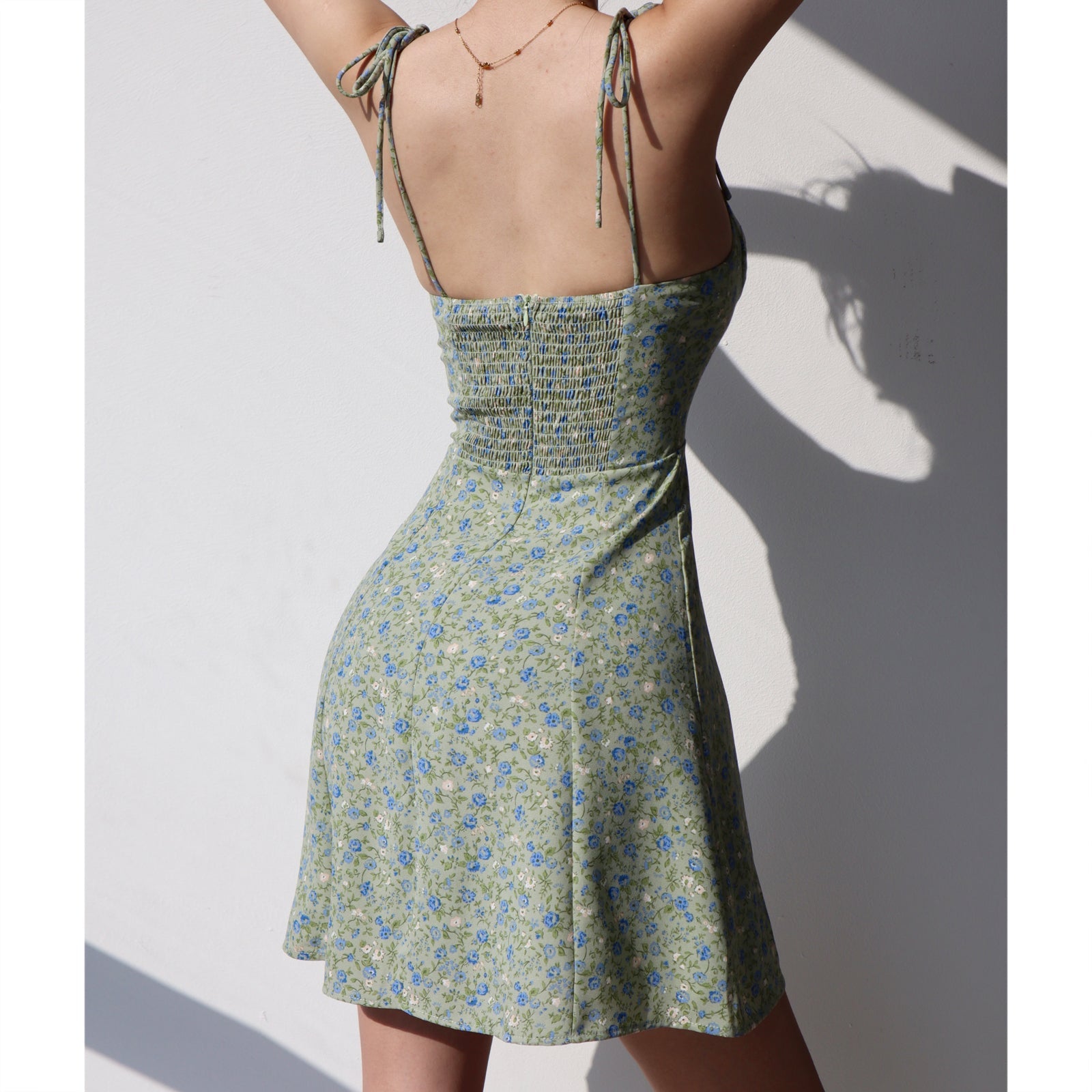 floral v-neck retro tie-shoulder short dress