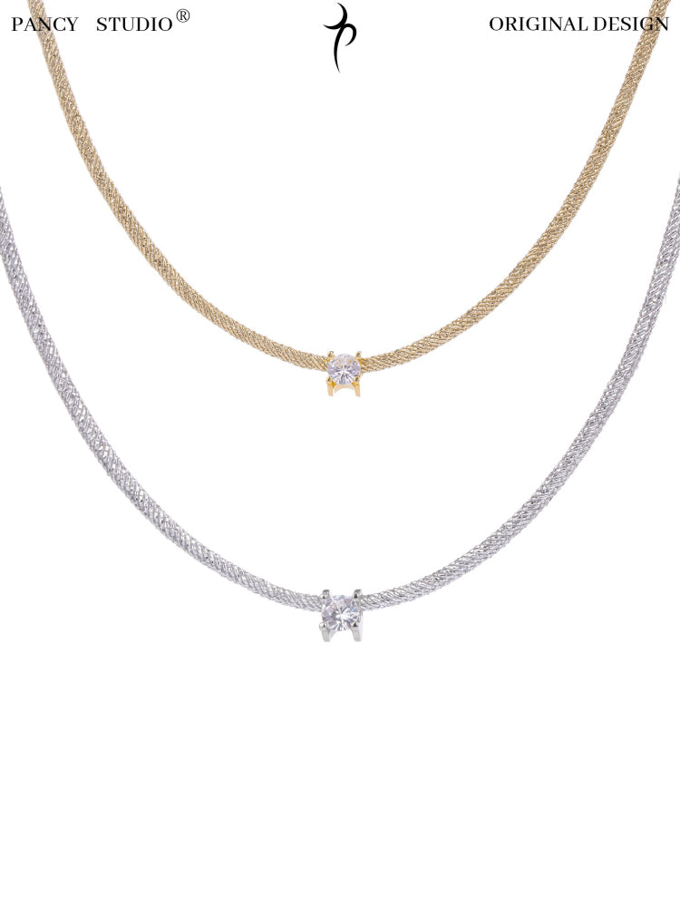 Material: Core-spun rope, copper, zircon