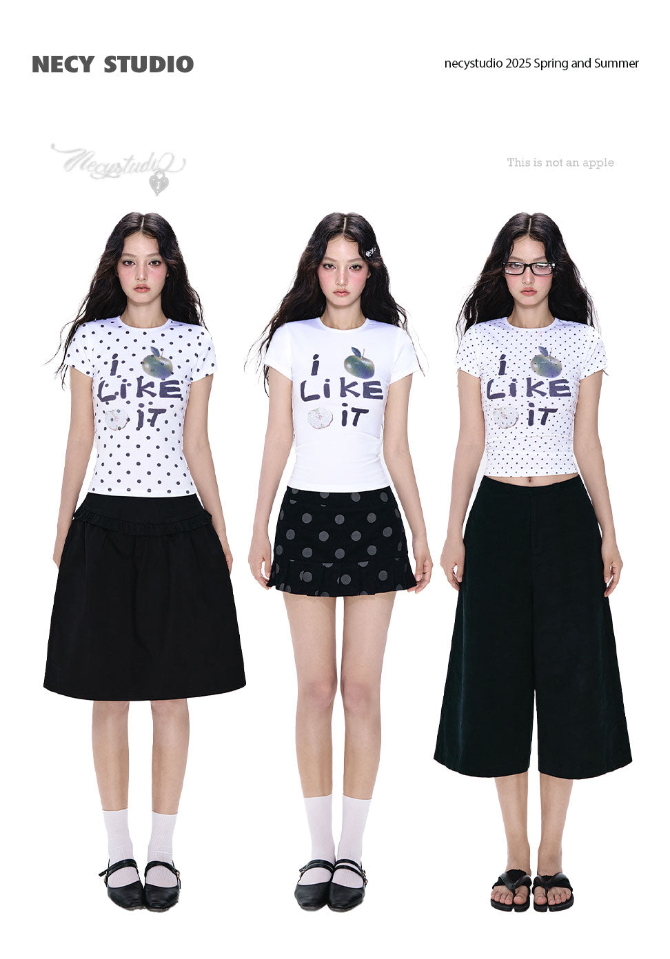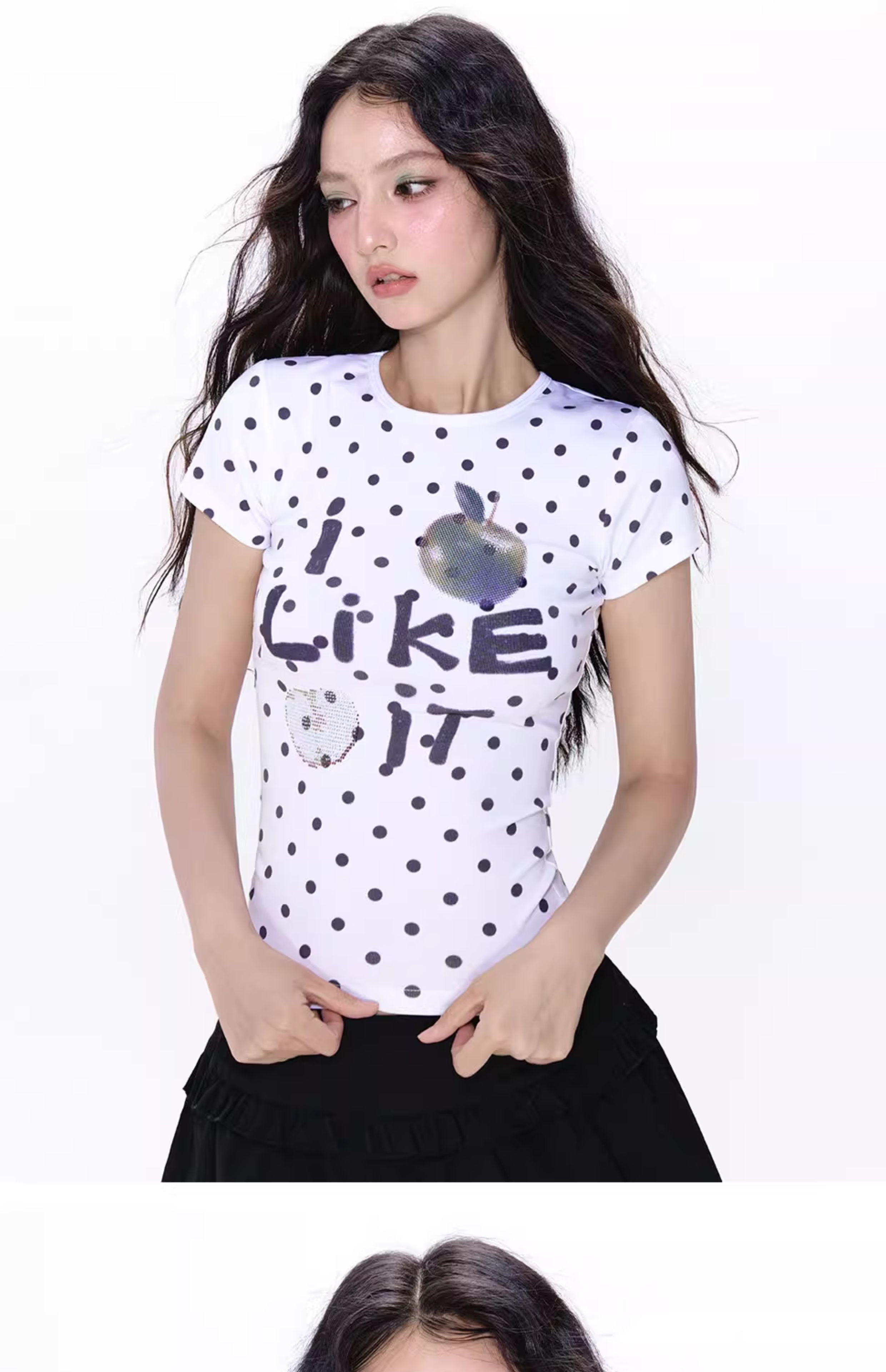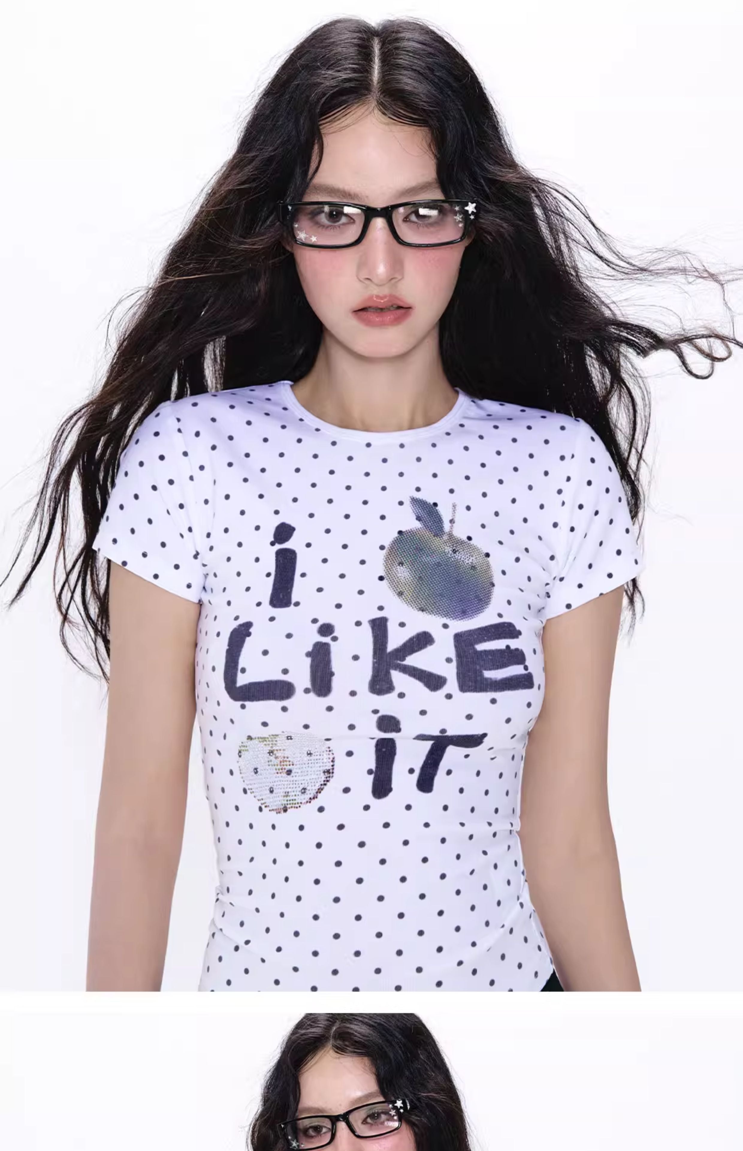 [NECY] apple rhinestone tee