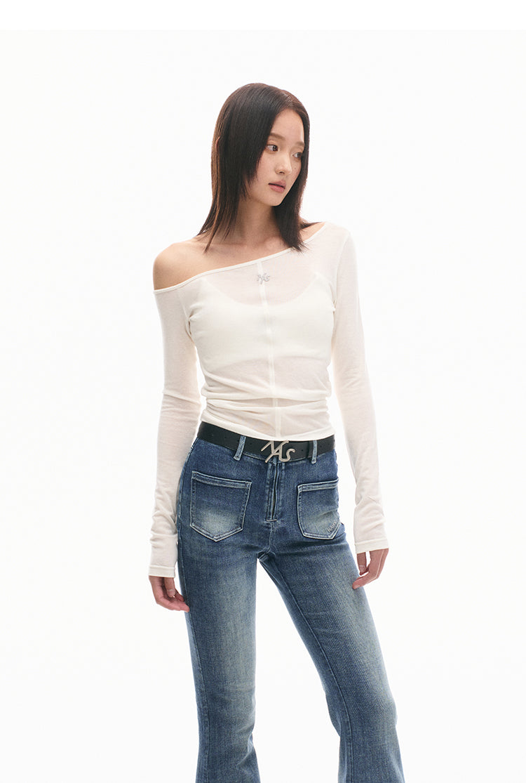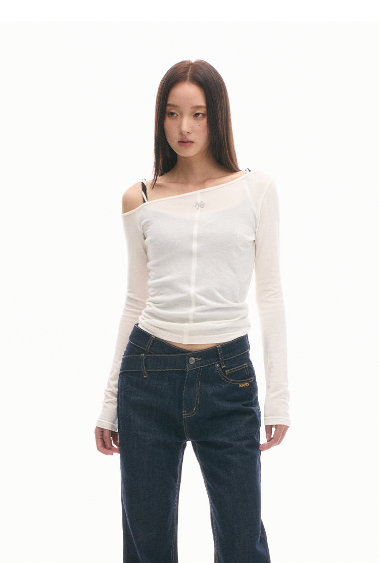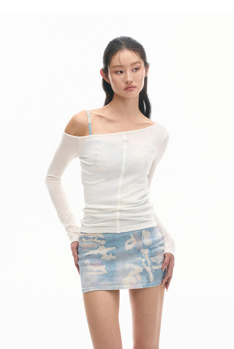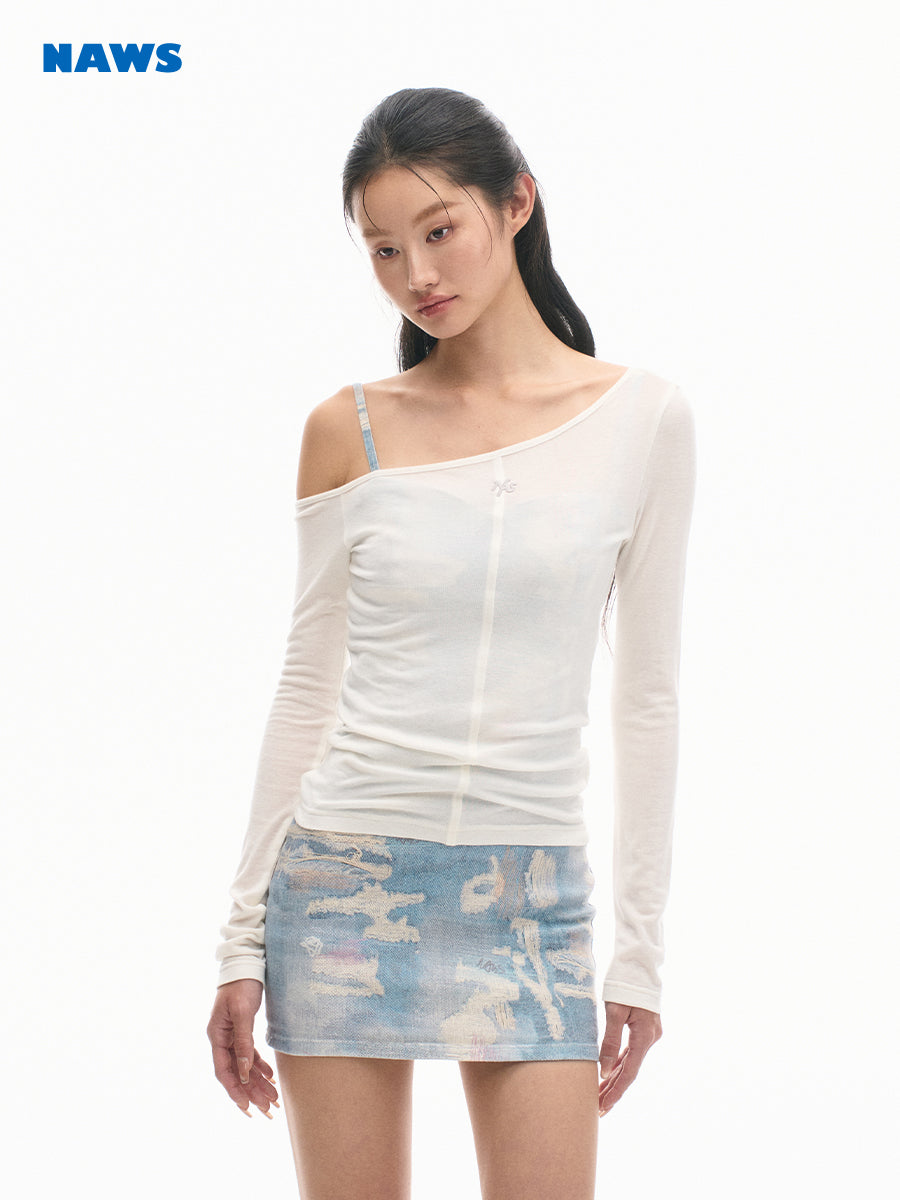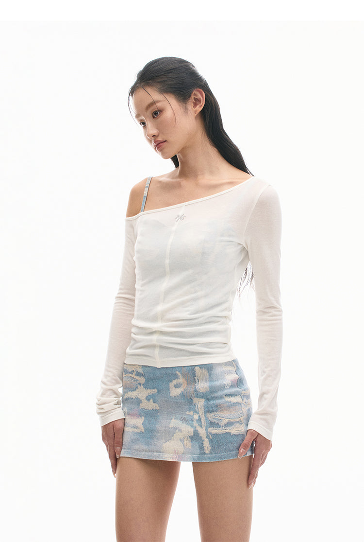 Asymmetrical shoulder design adds flair while highlighting shoulder lines.