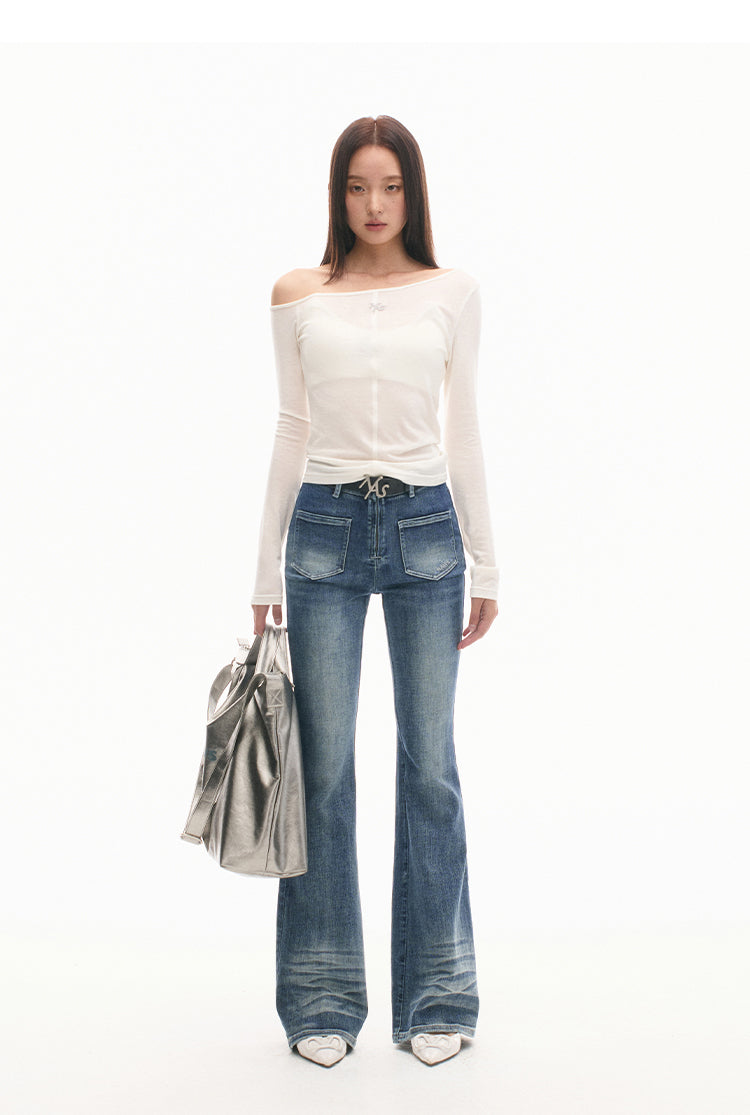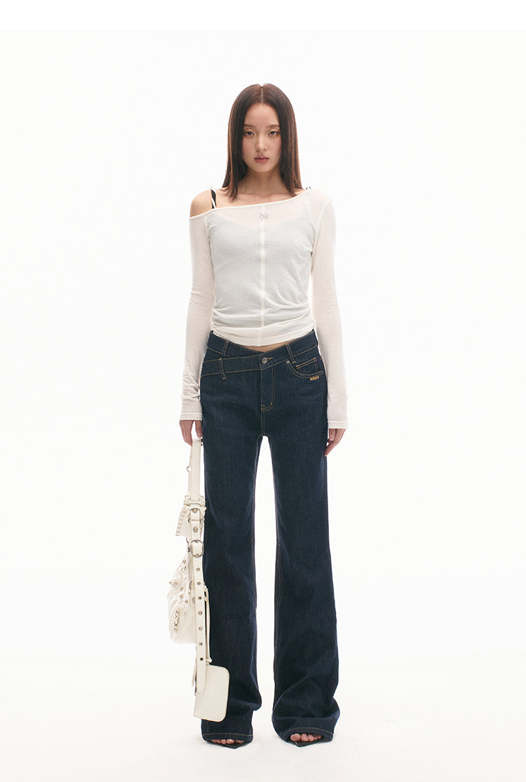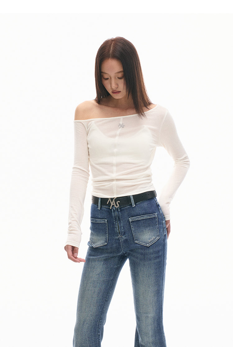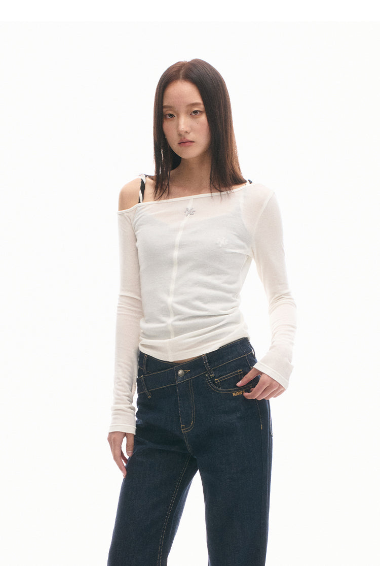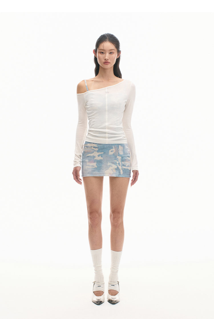Asymmetrical shoulder design adds flair while highlighting shoulder lines.