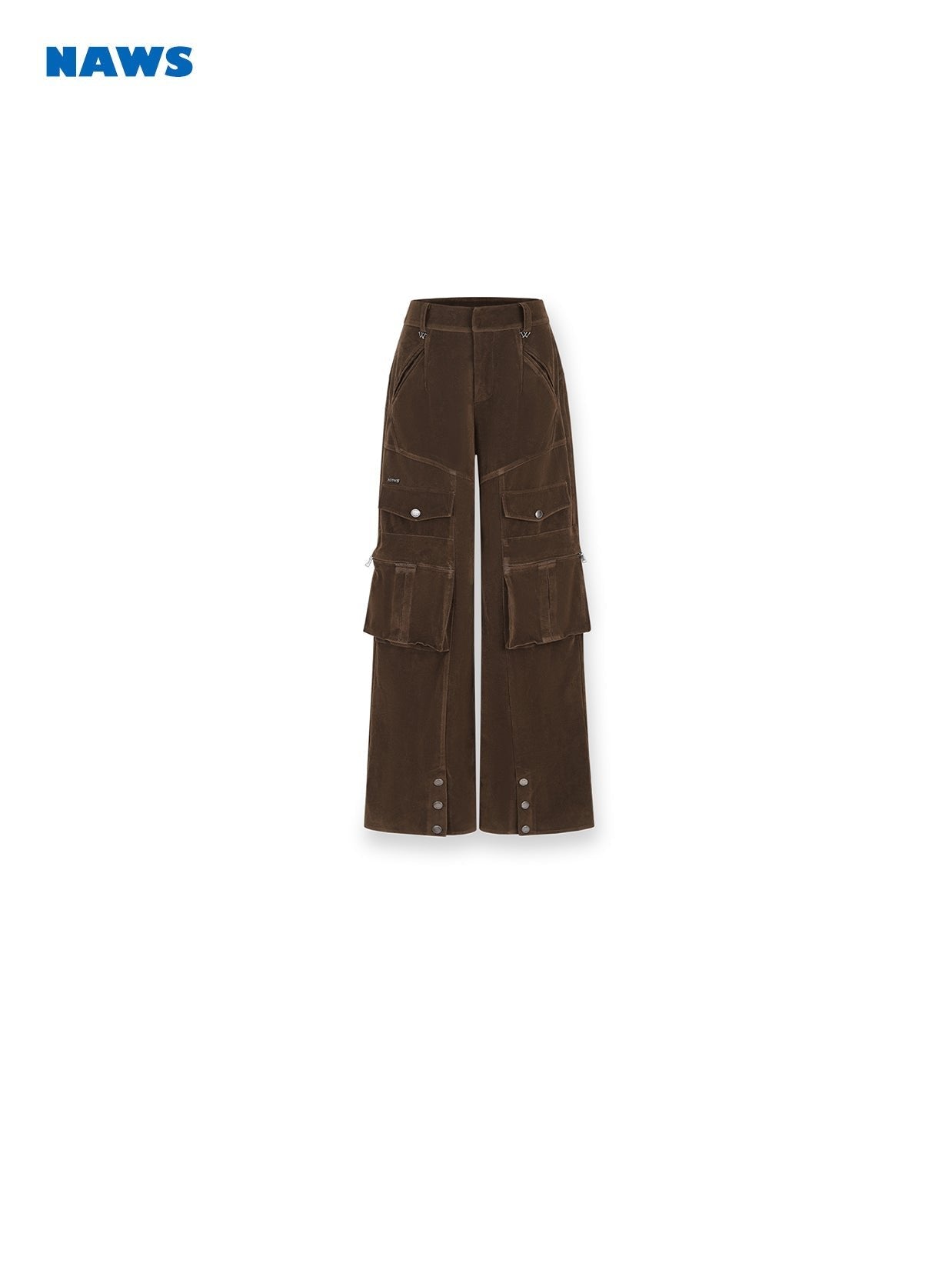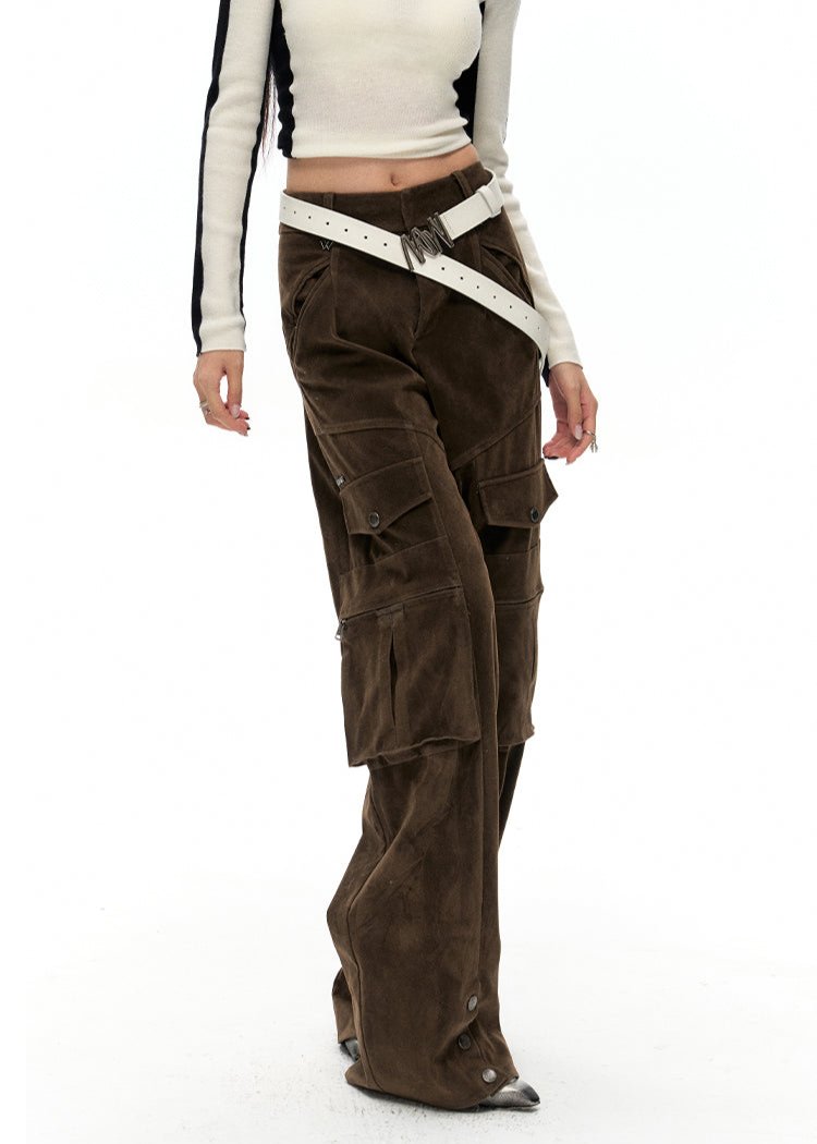 A straight-cut, loose-fitting, casual work pants with a drawstring waistband. The relaxed silhouette provides comfortable fit for various leg shapes. The drawstring at the cuffs can be adjusted to create a flared leg style, adding a casual and laid-back vibe.