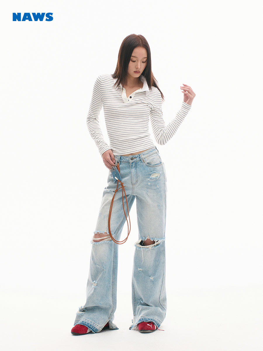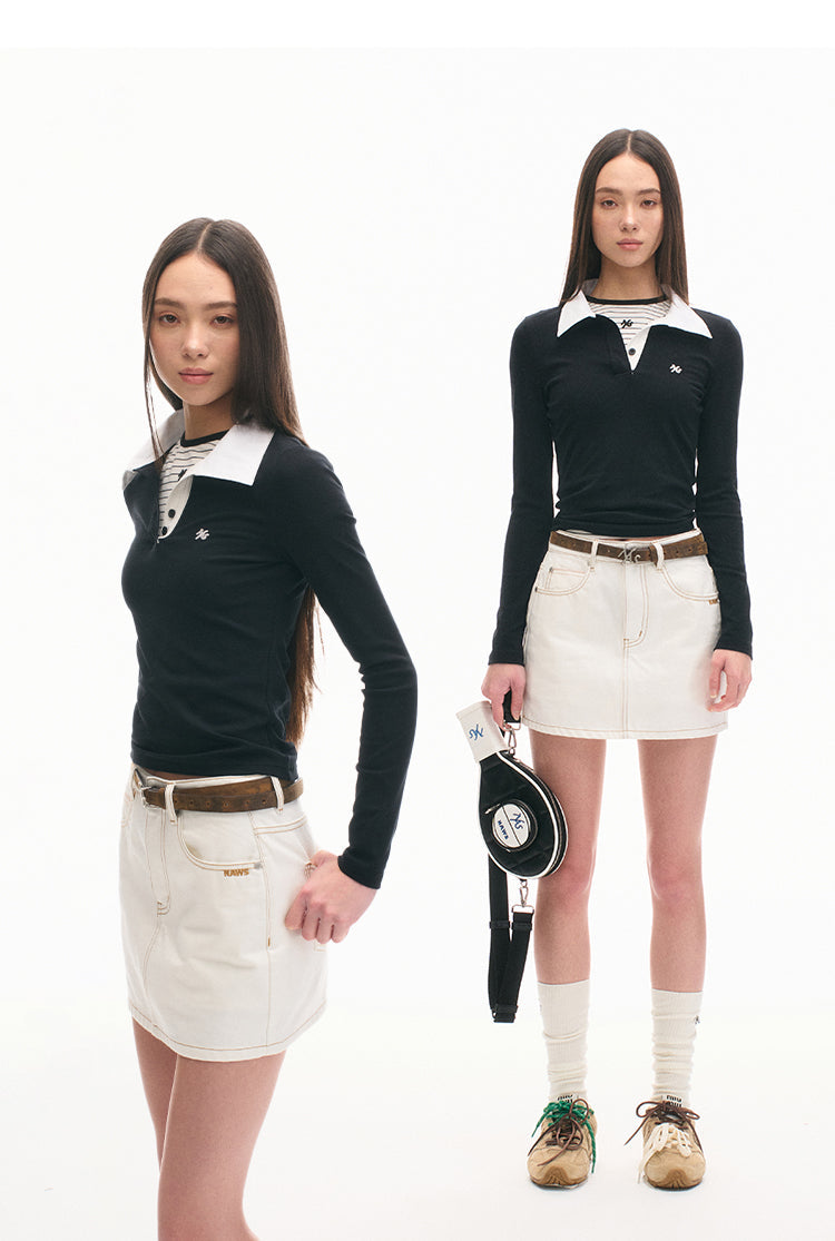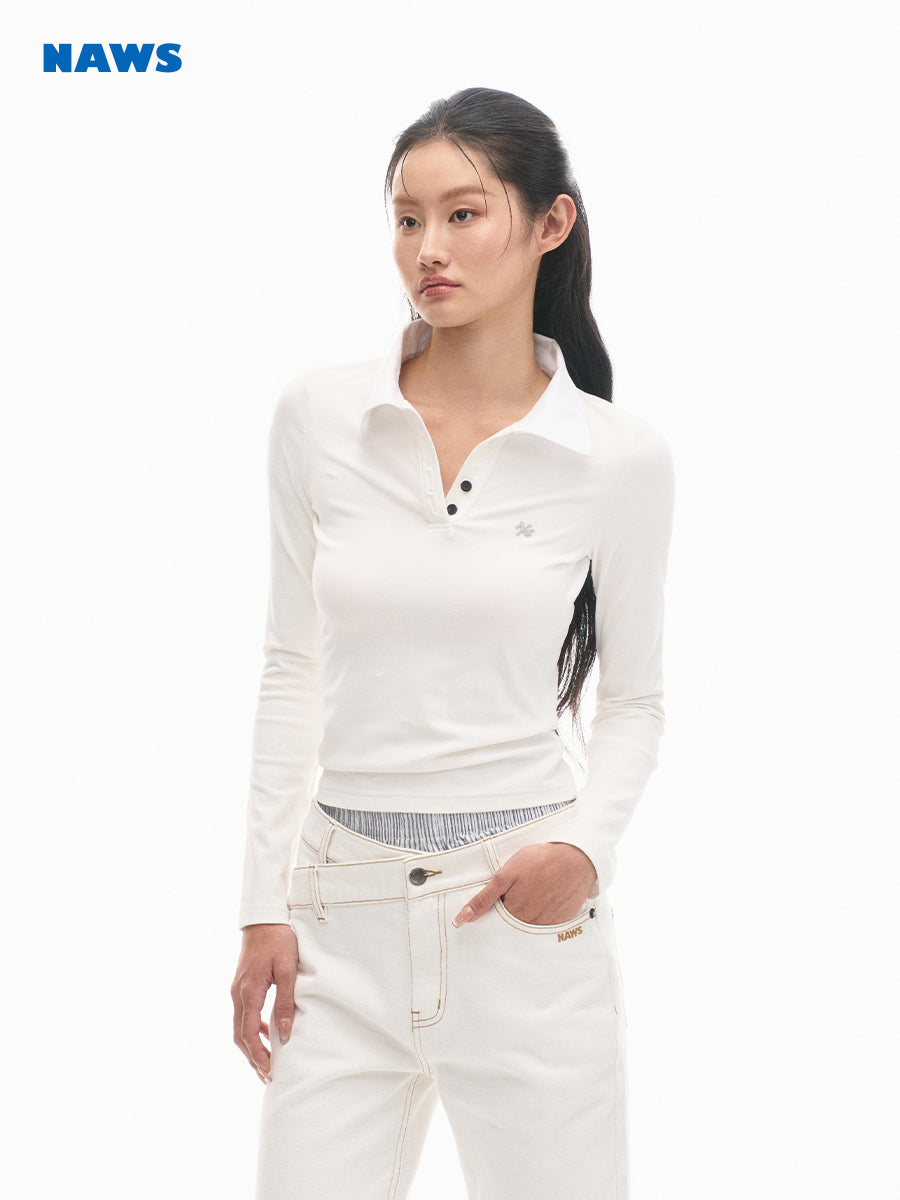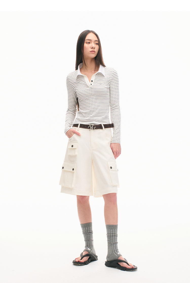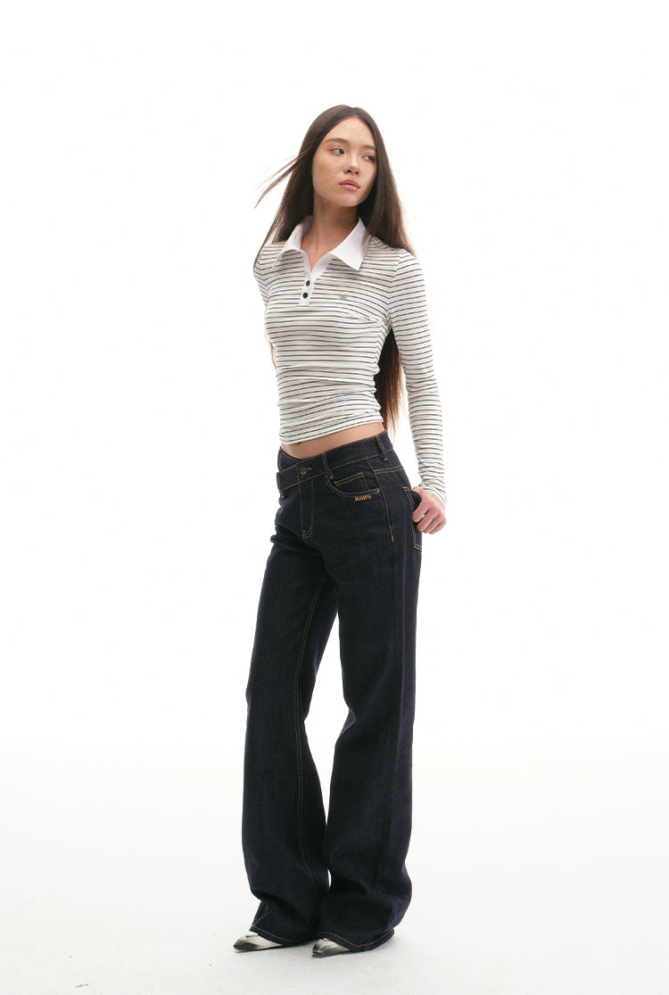 [NAWS] Long Sleeve Polo Striped Retro T-Shirt