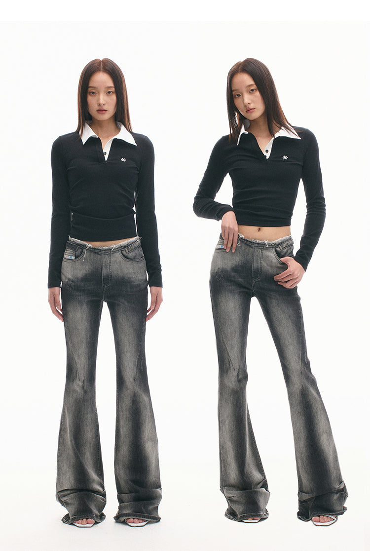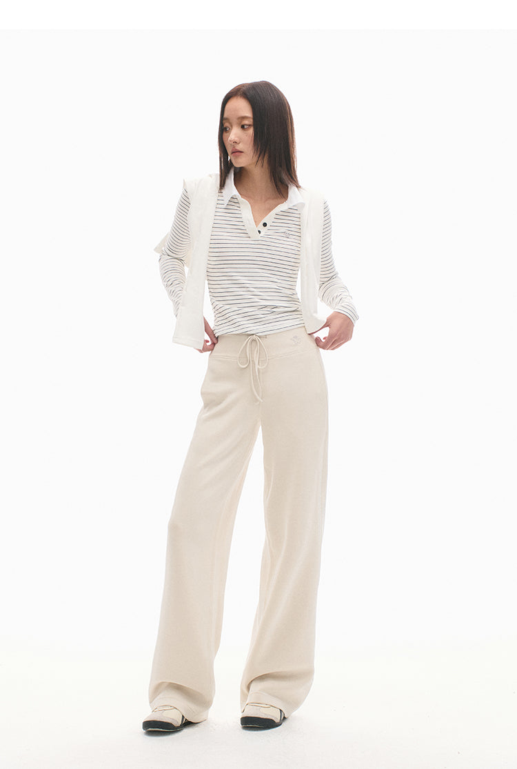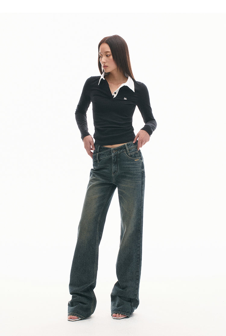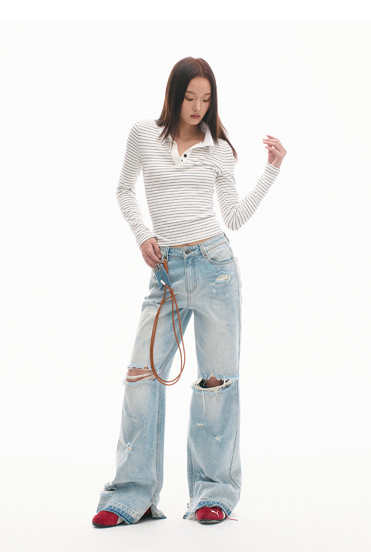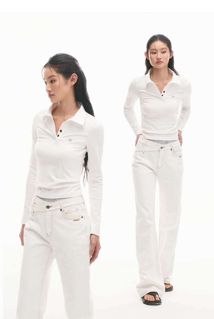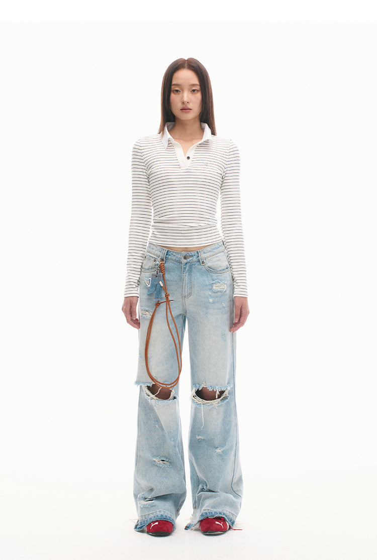 [NAWS] Long Sleeve Polo Striped Retro T-Shirt