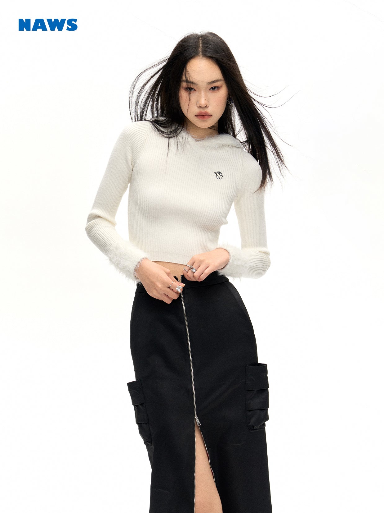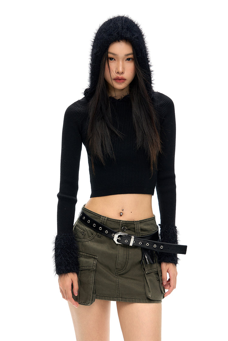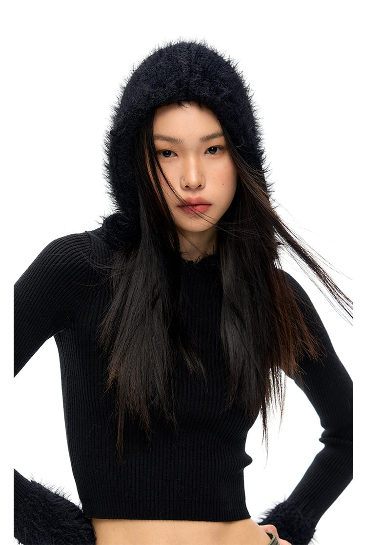 [NAWS] Mink Fur Slim Hooded Cardigan