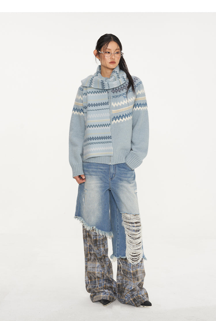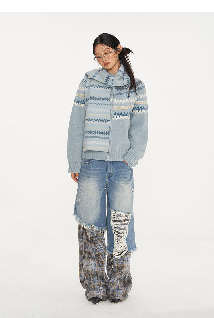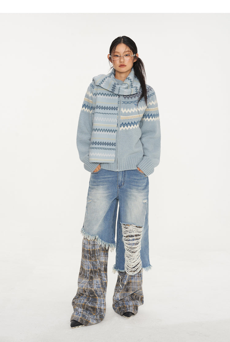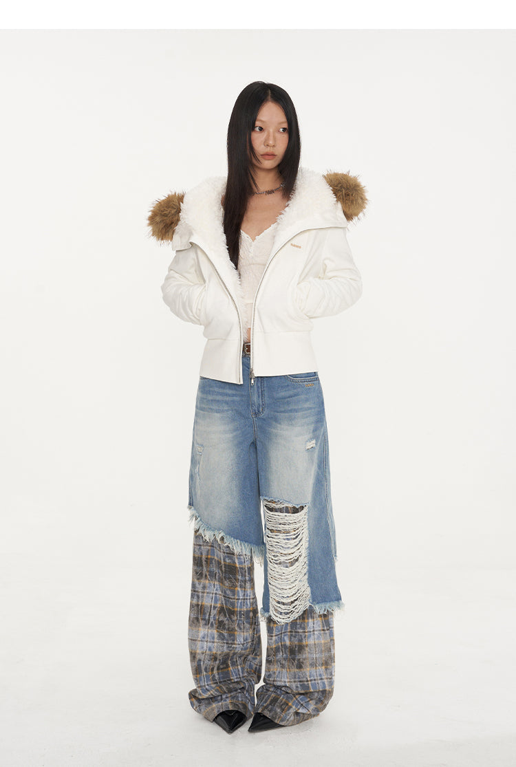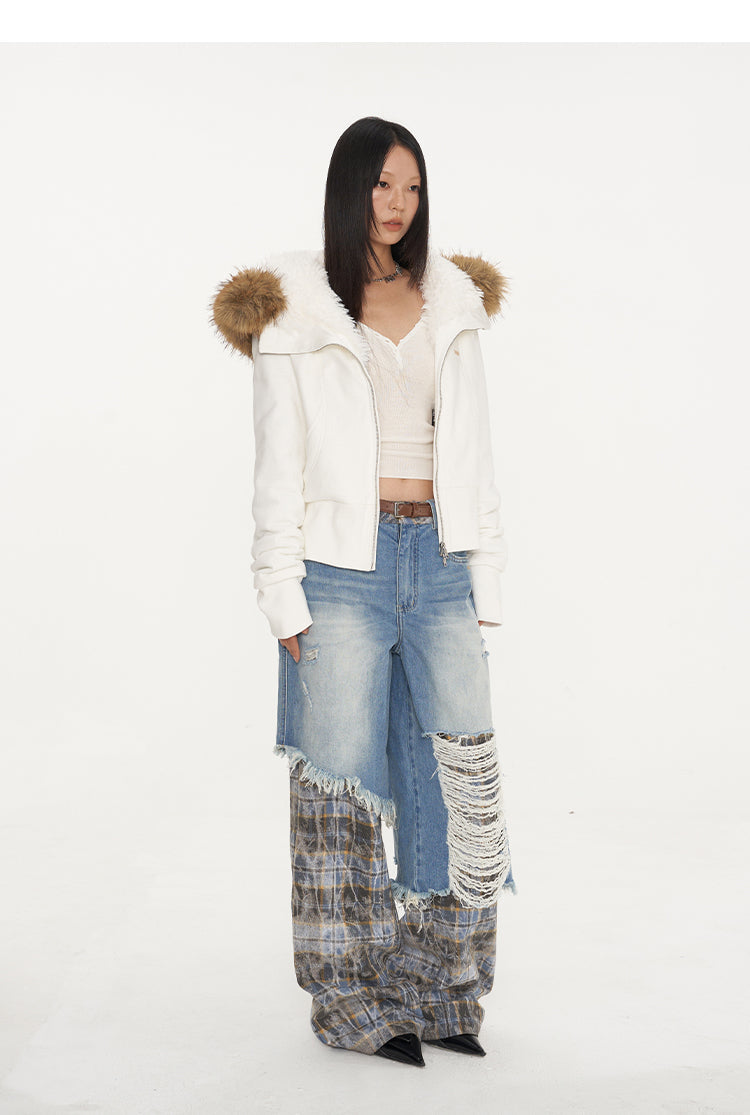 [NAWS] Plaid Stitching Wide Leg Jeans
