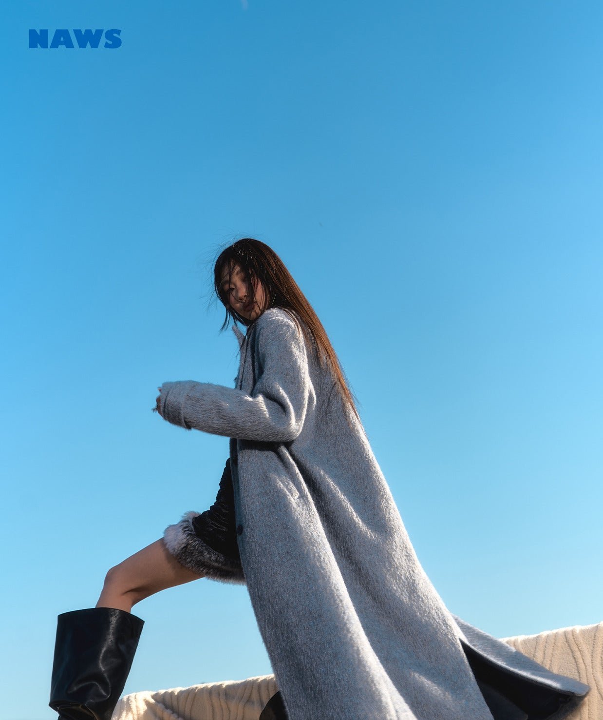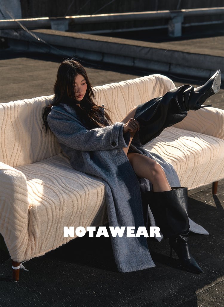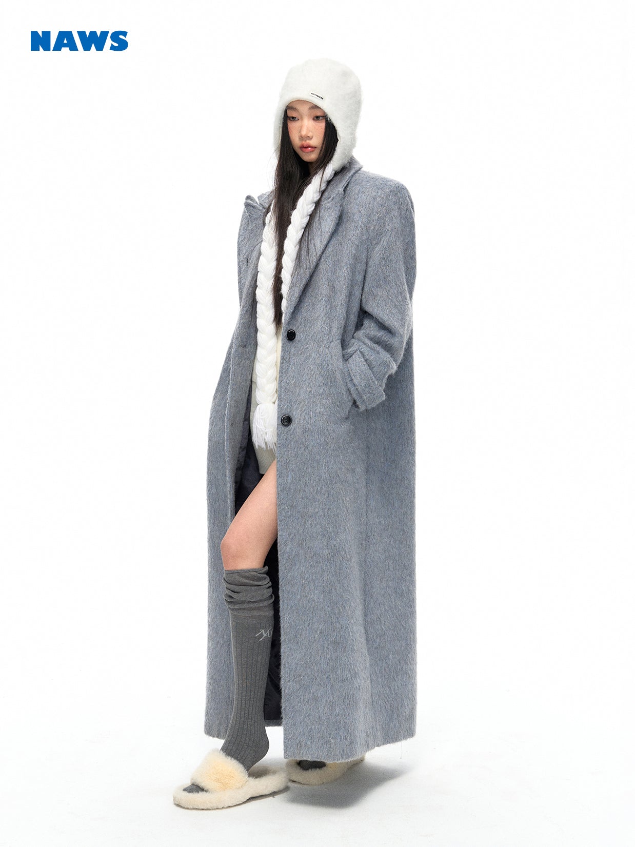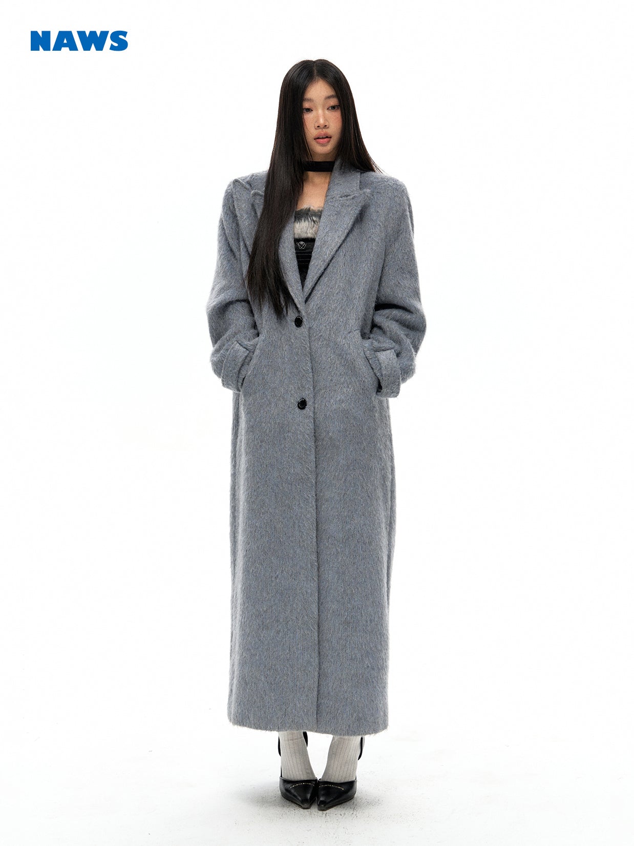 [NAWS] Straight wide-cut silver wool coat