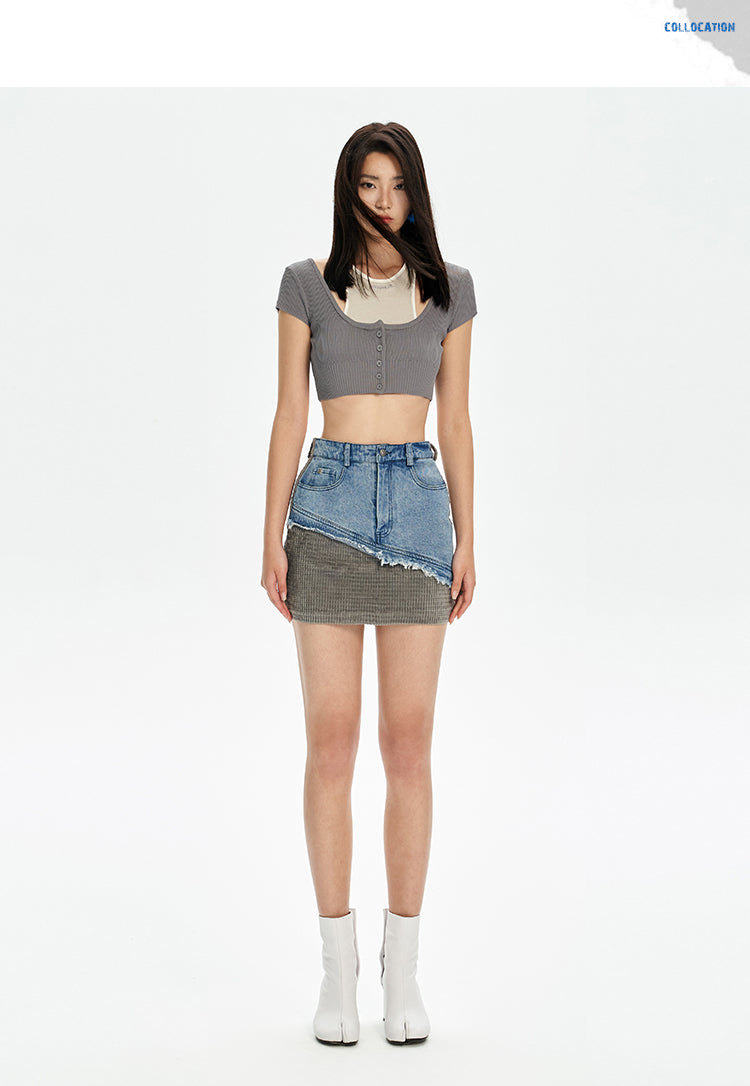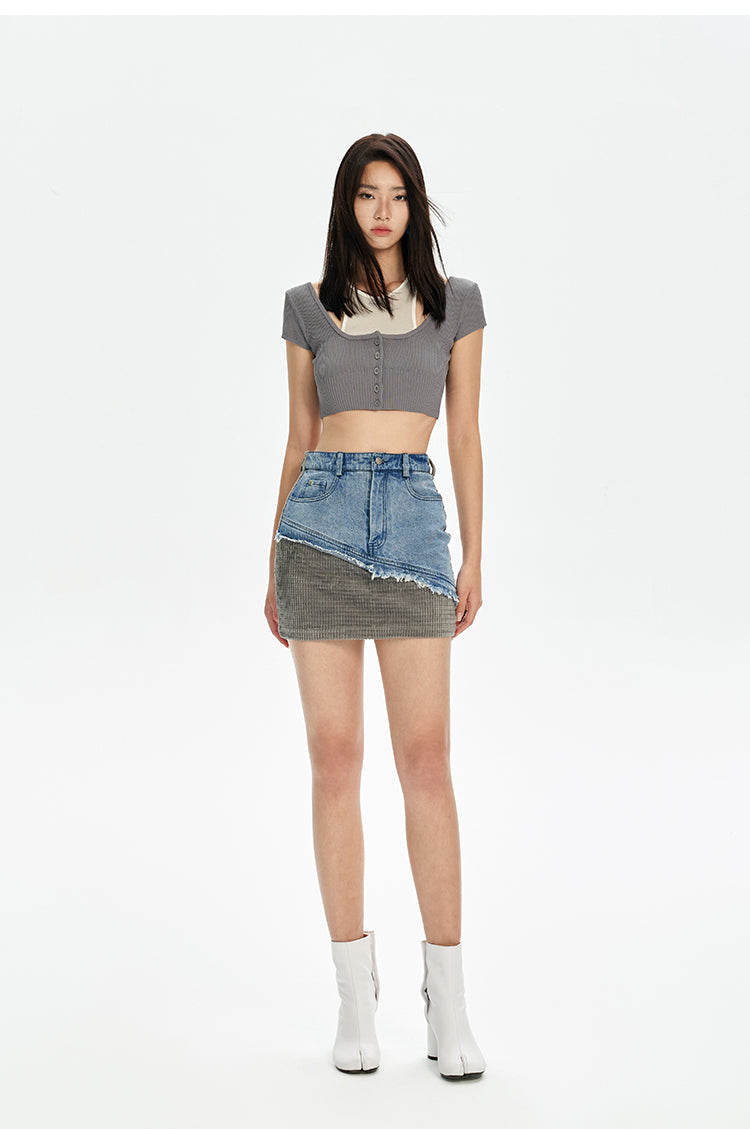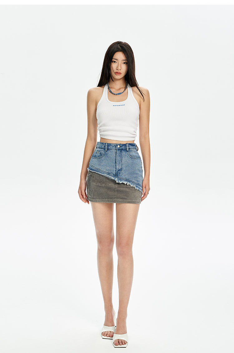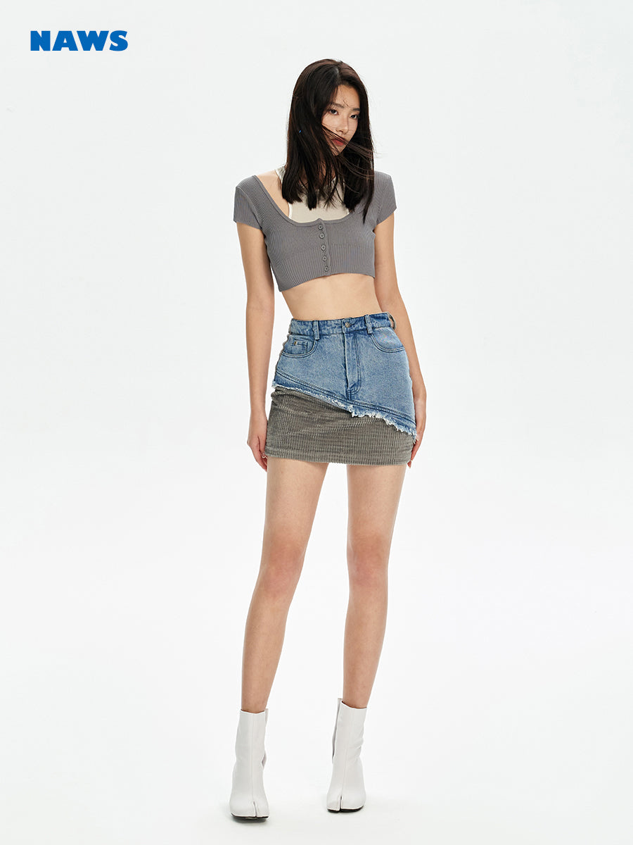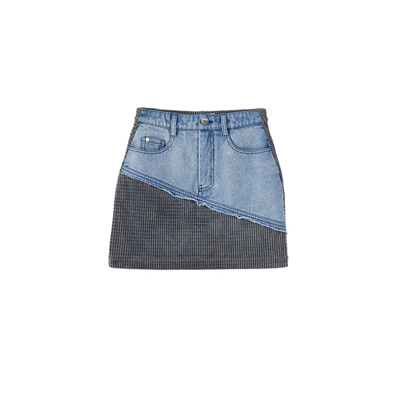 [NAWS] Washed Denim Splicing Low-Rise Skirt