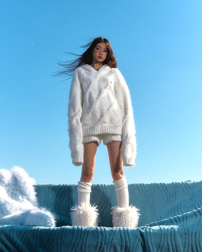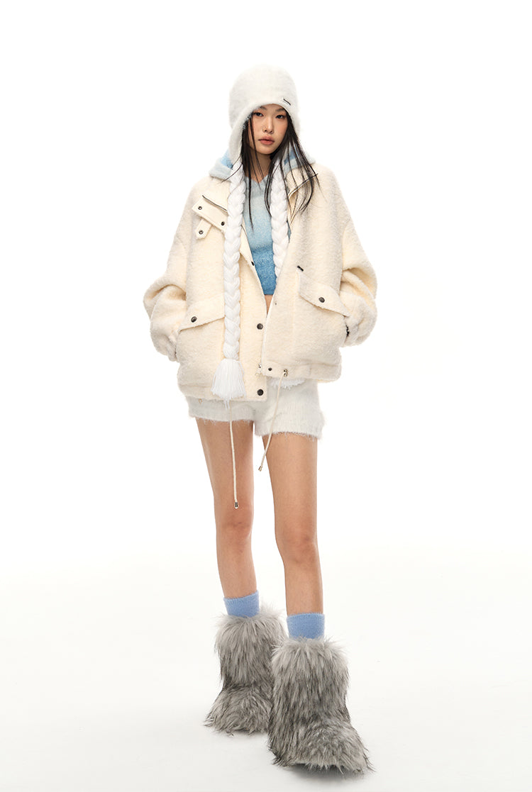 The loose and comfortable silhouette is suitable for all body types. The oversized design provides a relaxed and comfortable feel. The fluffy faux fur adds a touch of luxury and warmth.
