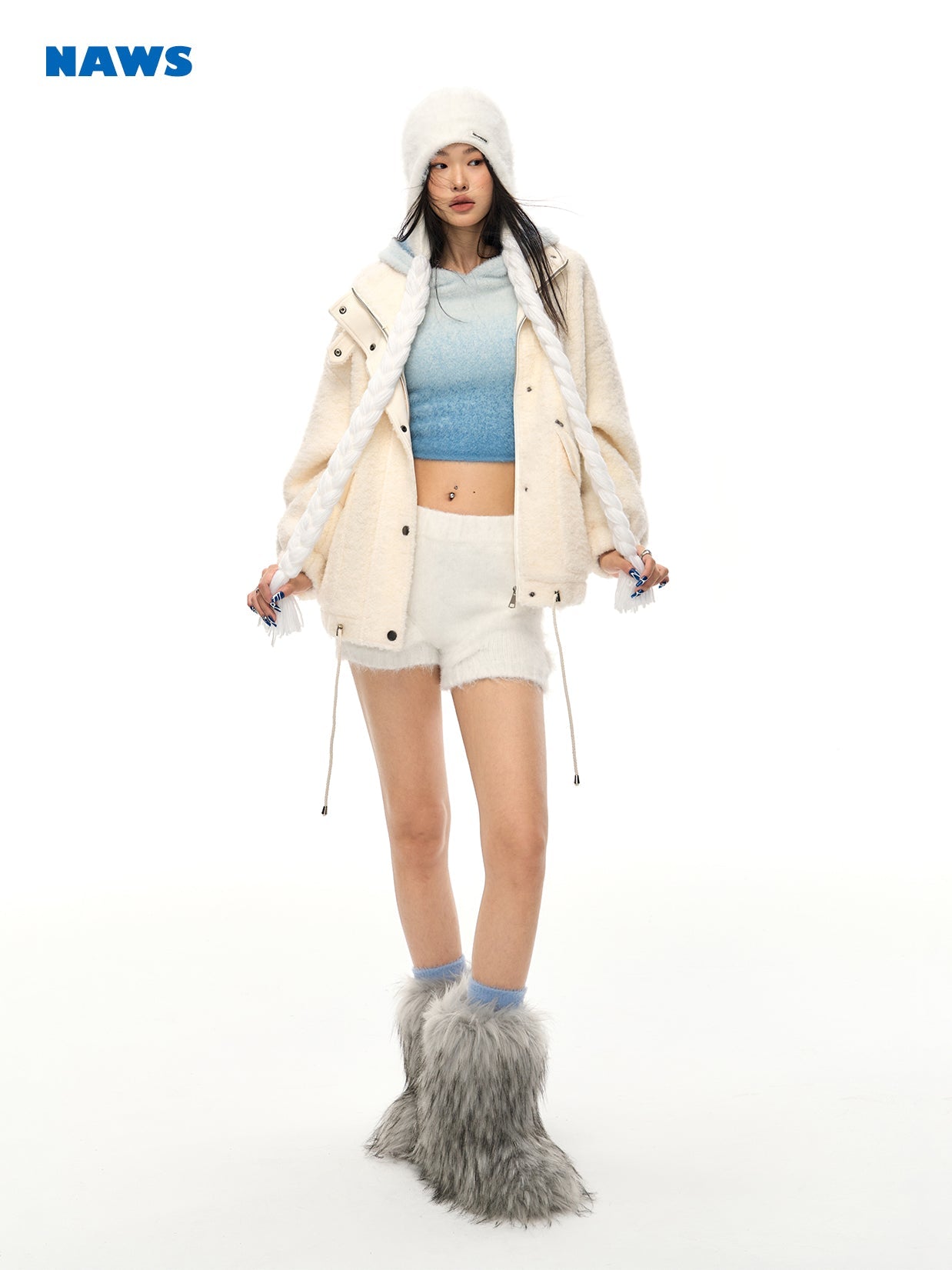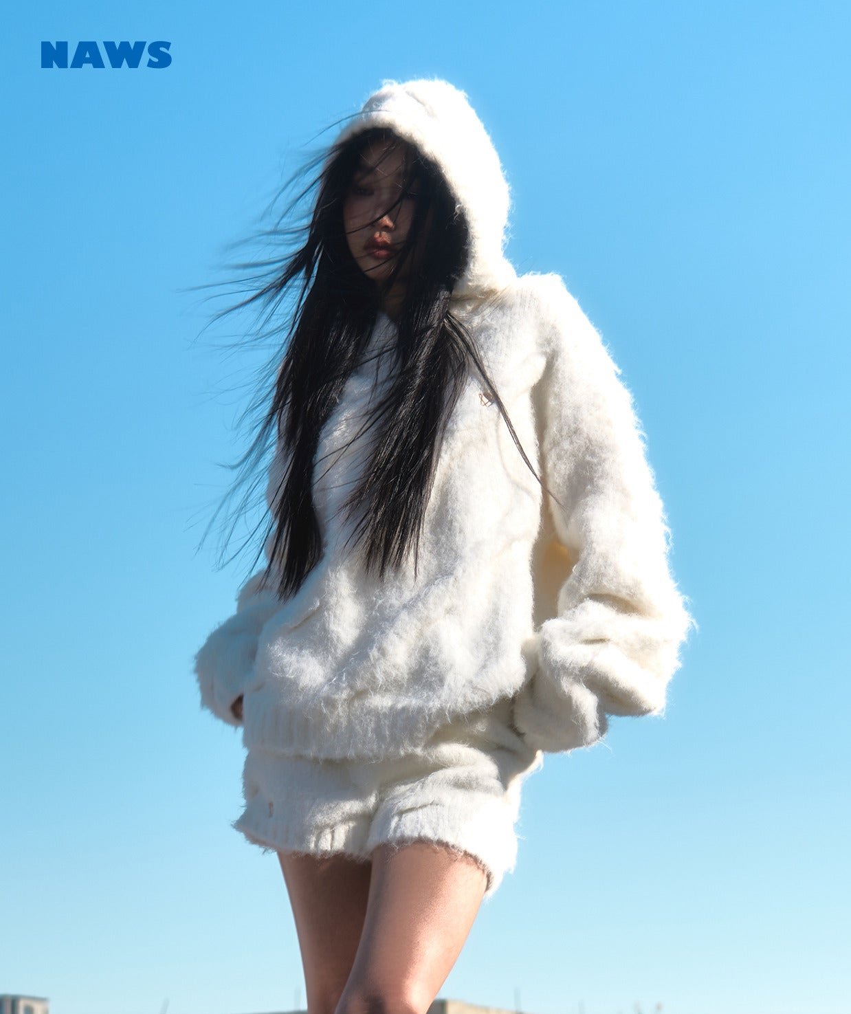 Relaxed and Comfortable, Oversized, Oversized Hooded and Oversized Fur Coat Set