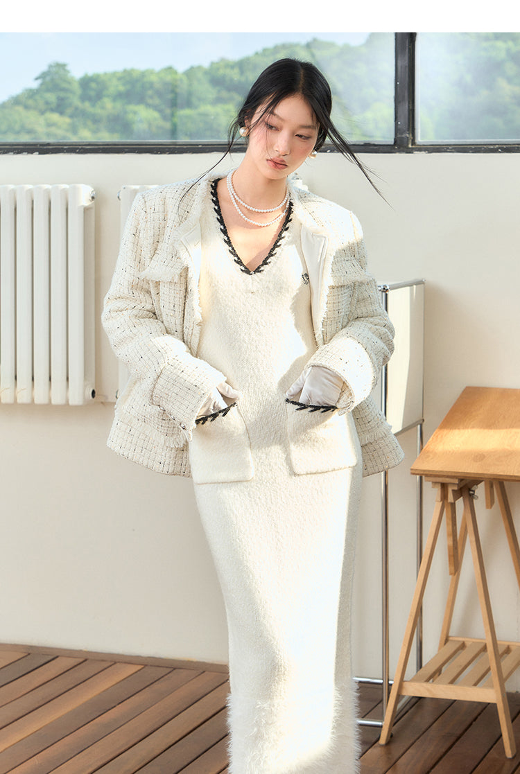 [NAWS] Woolen Mohair V-Neck Knit Dress White