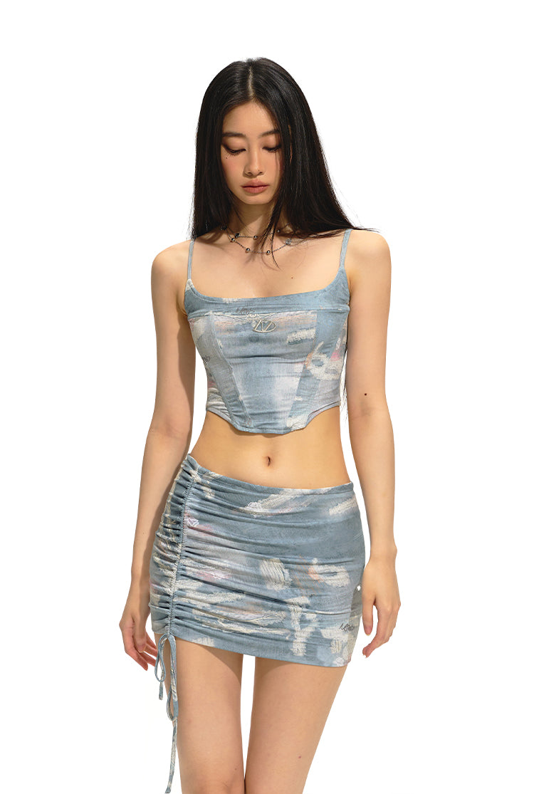 [NAWS] Printed fishbone vest & Pleated hip skirt