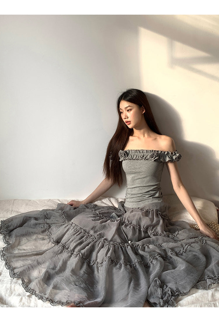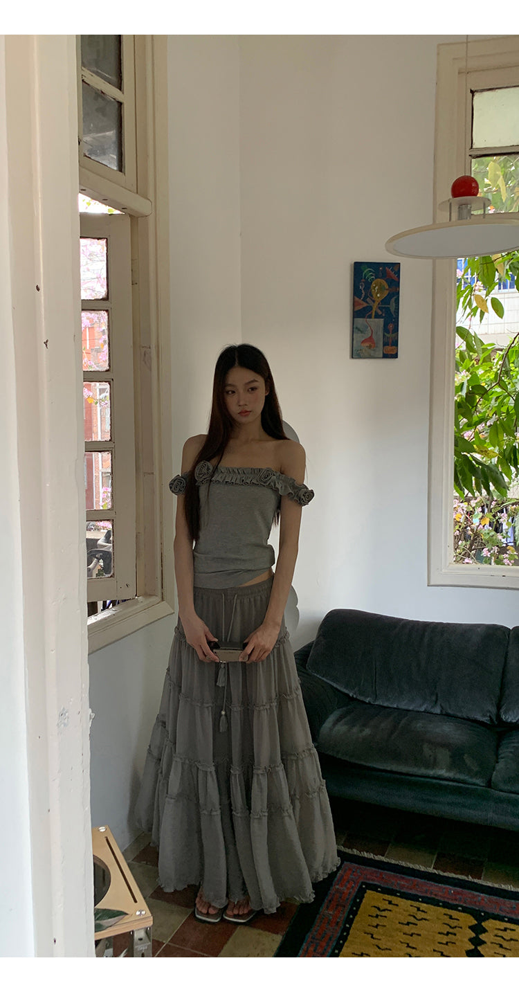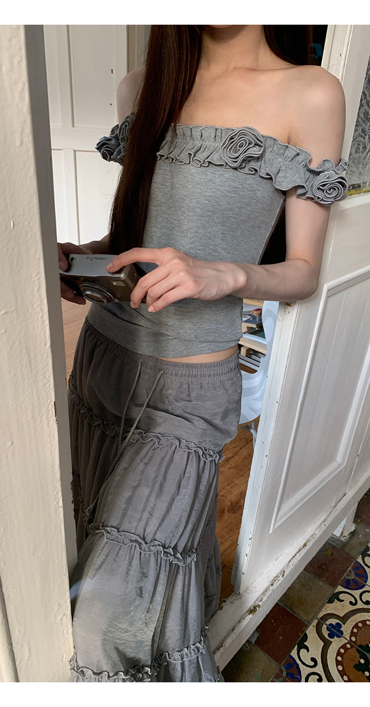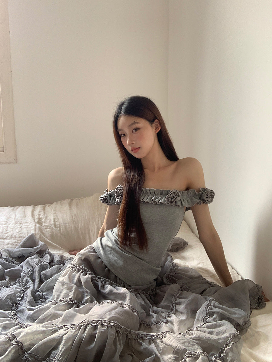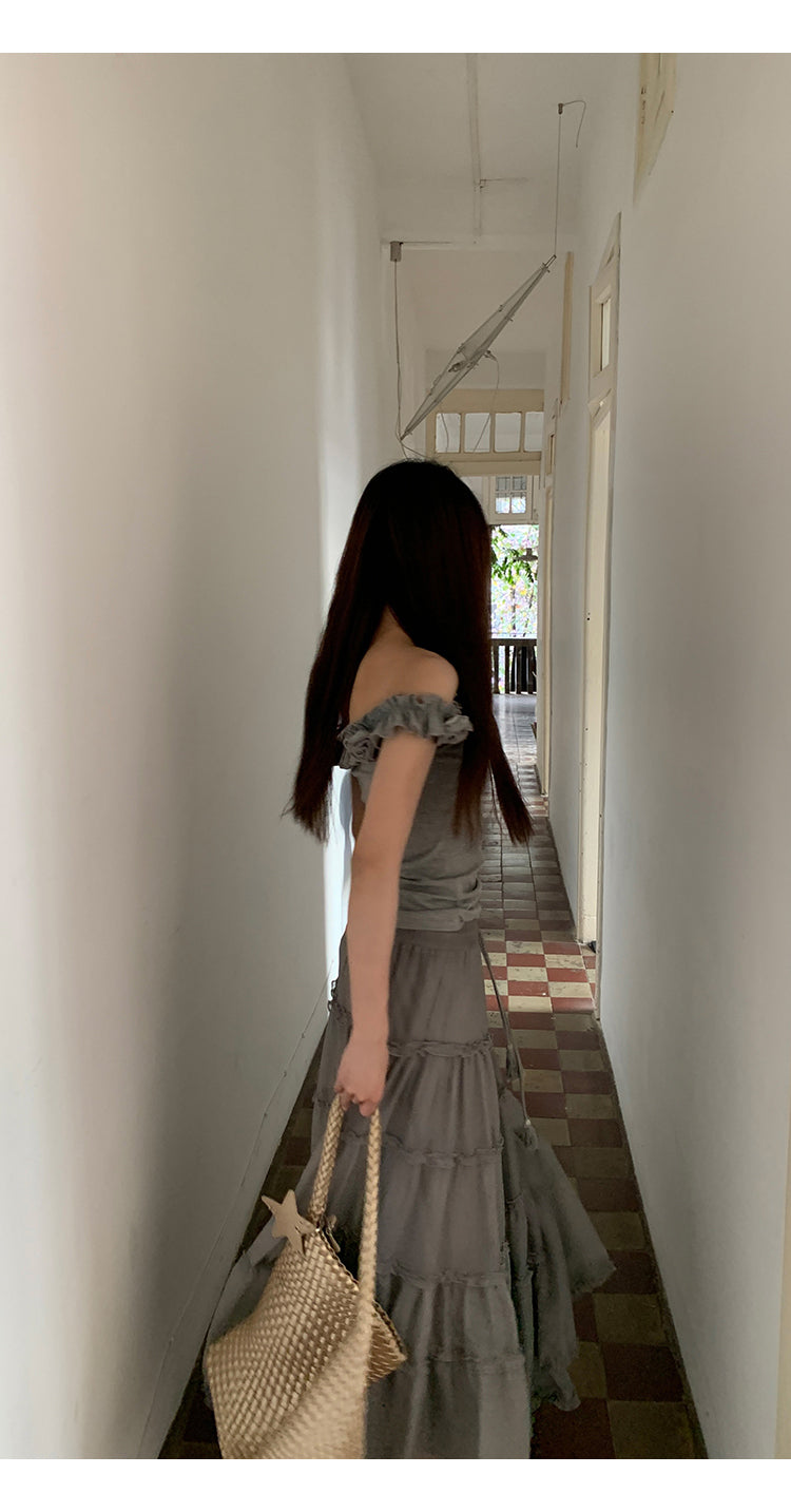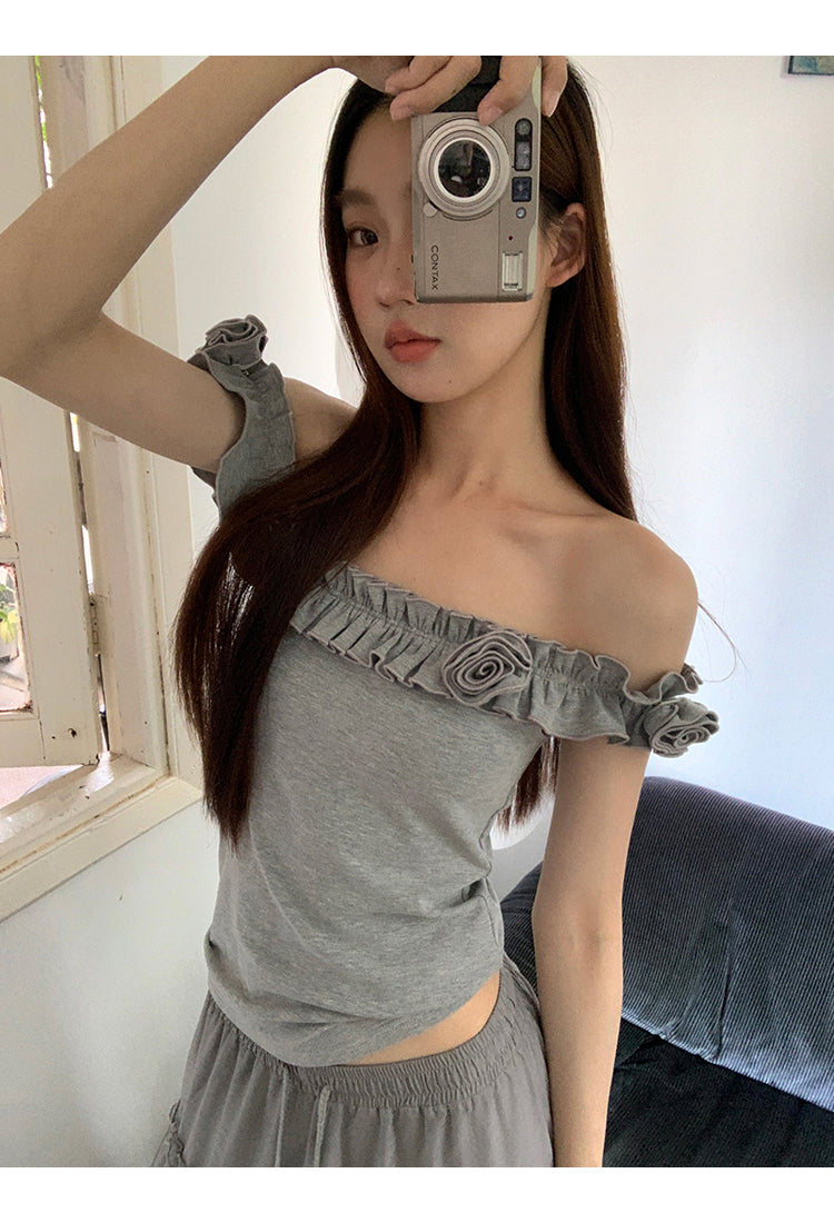 gray off-shoulder tee