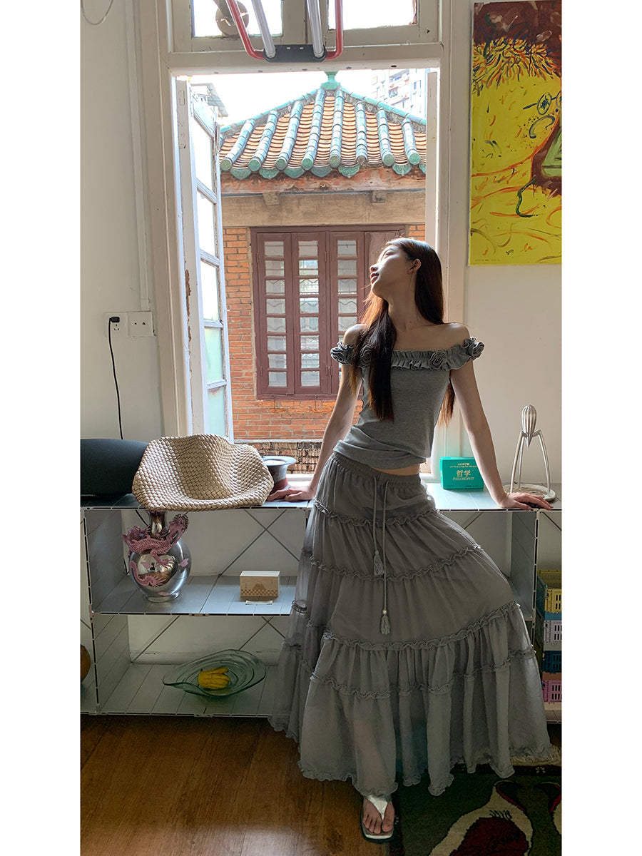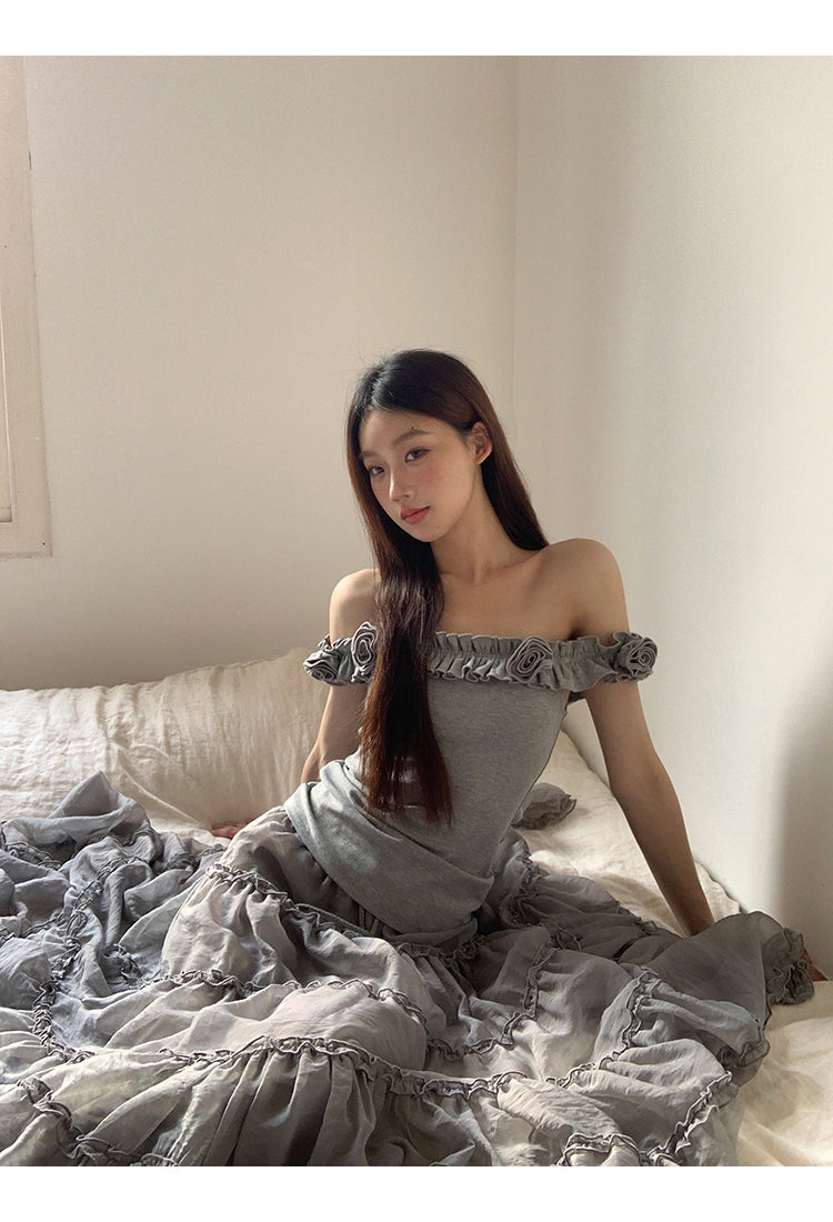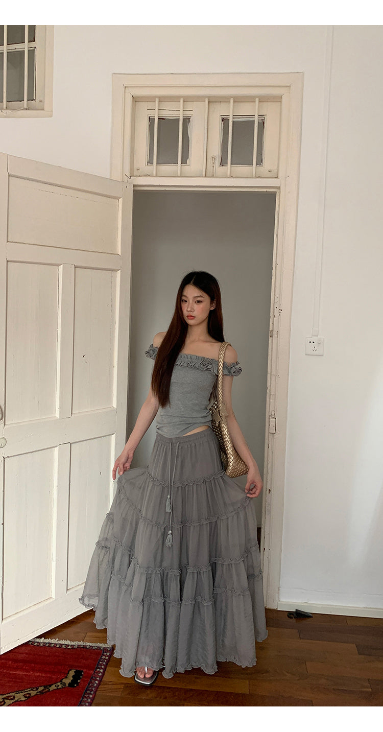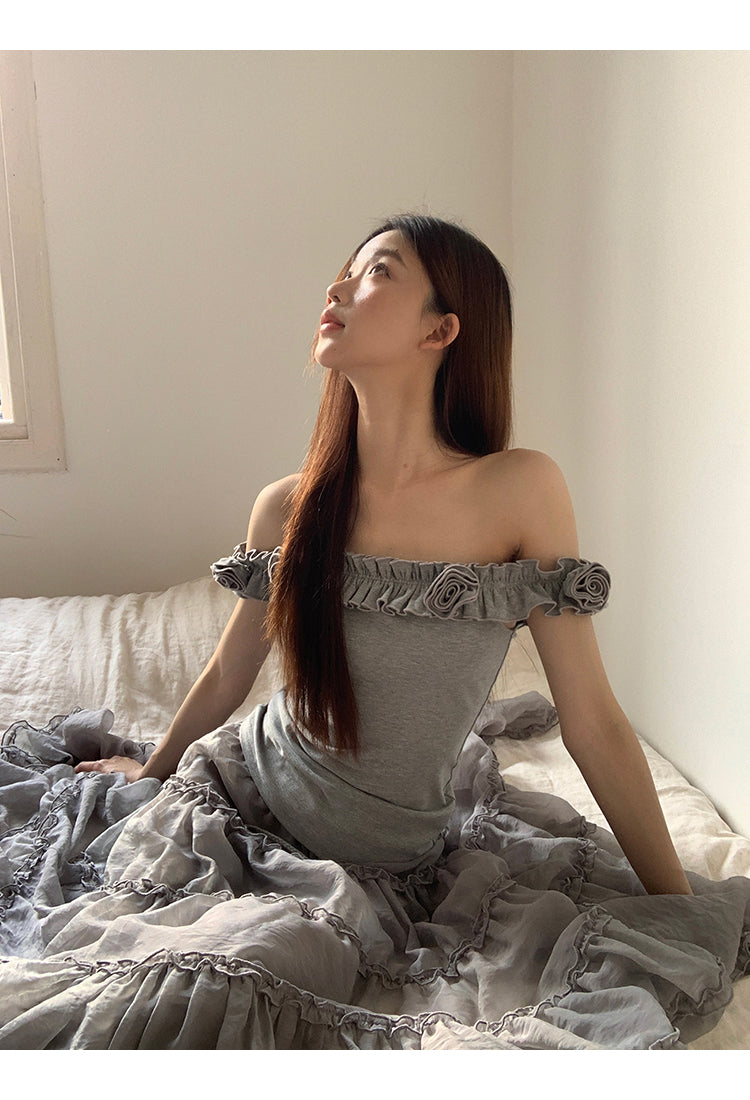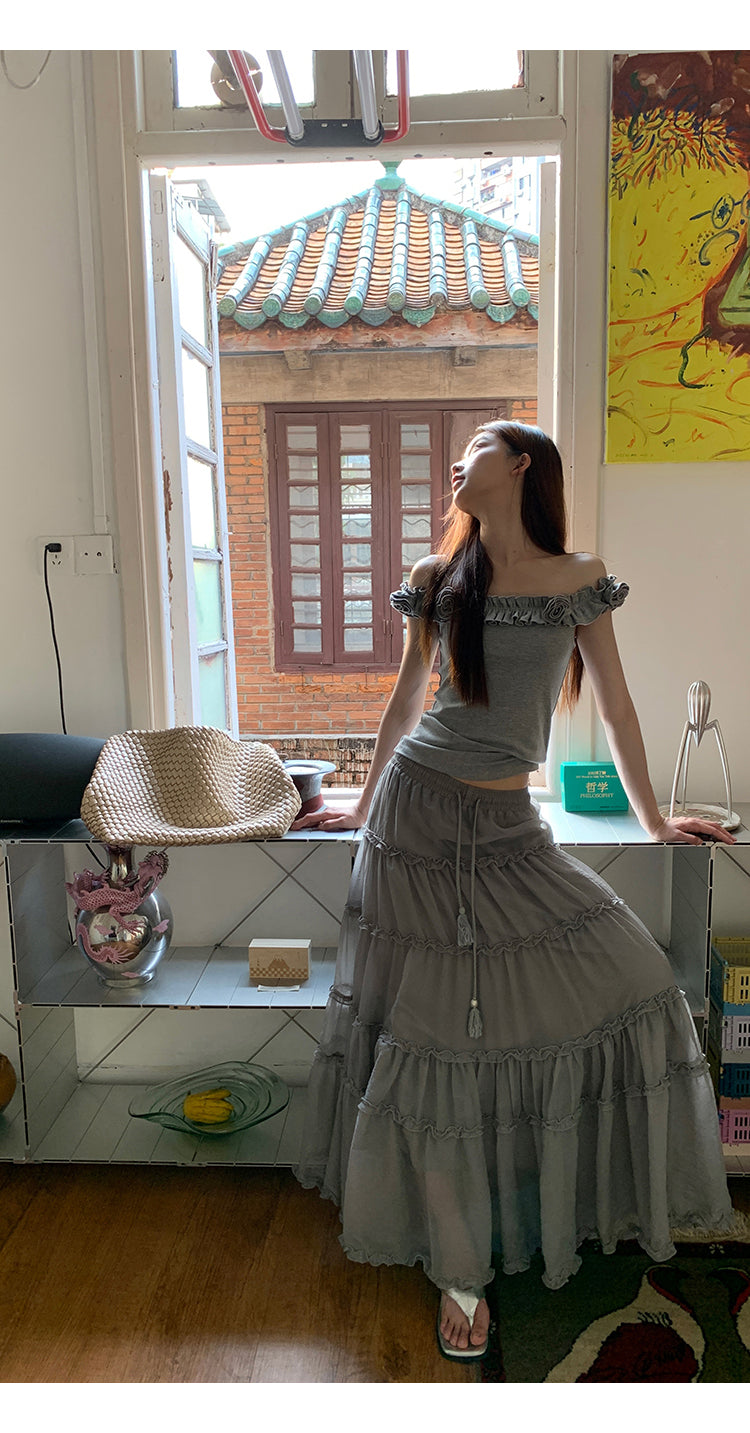 gray off-shoulder tee