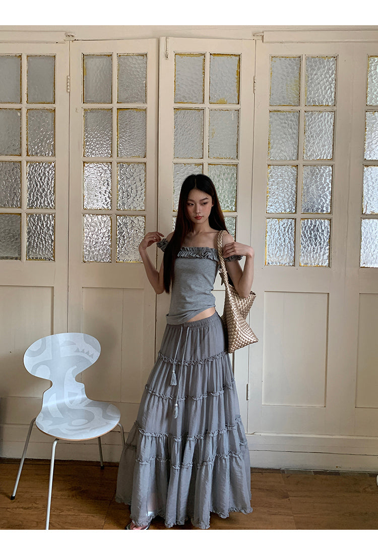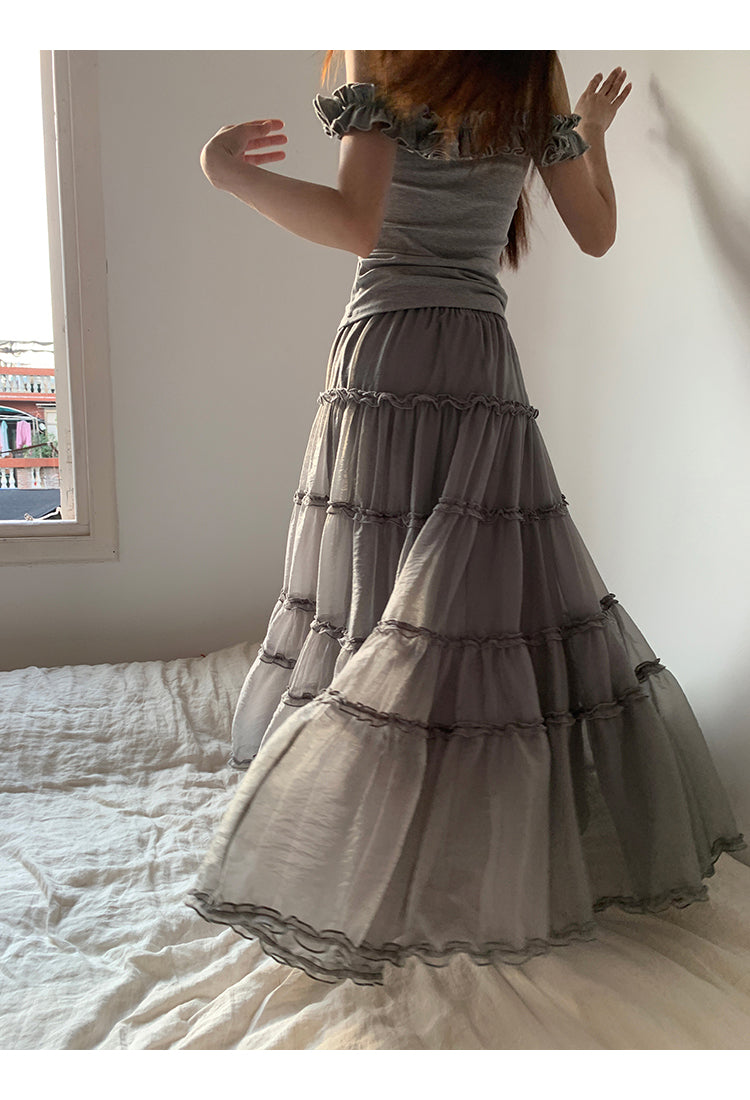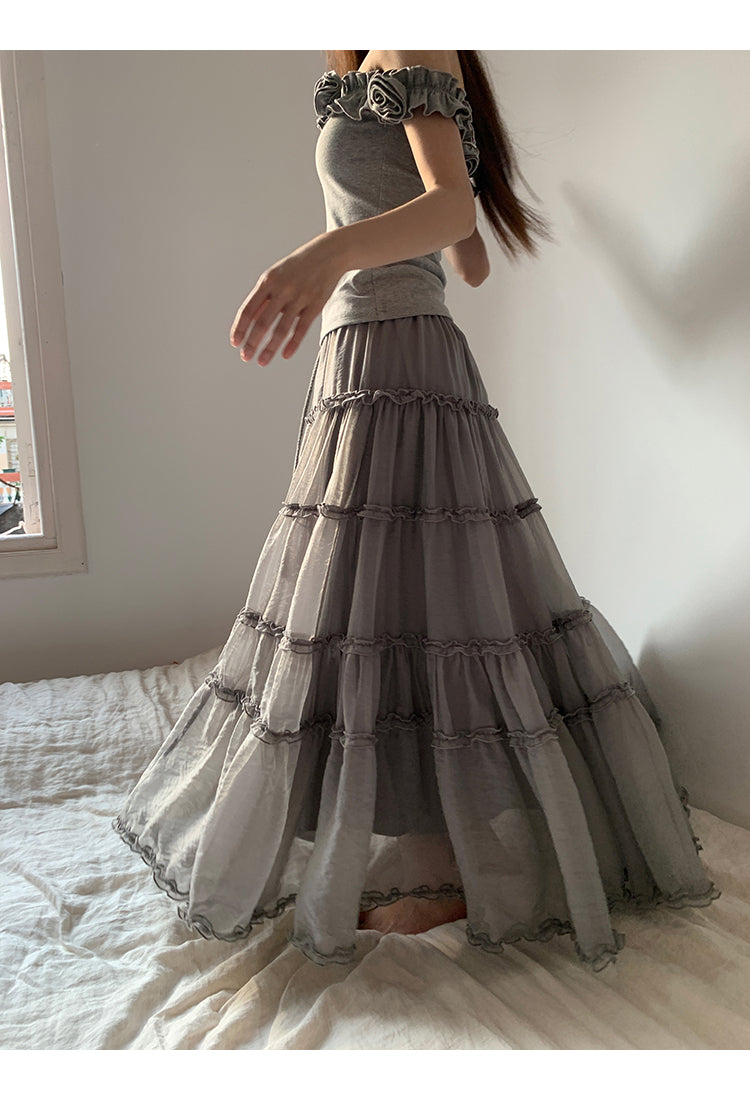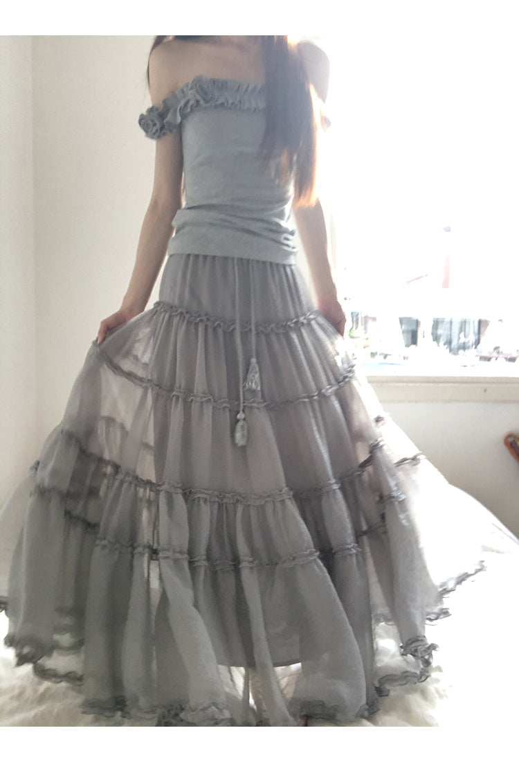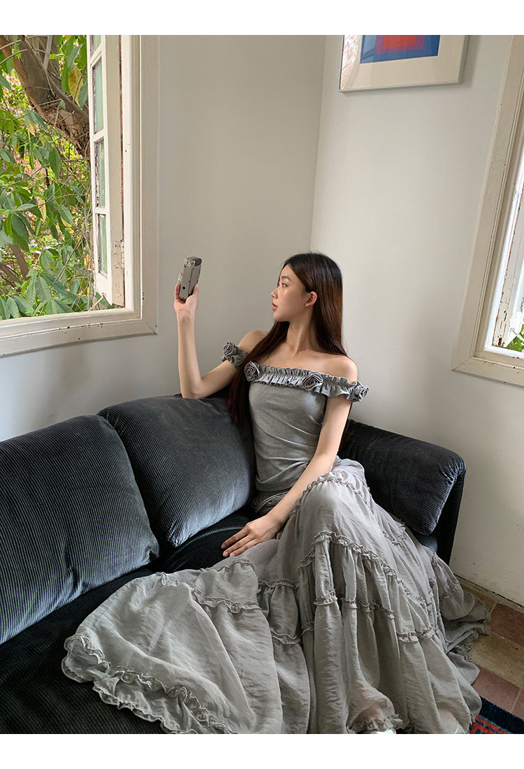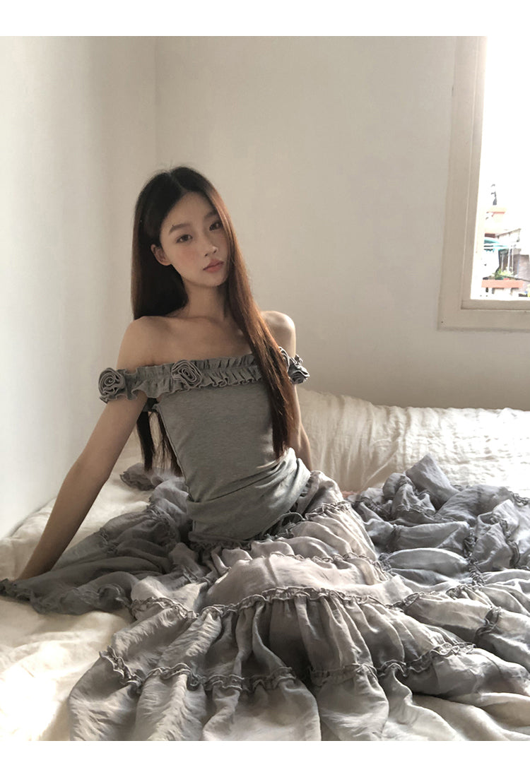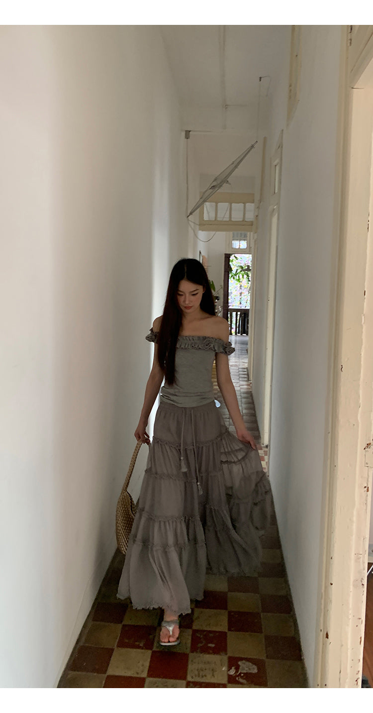 gray off-shoulder tee