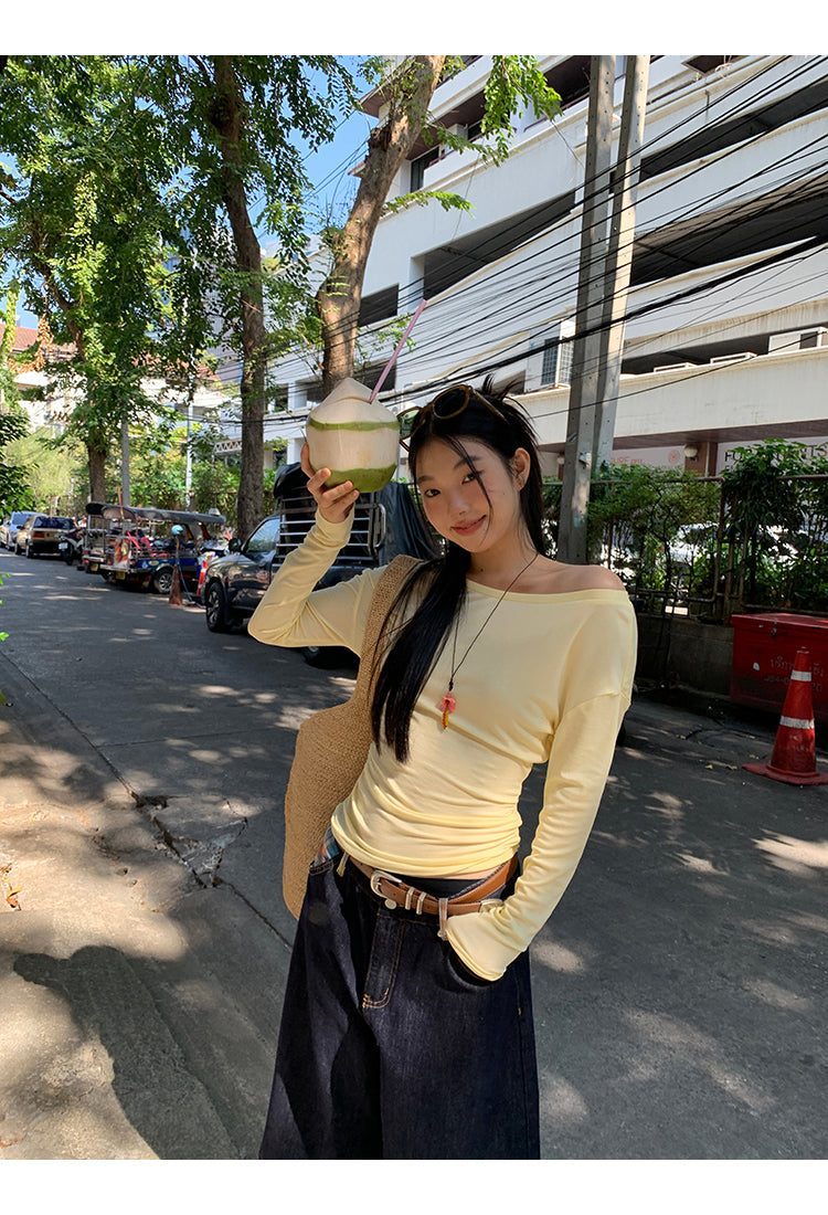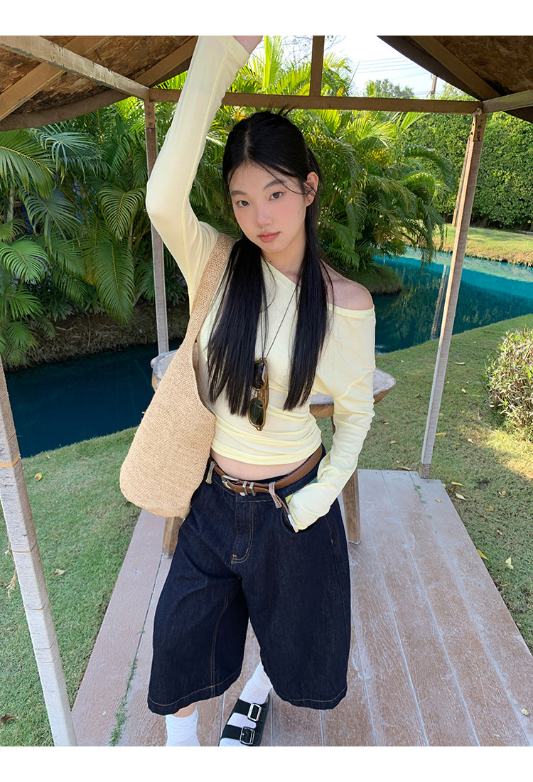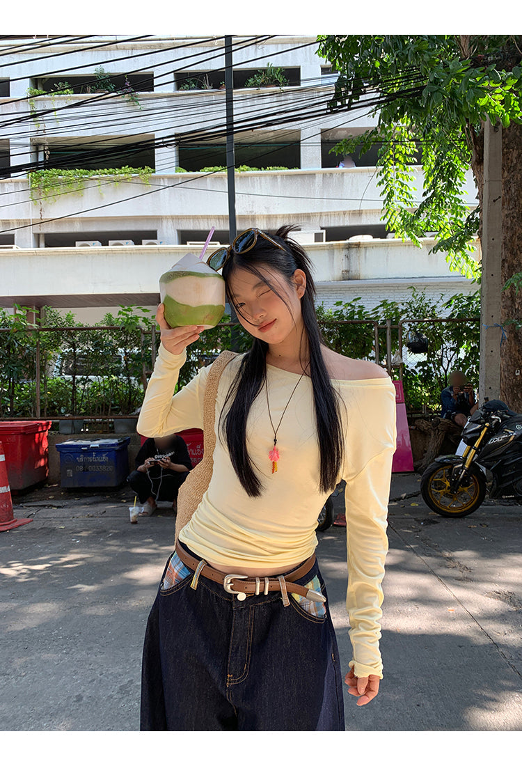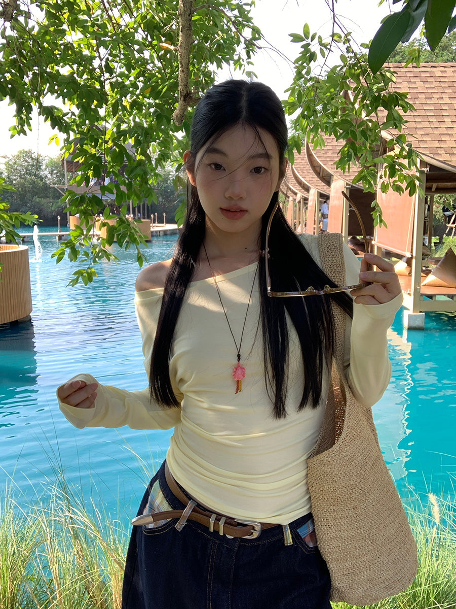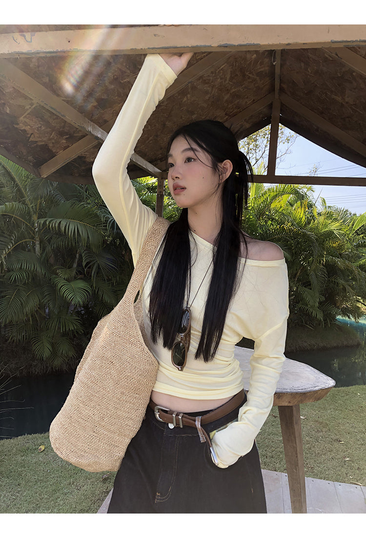 yellow oblique shoulder top