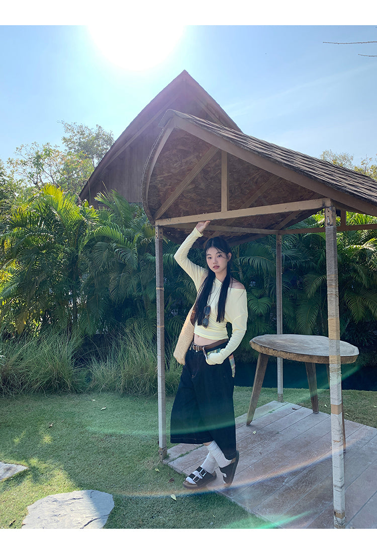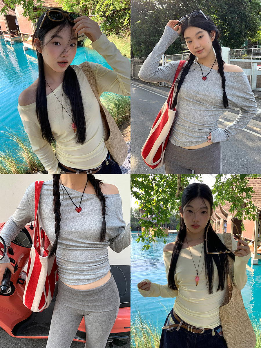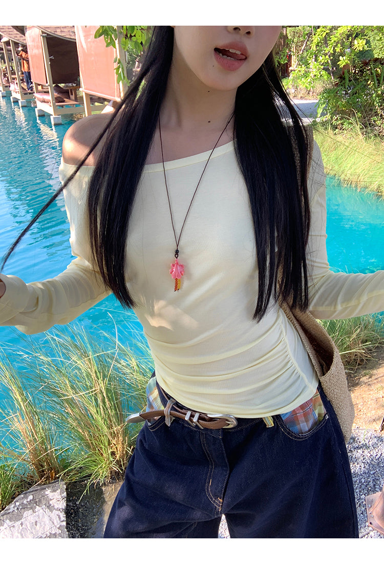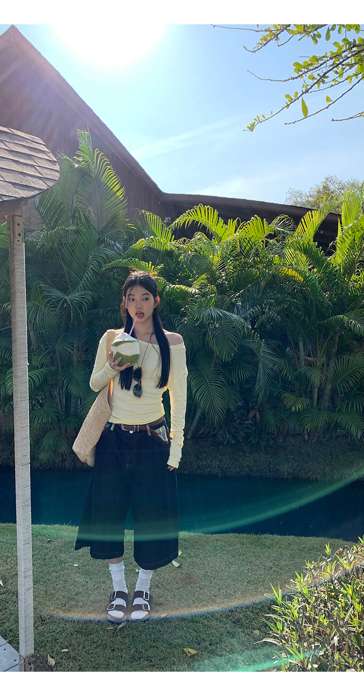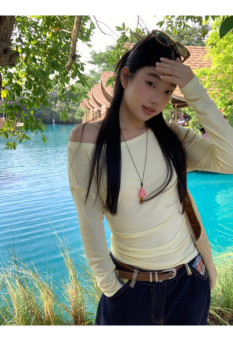 yellow oblique shoulder top