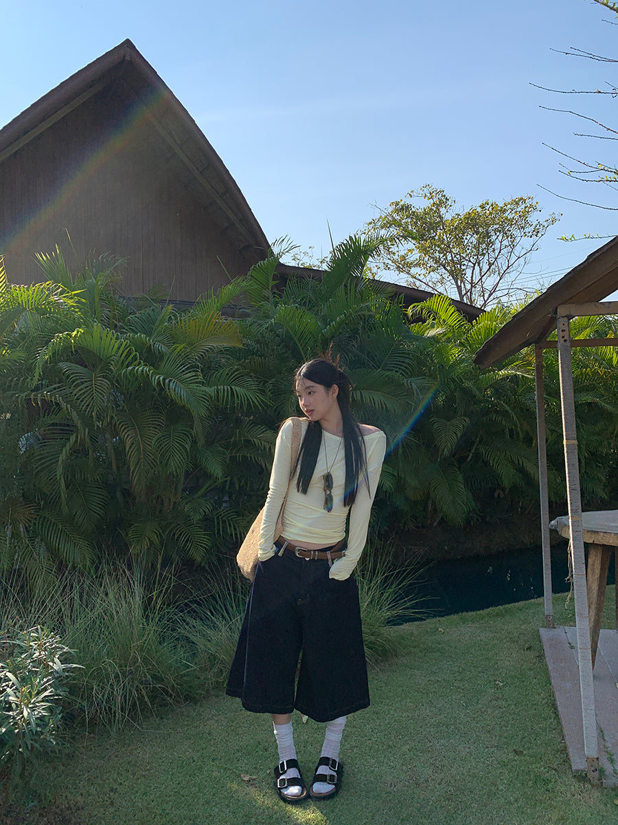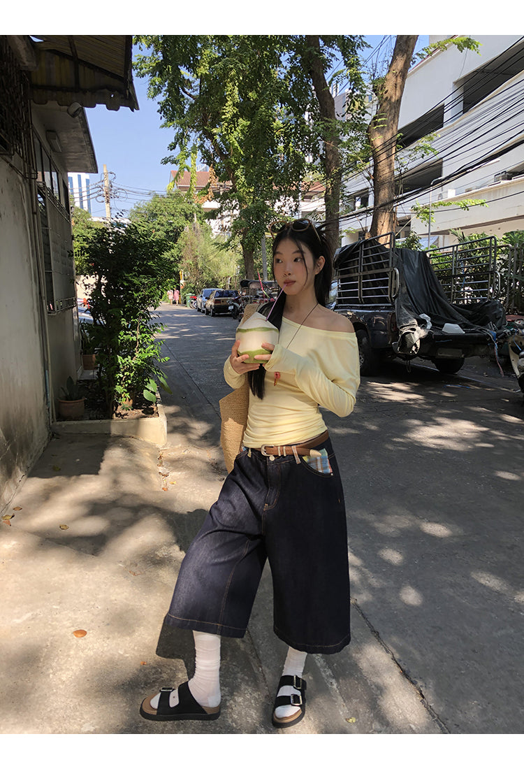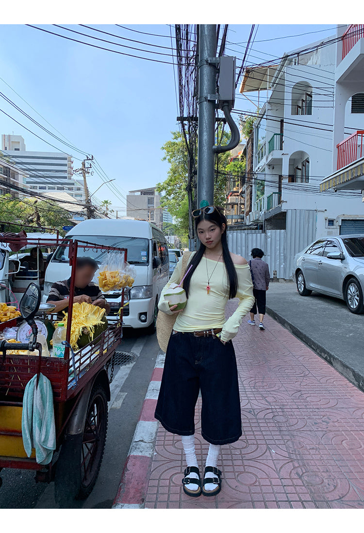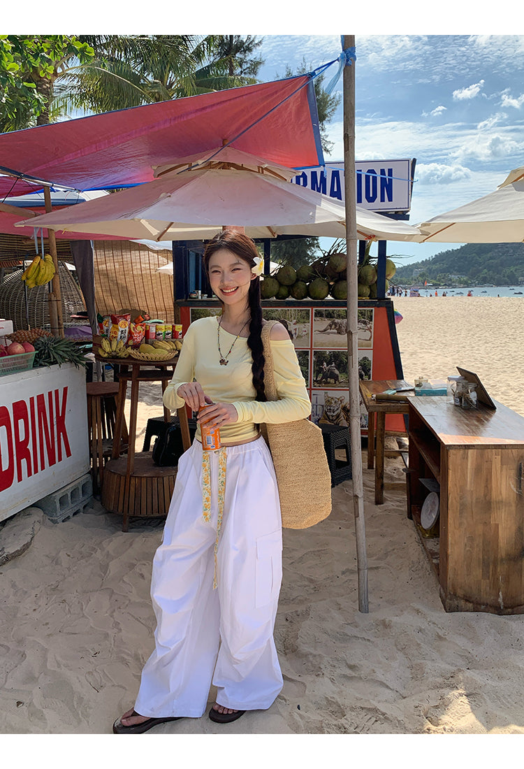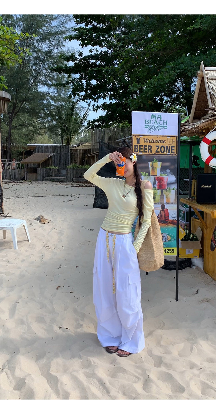yellow oblique shoulder top