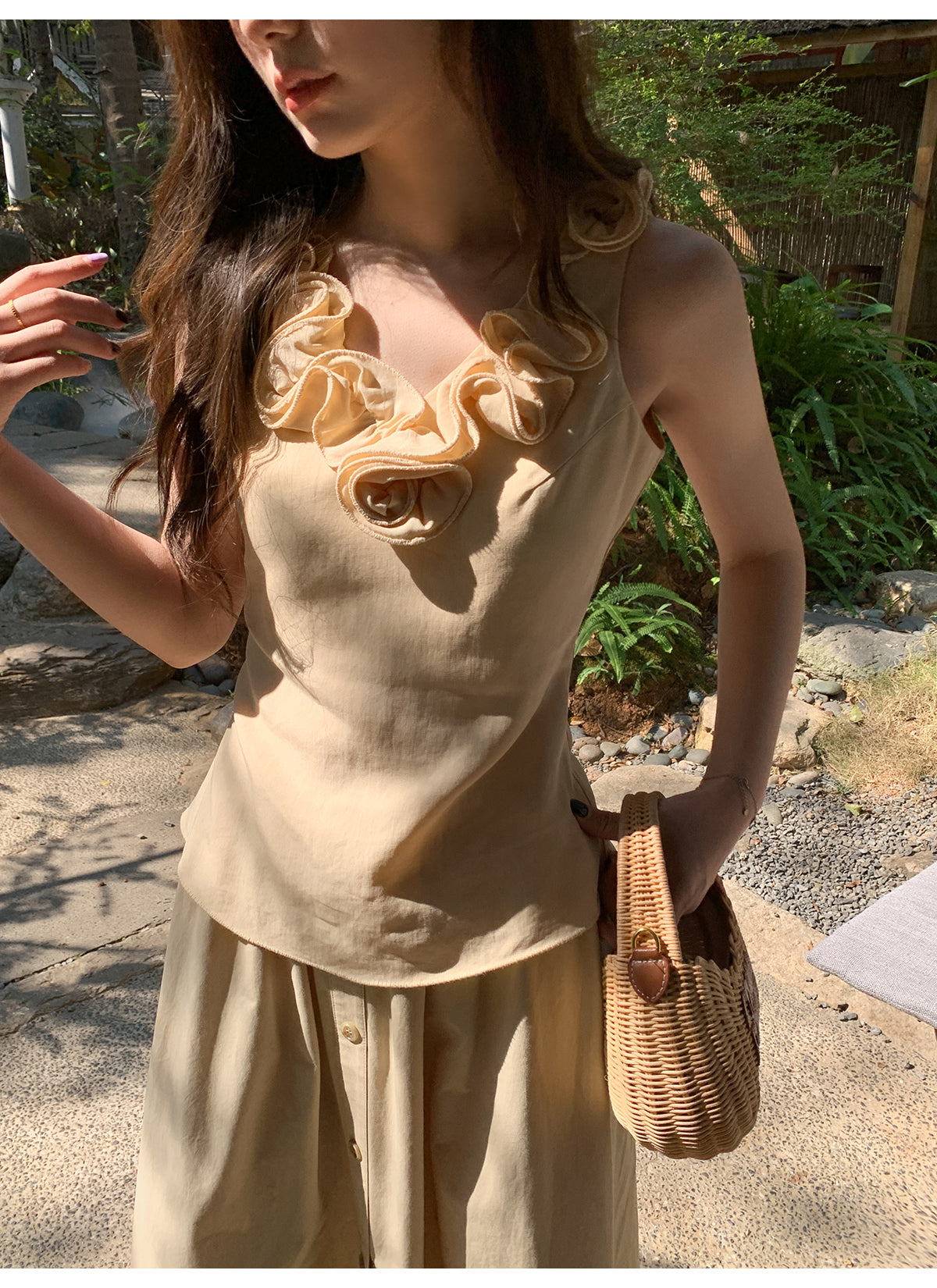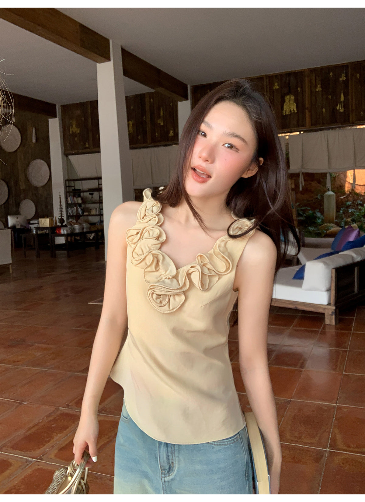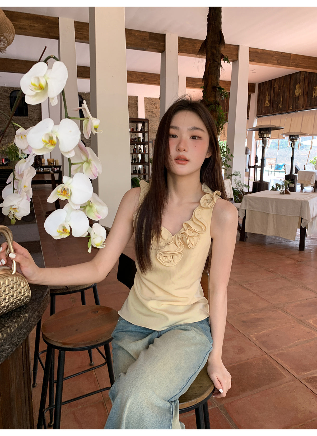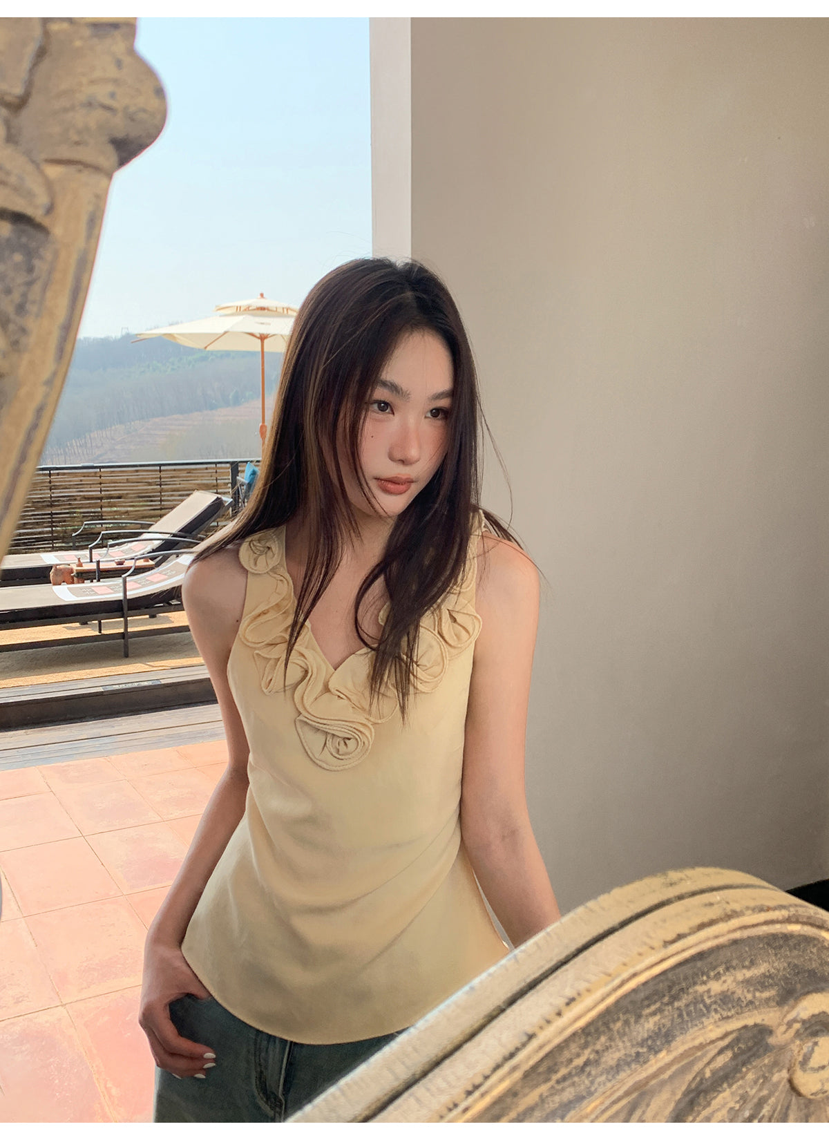 Floral V-neck knit vest