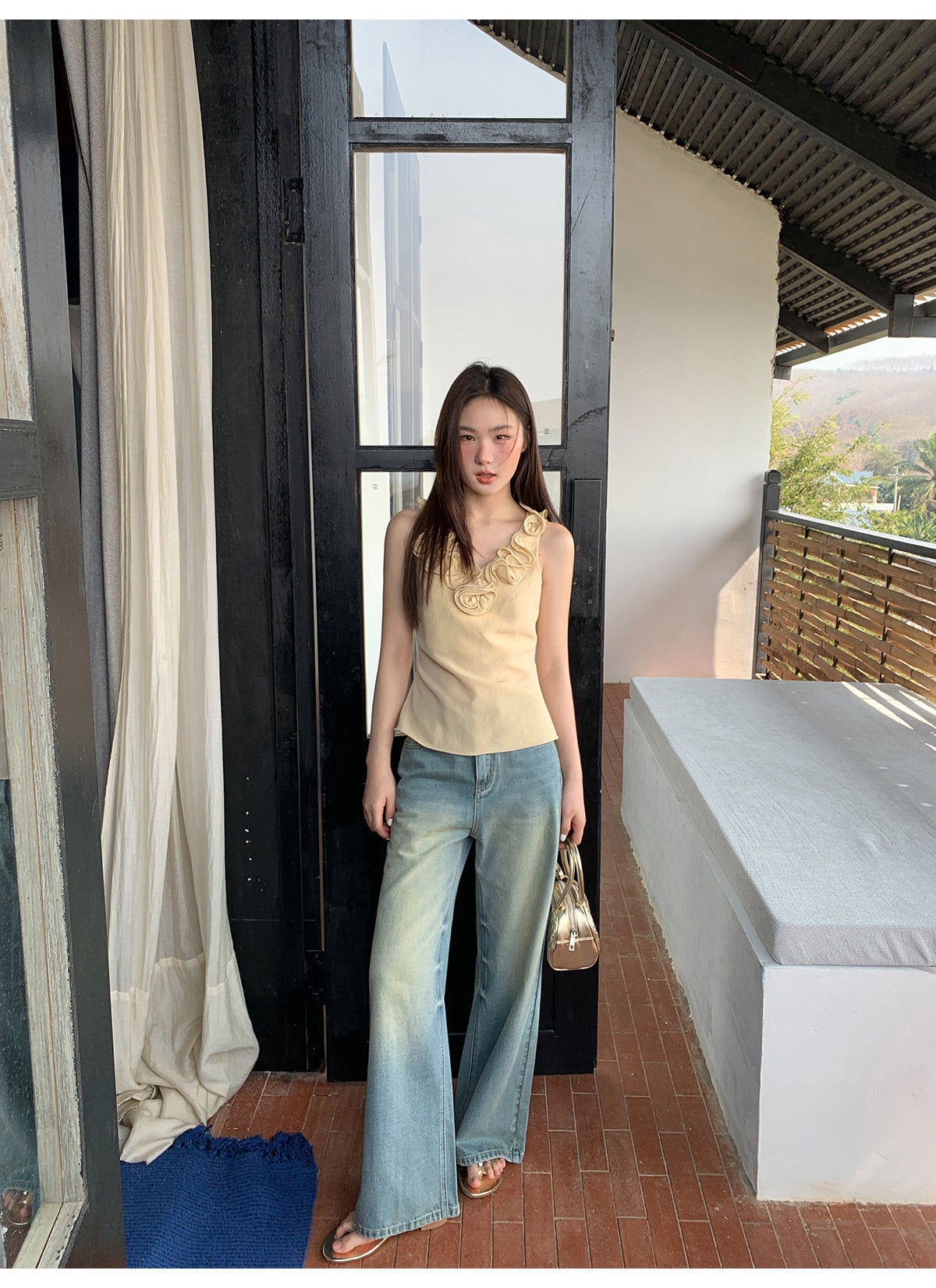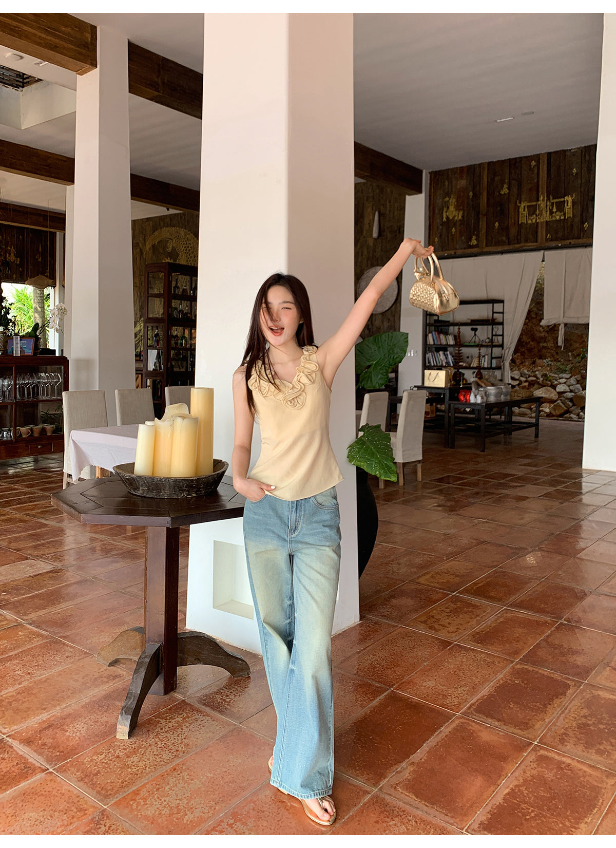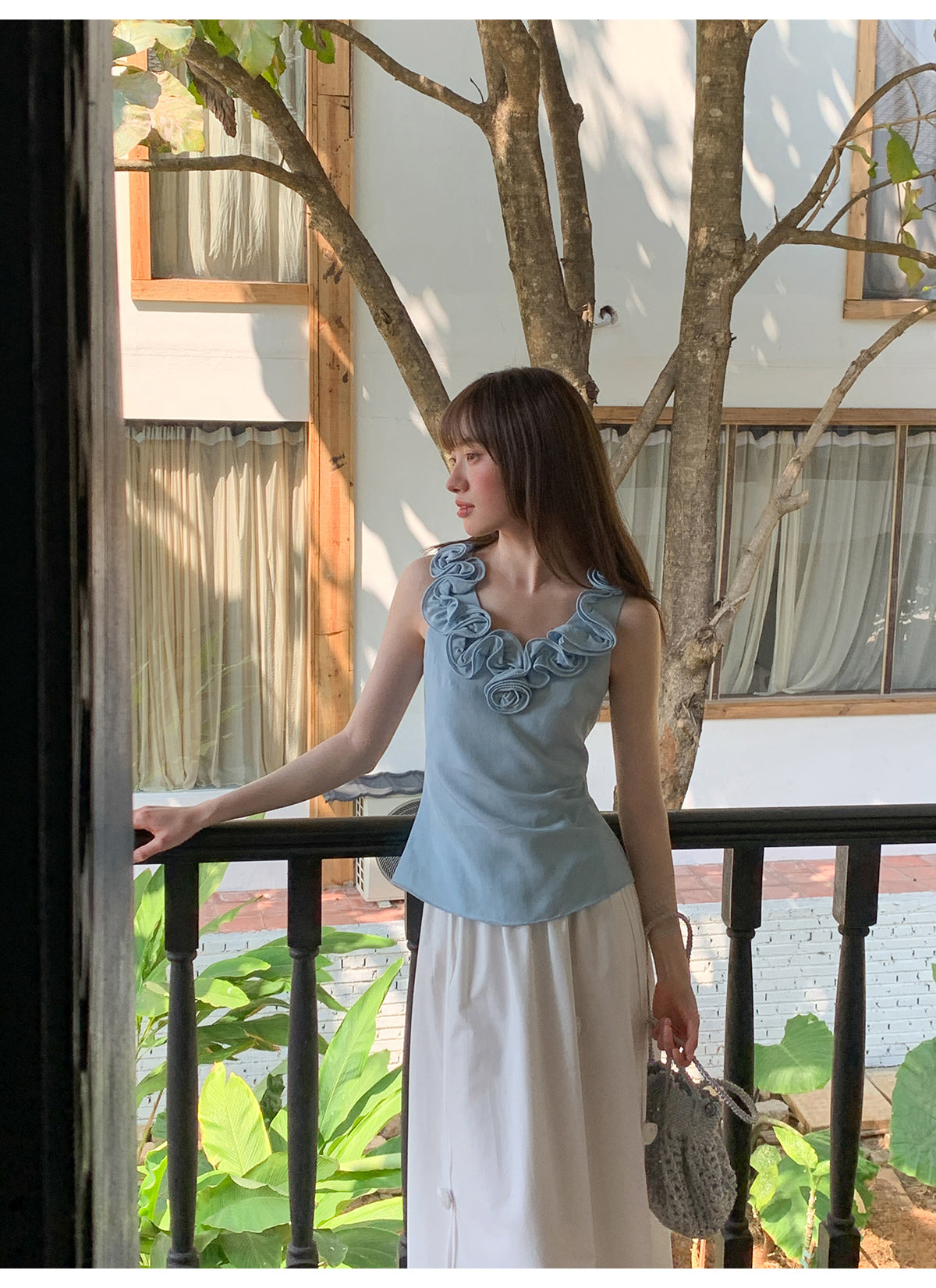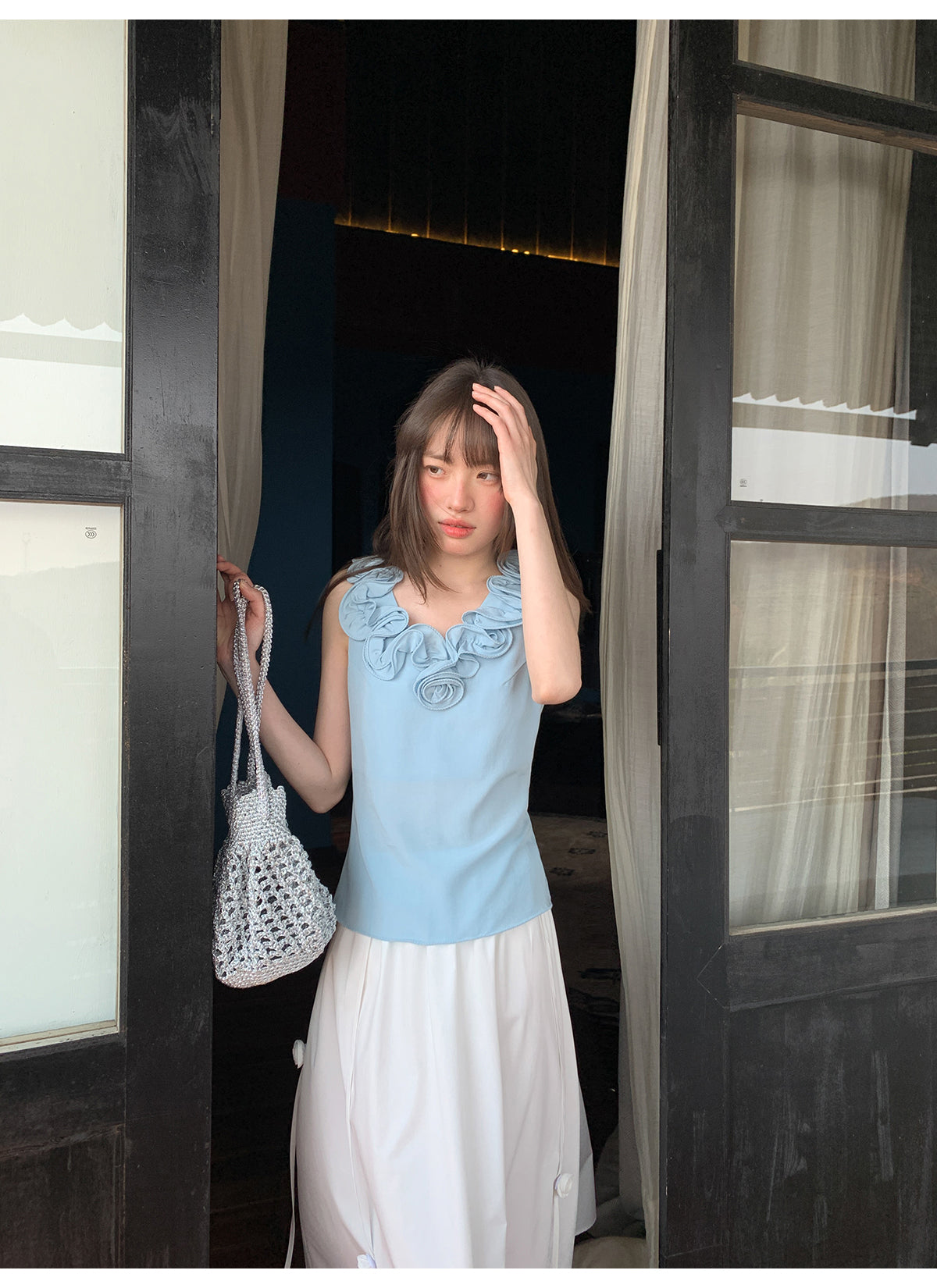 Floral V-neck knit vest