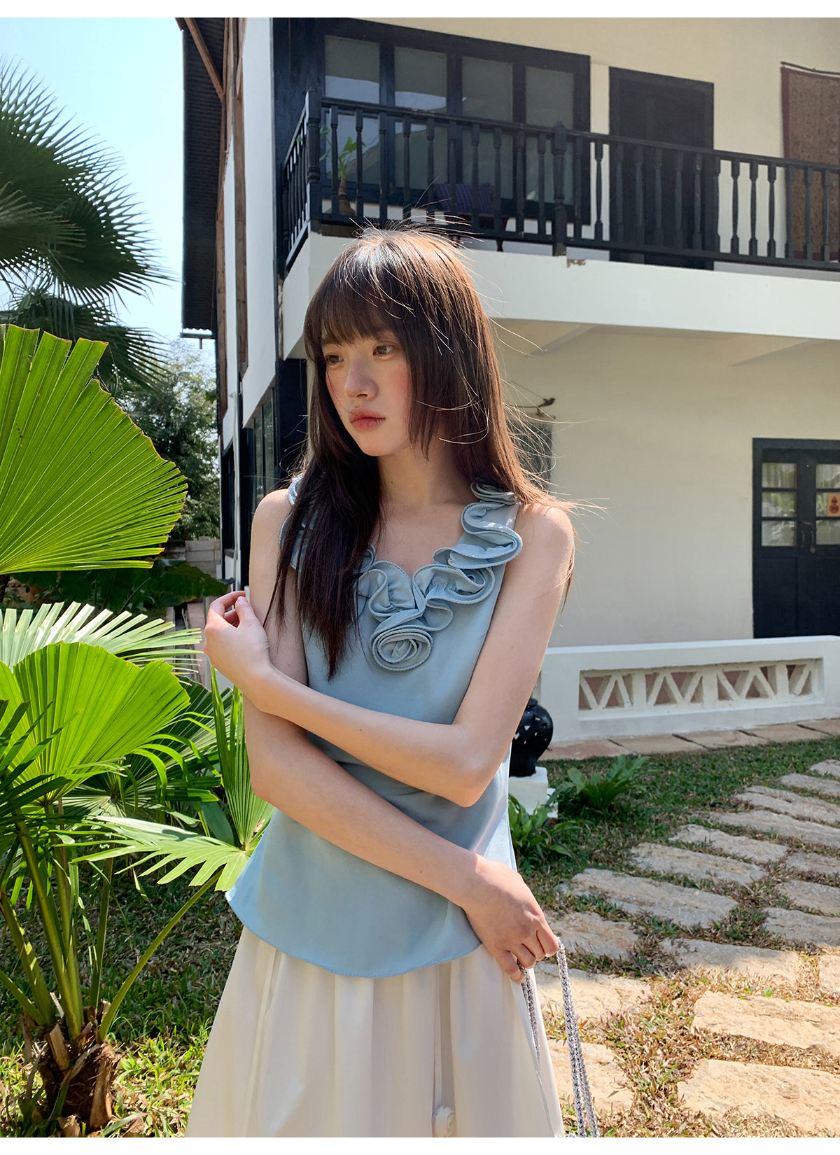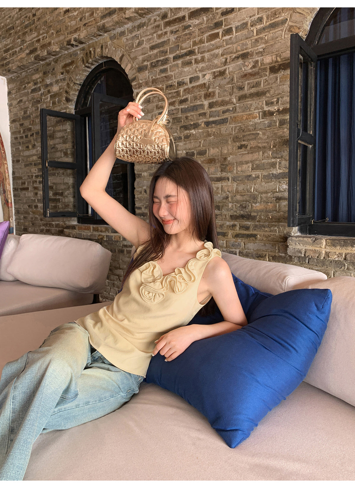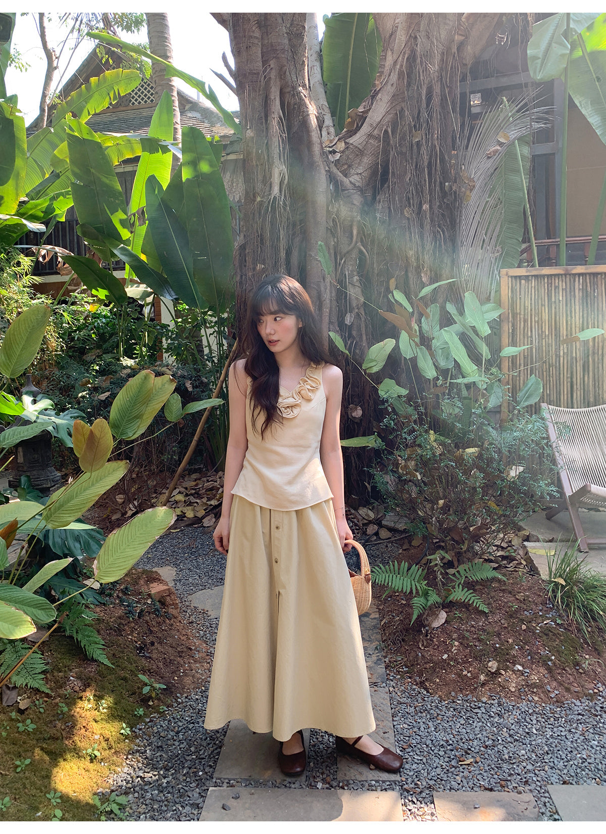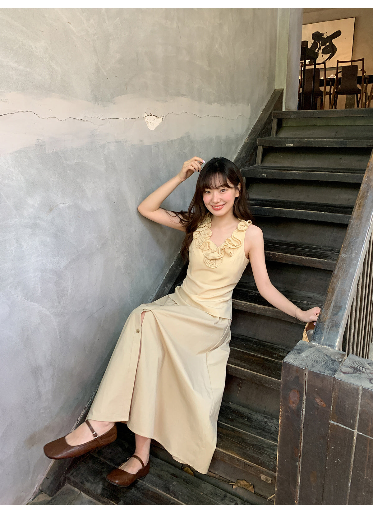 Floral V-neck knit vest