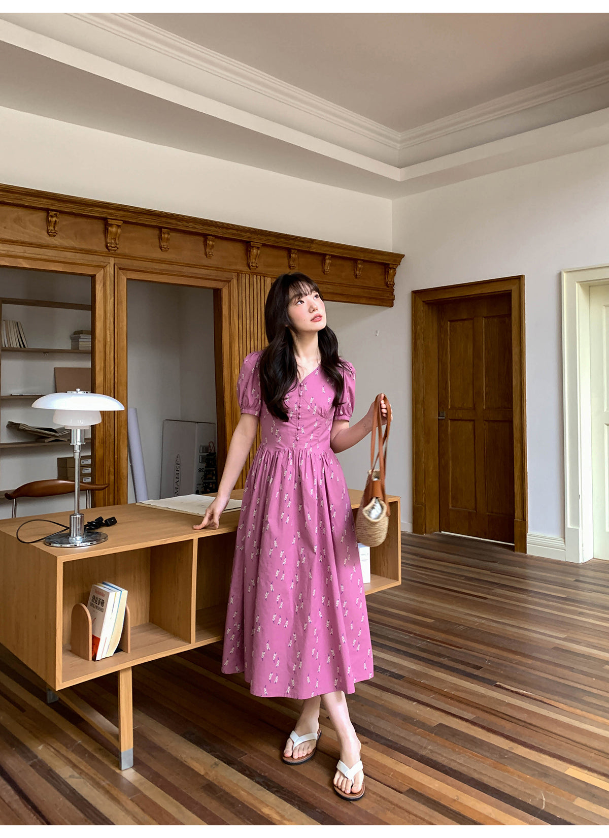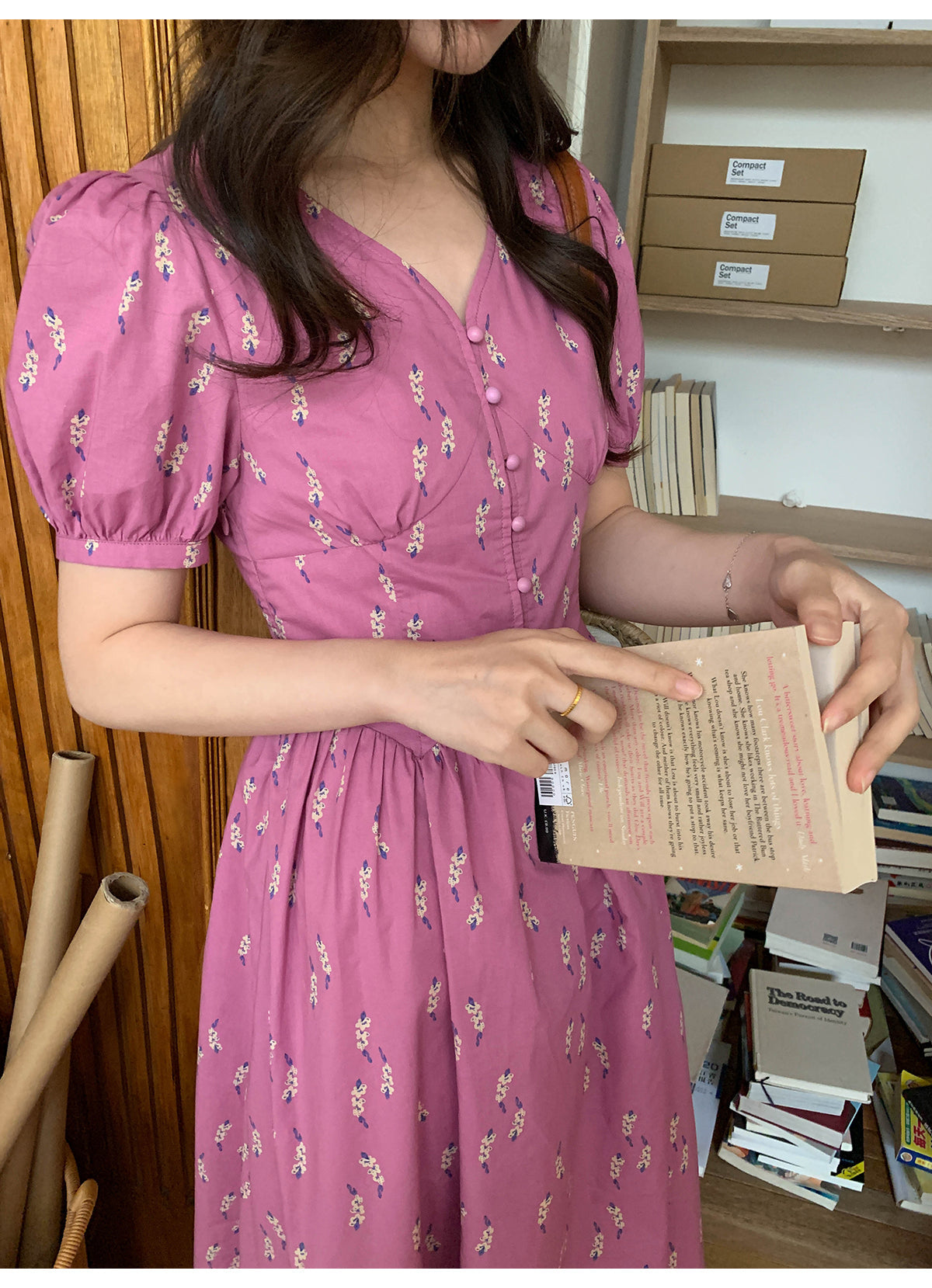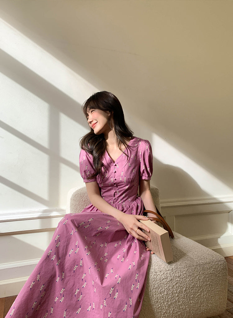 Puff V-neck dress