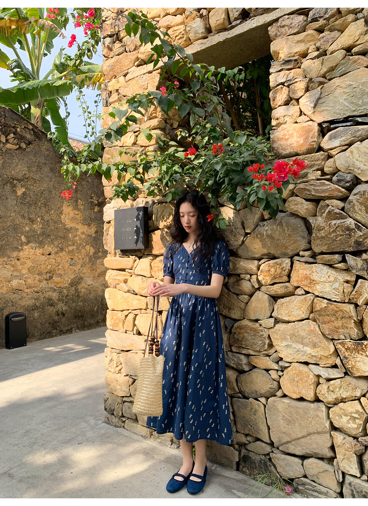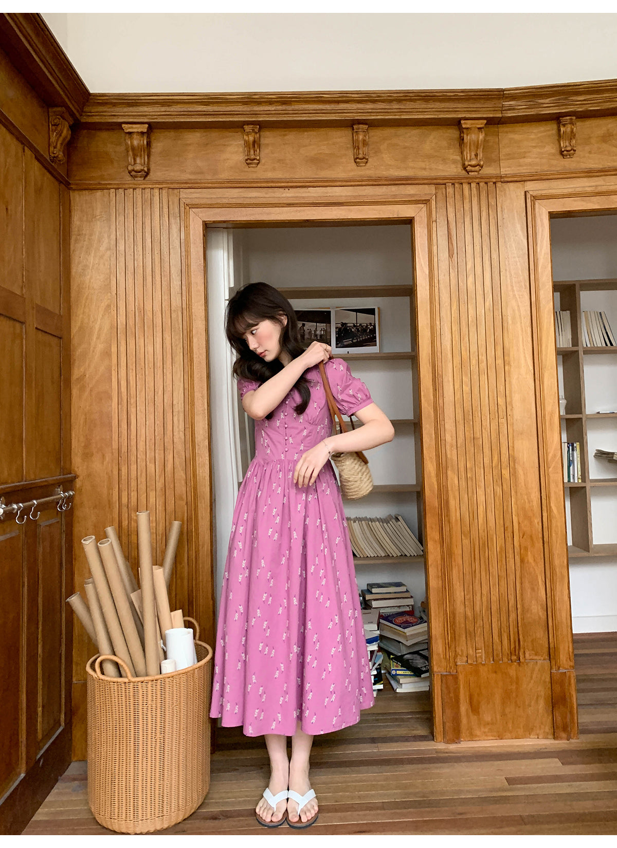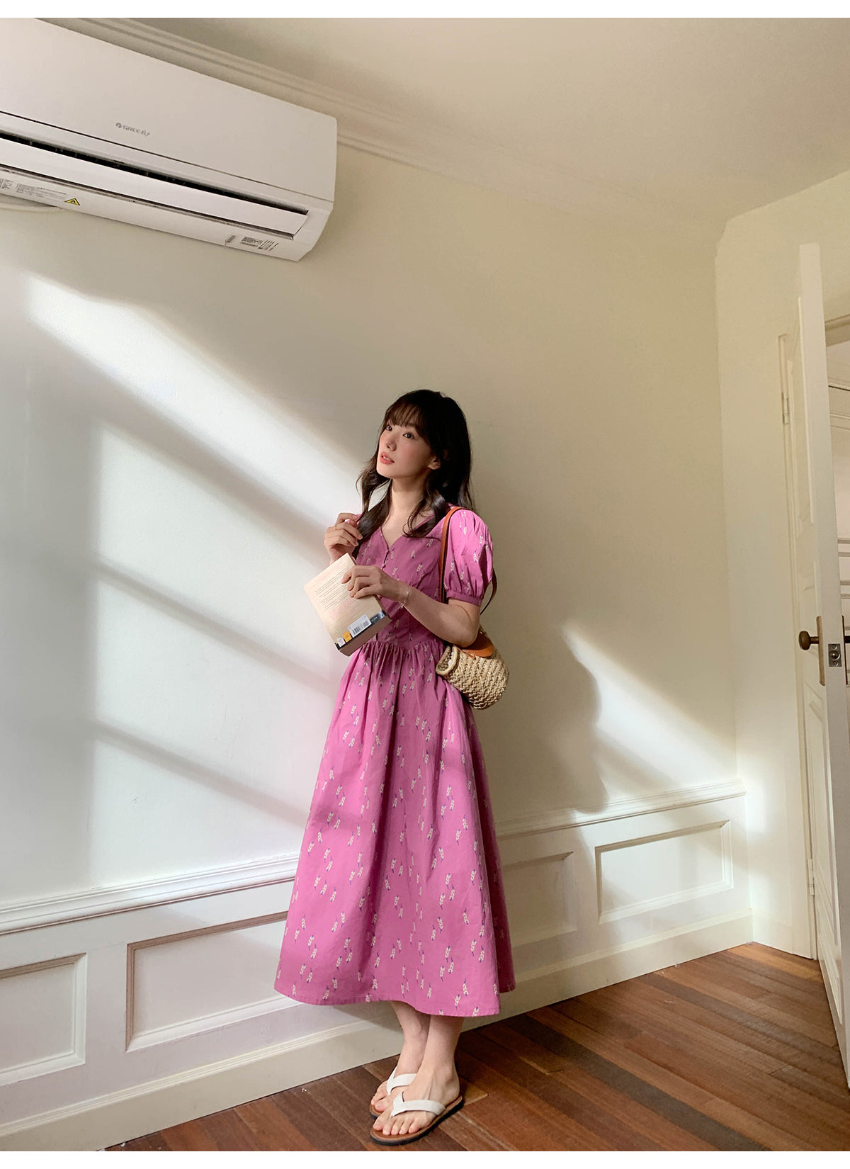 Puff V-neck dress