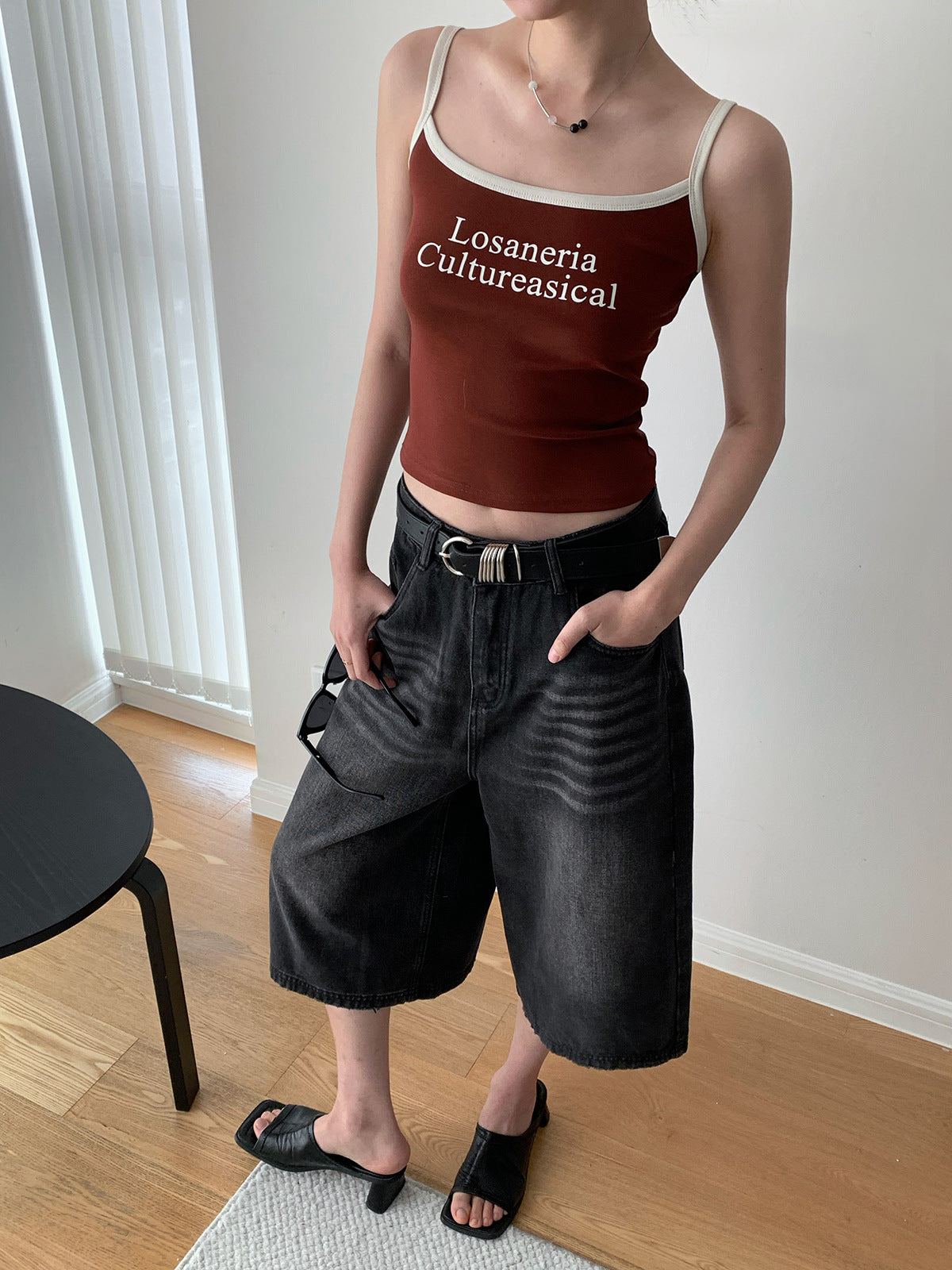 Letter Print Sling Tank Top