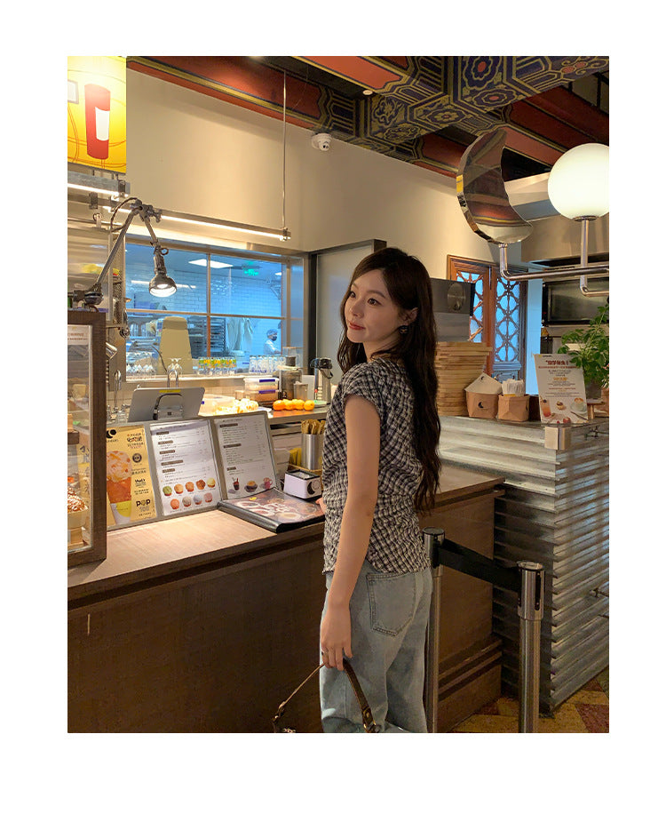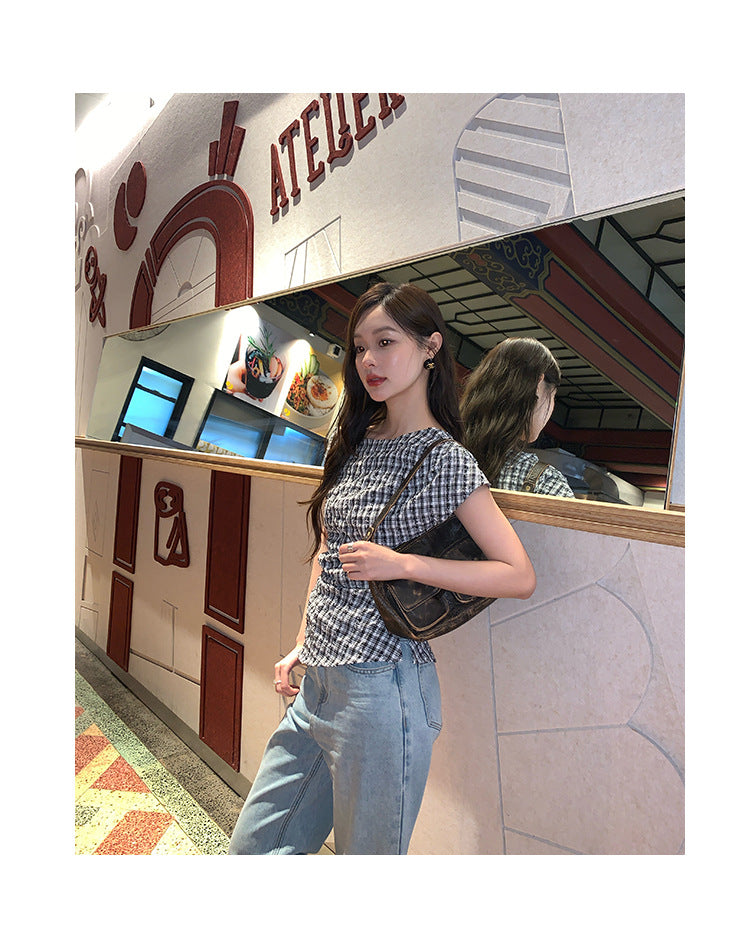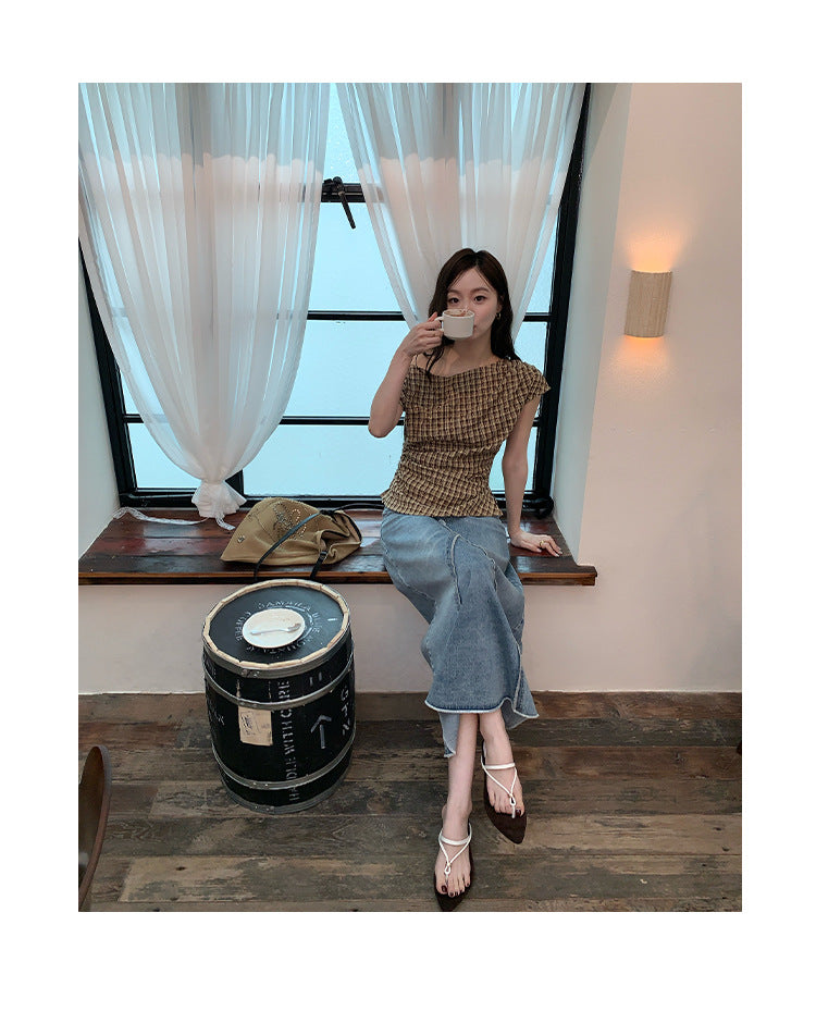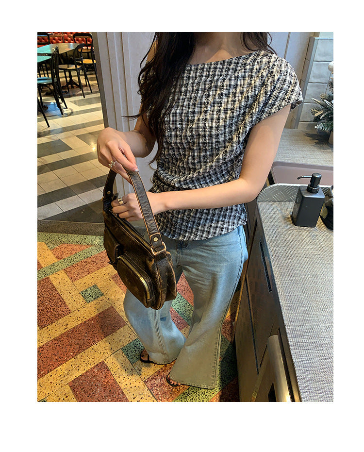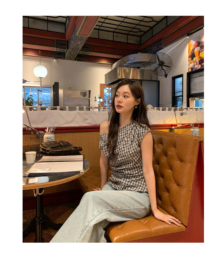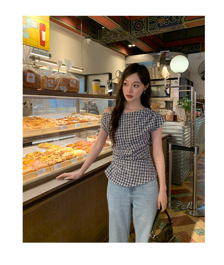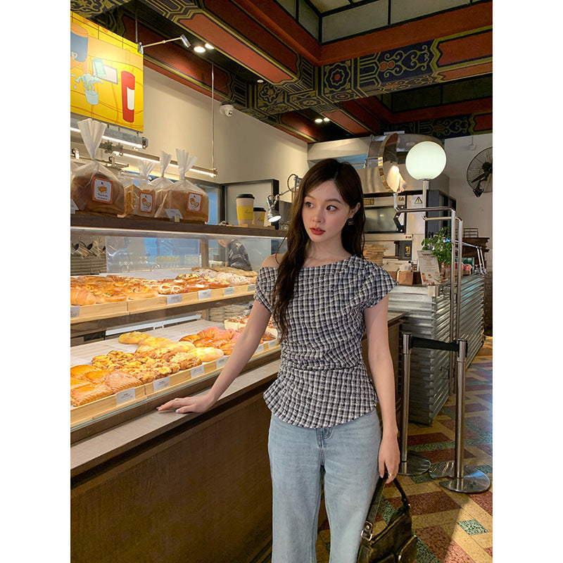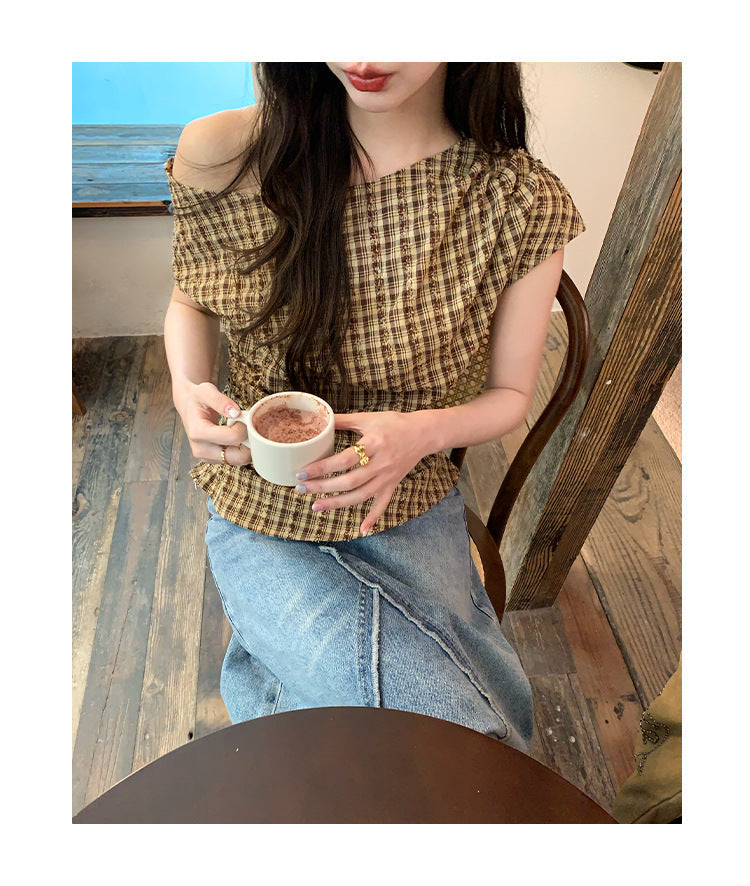 plaid shoulder top
