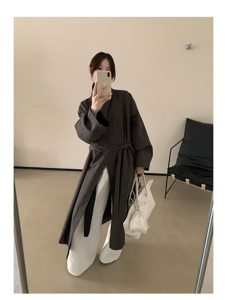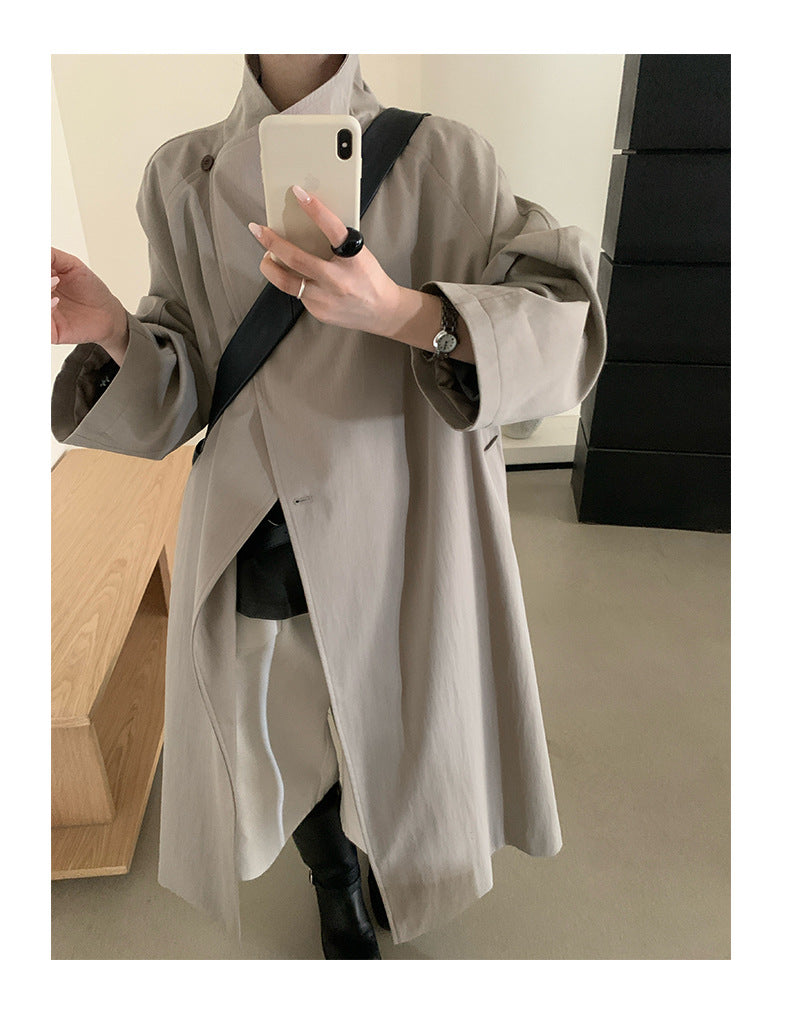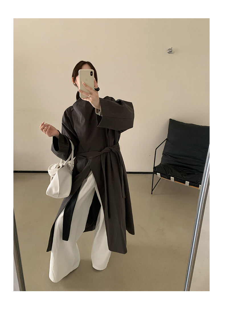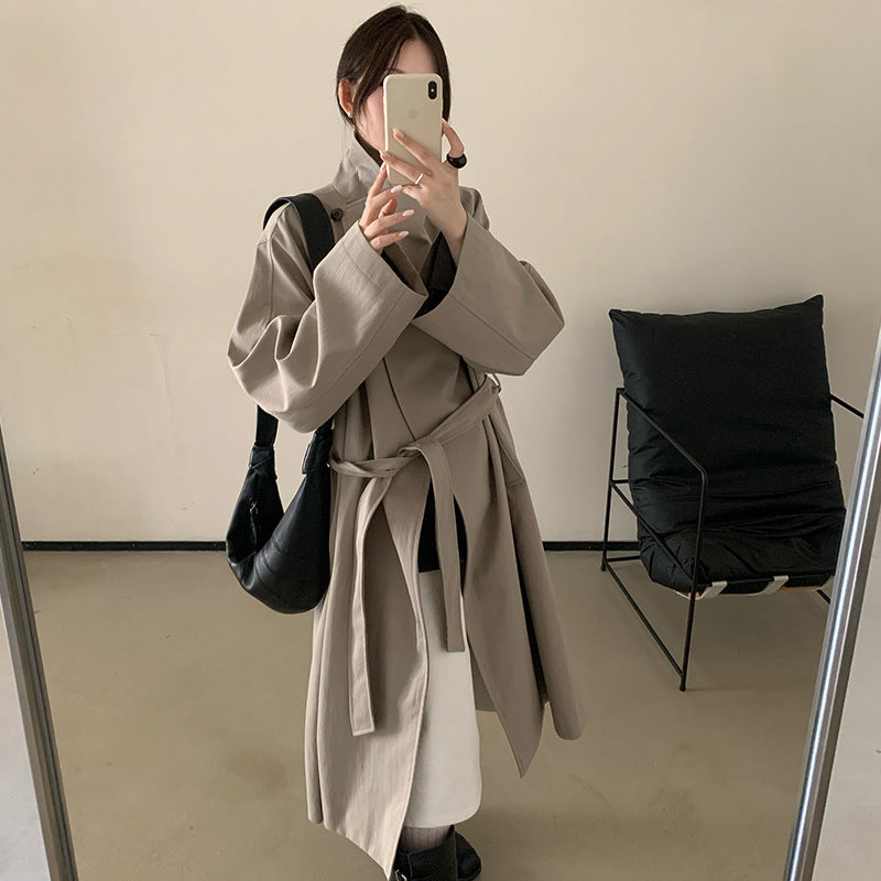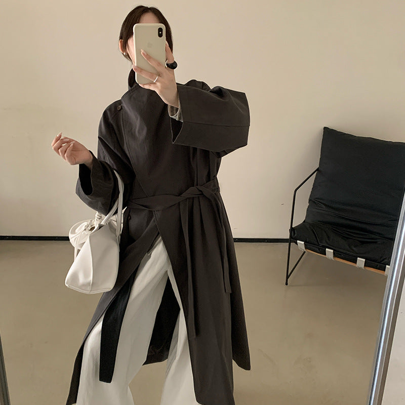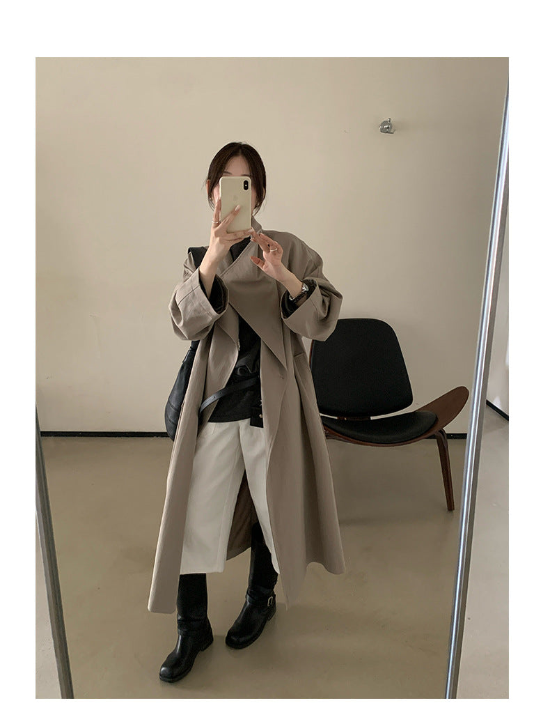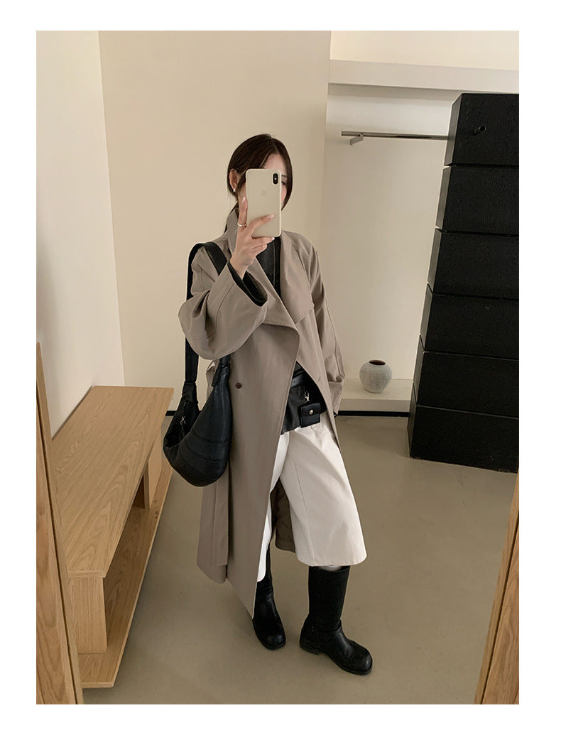 —Minimalist over-the-knee trench coat for women, mid-length French top, loose new coat, British women