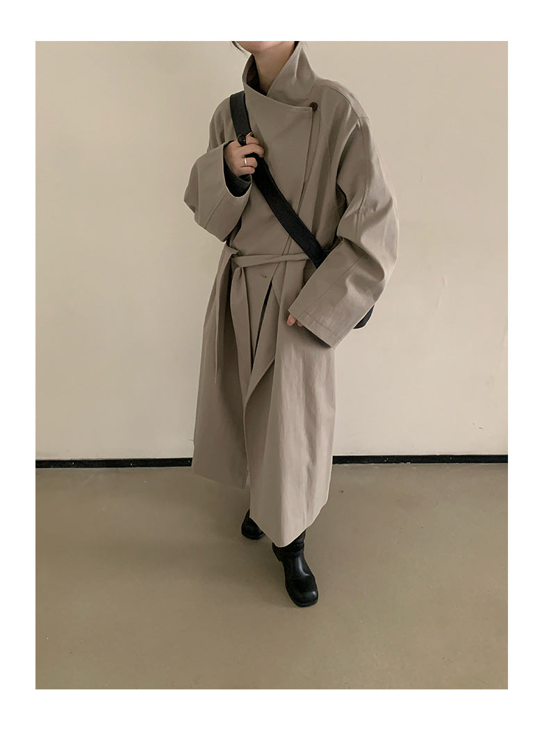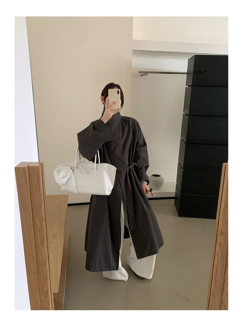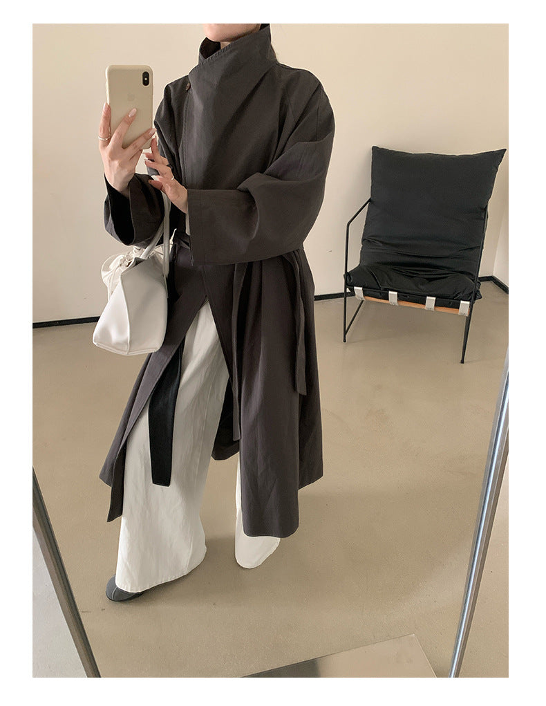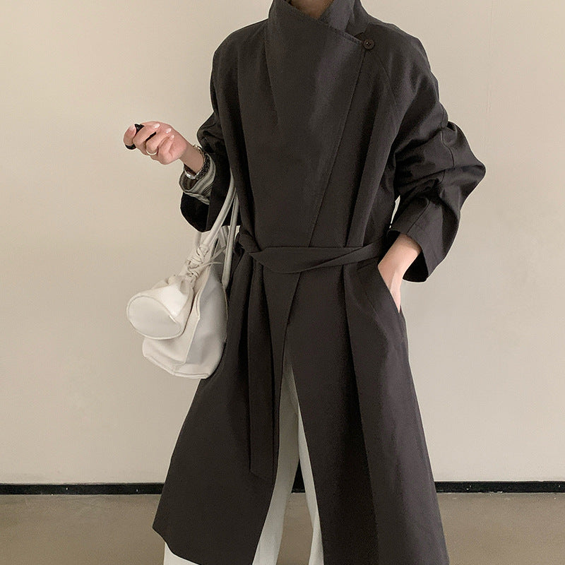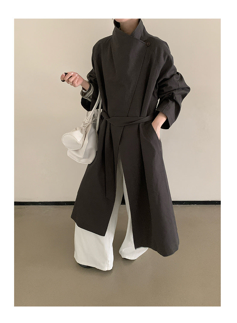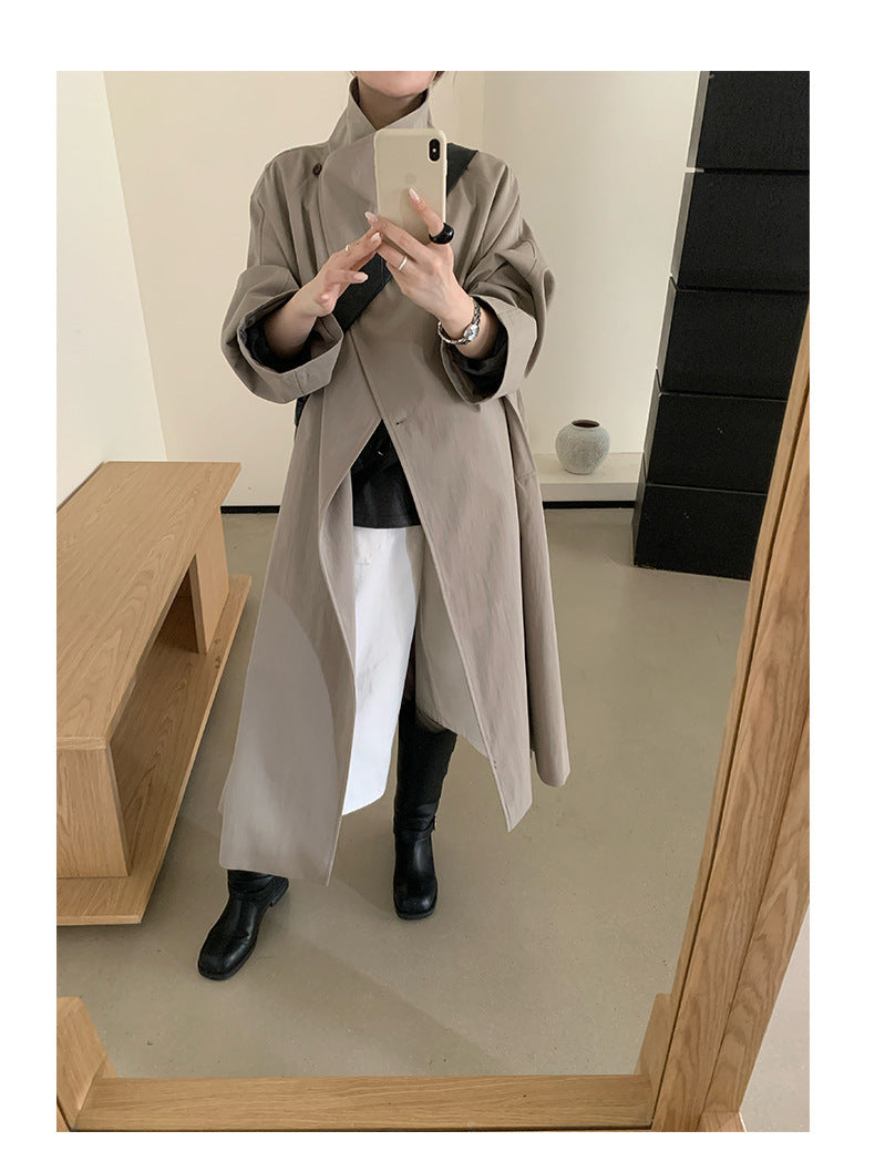 —Minimalist over-the-knee trench coat for women, mid-length French top, loose new coat, British women