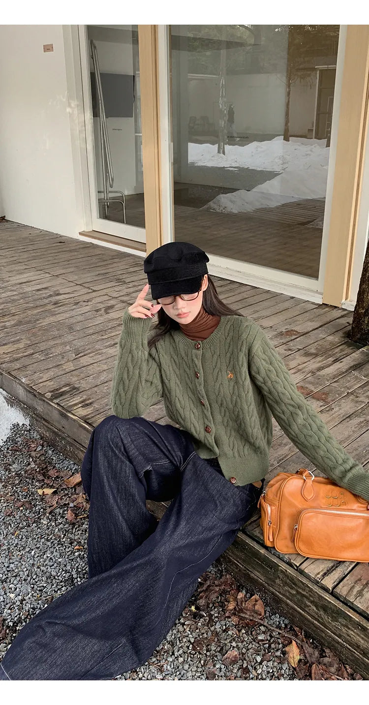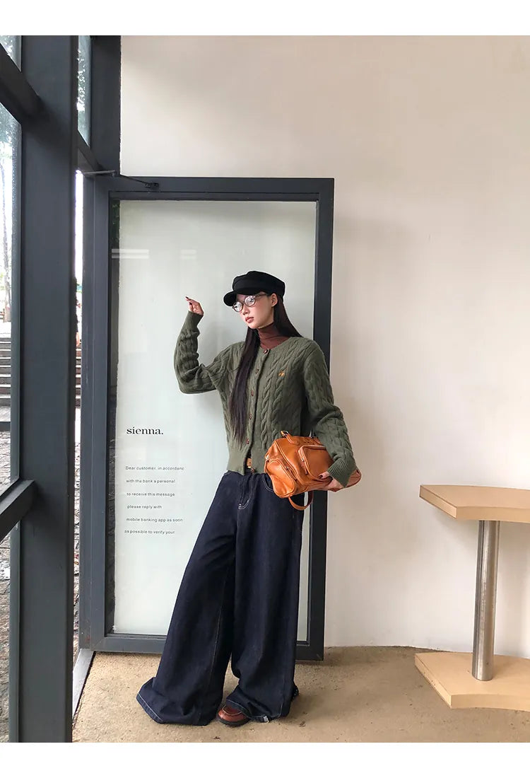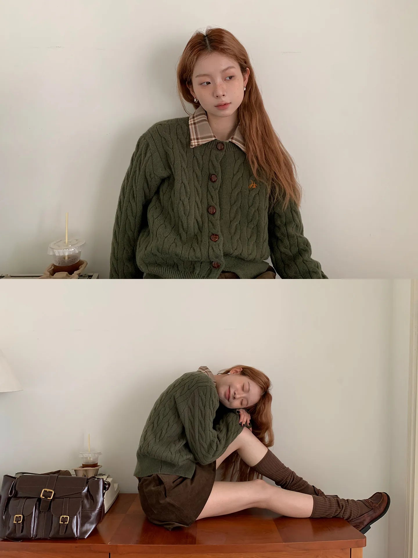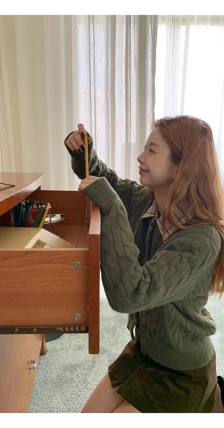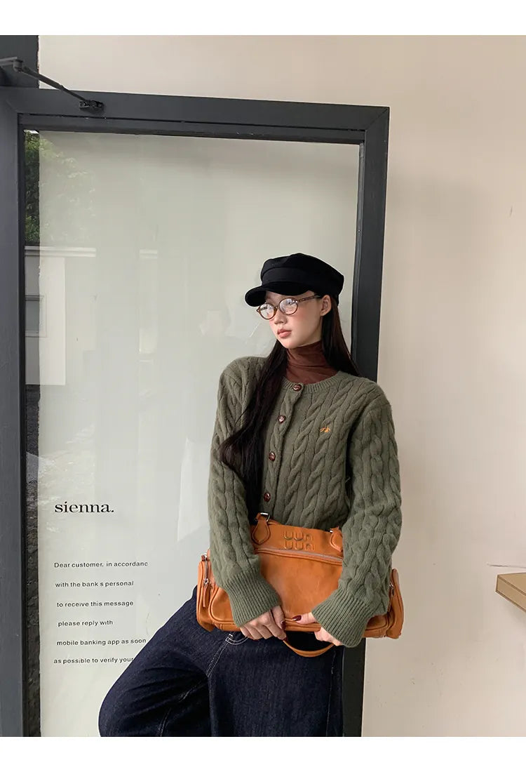 green knit cardigan