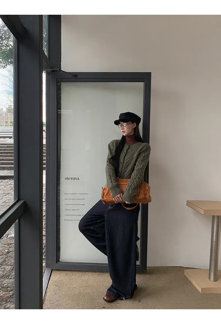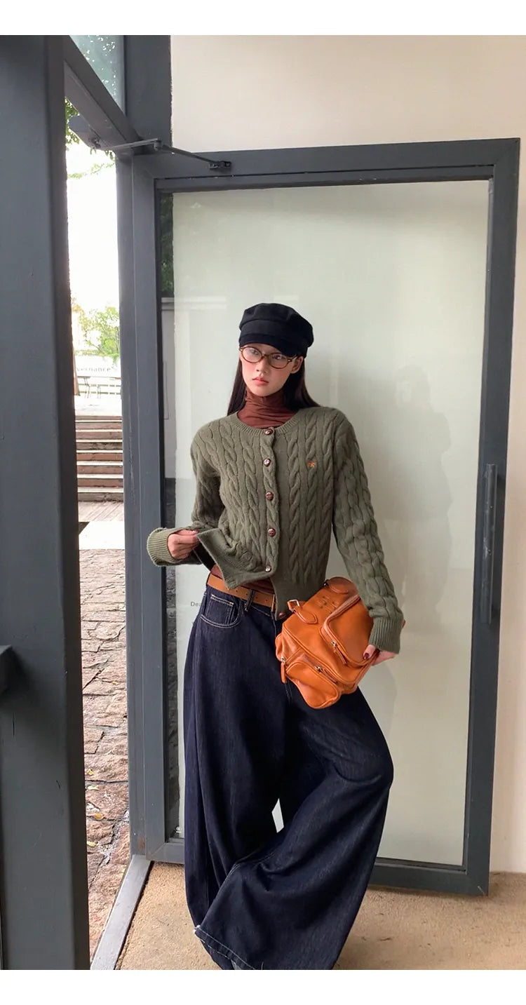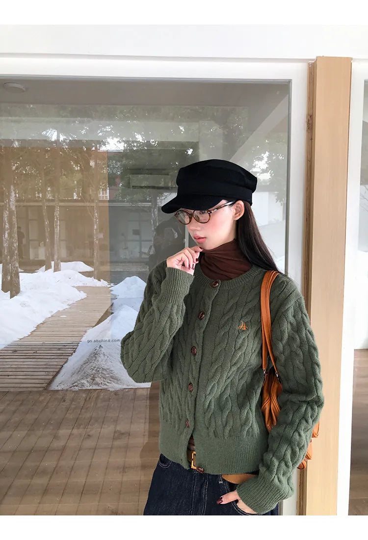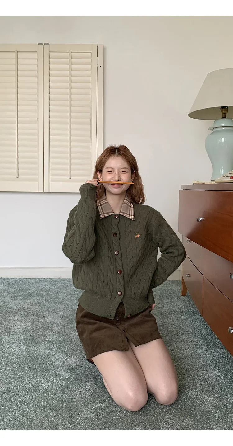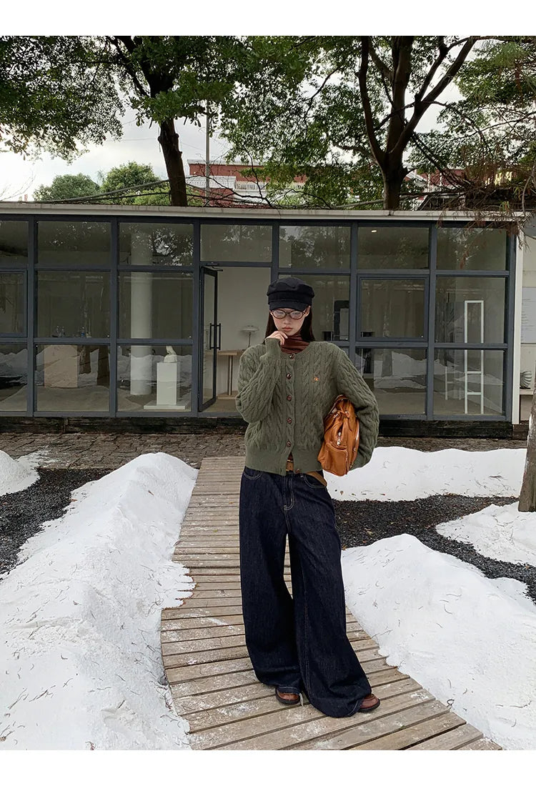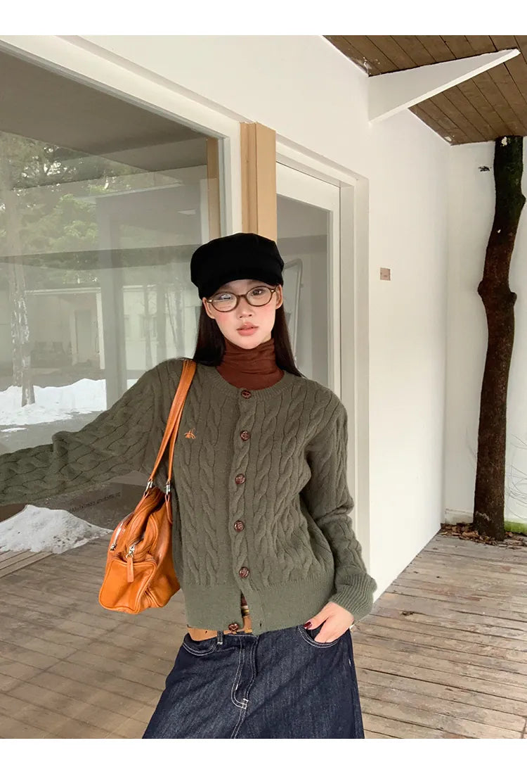 green knit cardigan