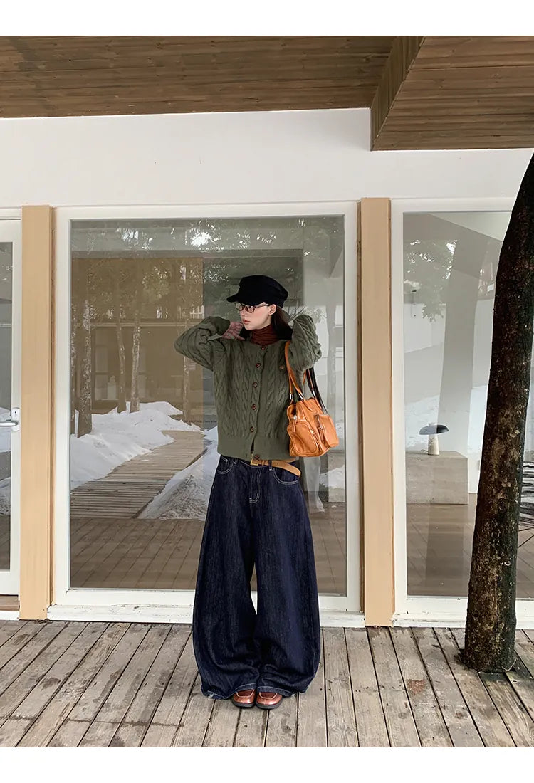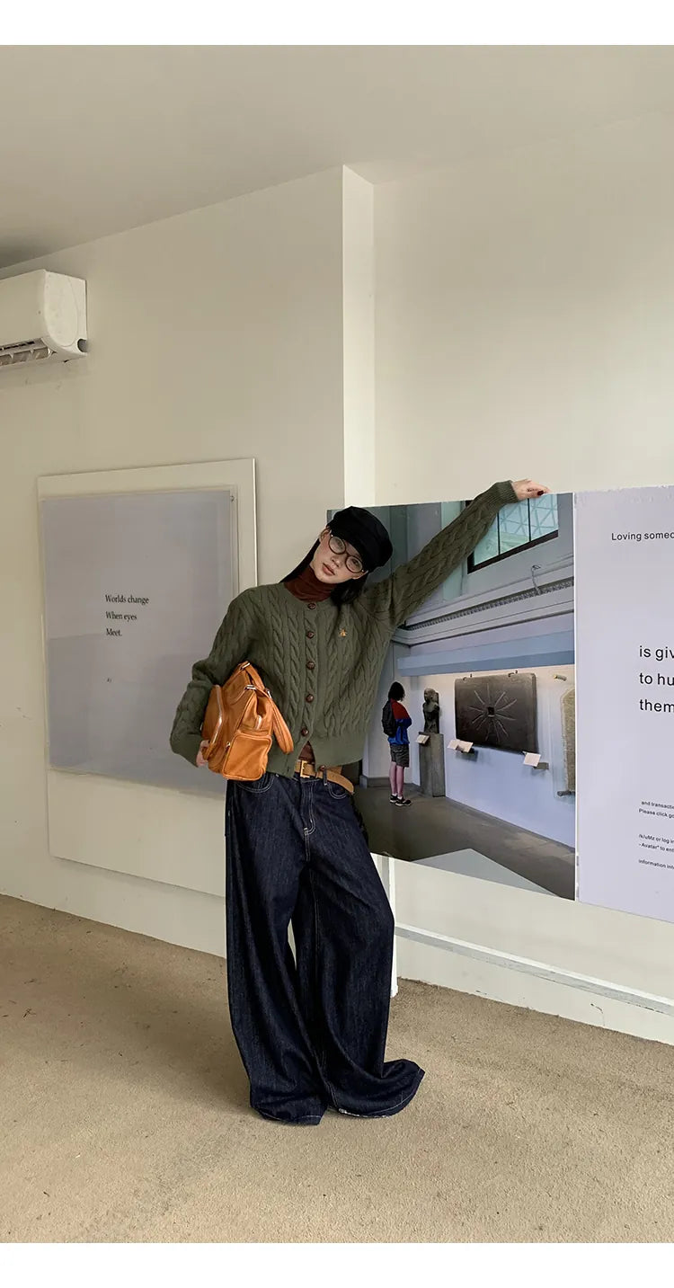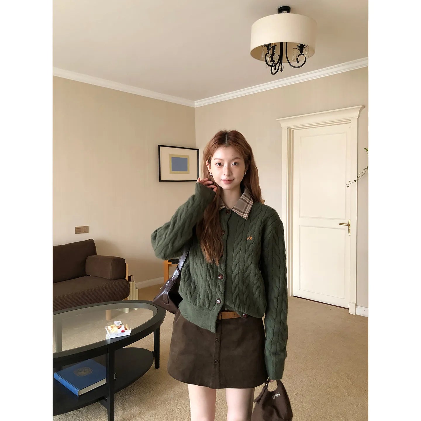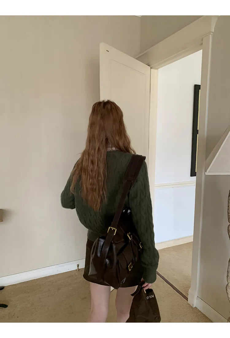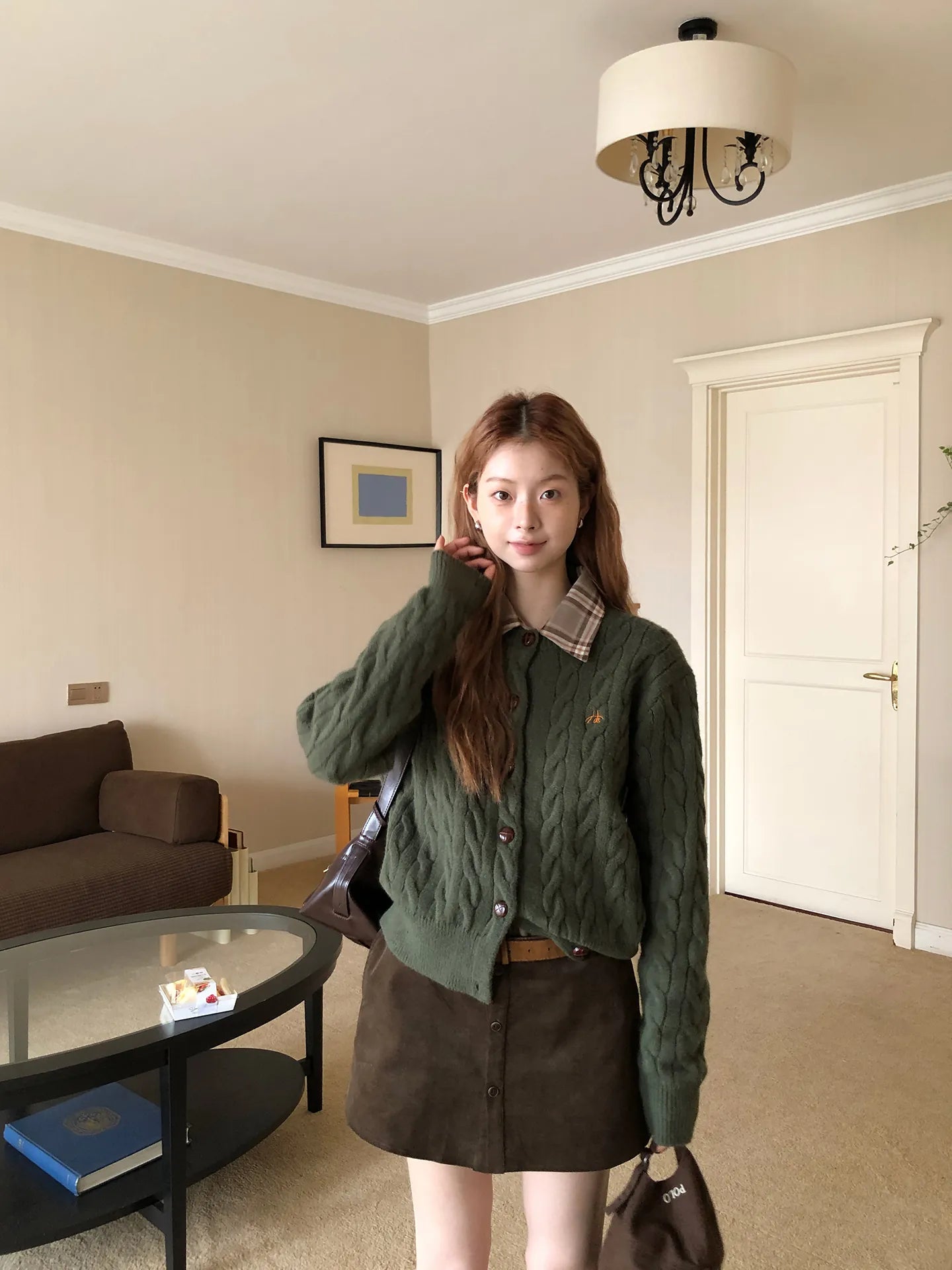 green knit cardigan