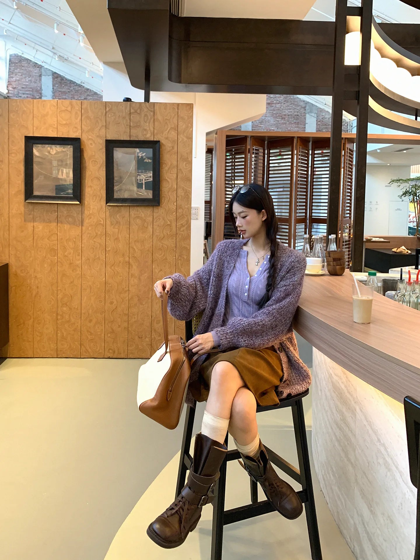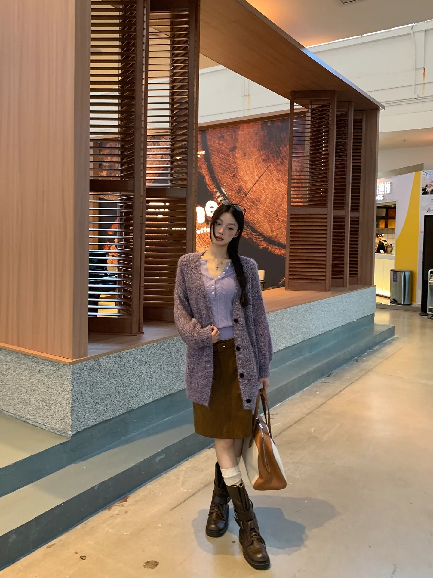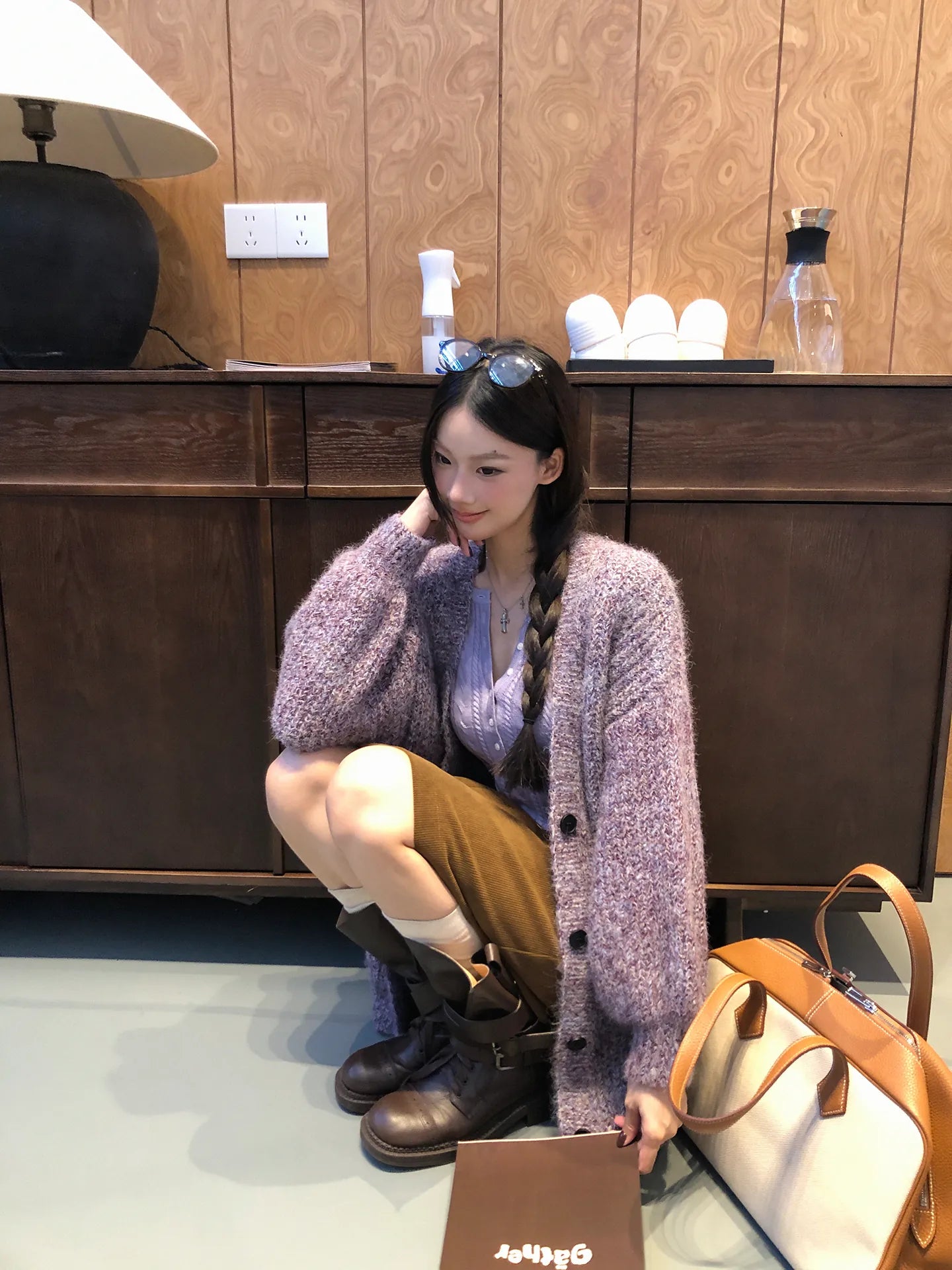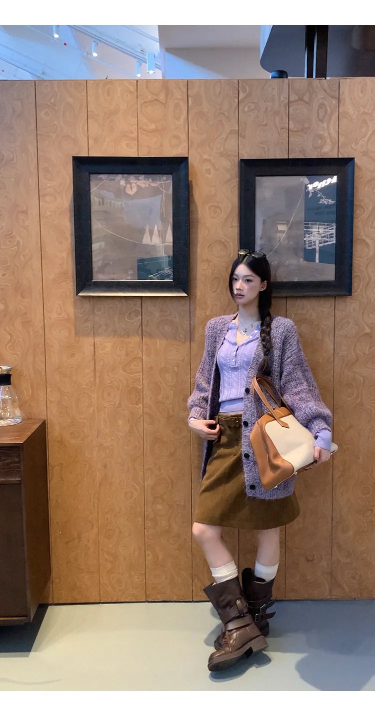 purple knit cardigan