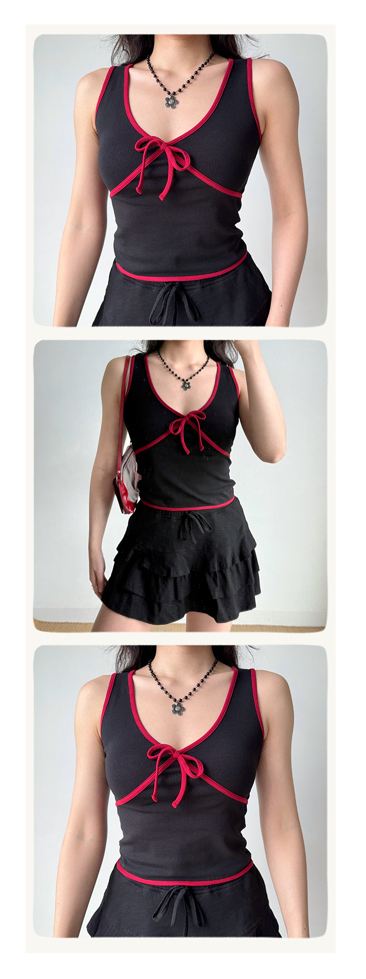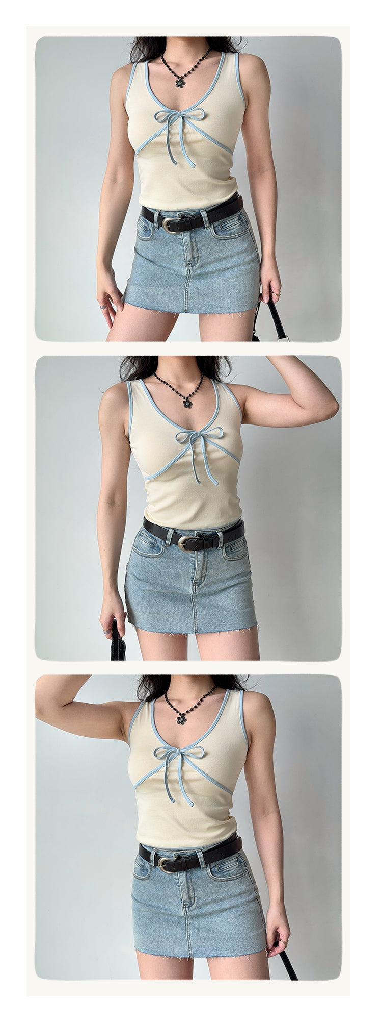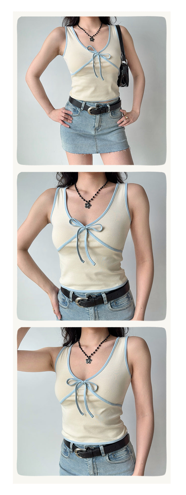 Contrast color bow design is simple and has highlights. The cuff size is just right, it covers the secondary breasts and is not easy to expose. V-neck neckline makes it look slim and elegant. Cotton fabric is skin-friendly and comfortable and elastic. Two colors to choose according to personal preference. The feeling of light yellow dopamine black makes it look slim and not picky. 93% cotton 7% spandex.