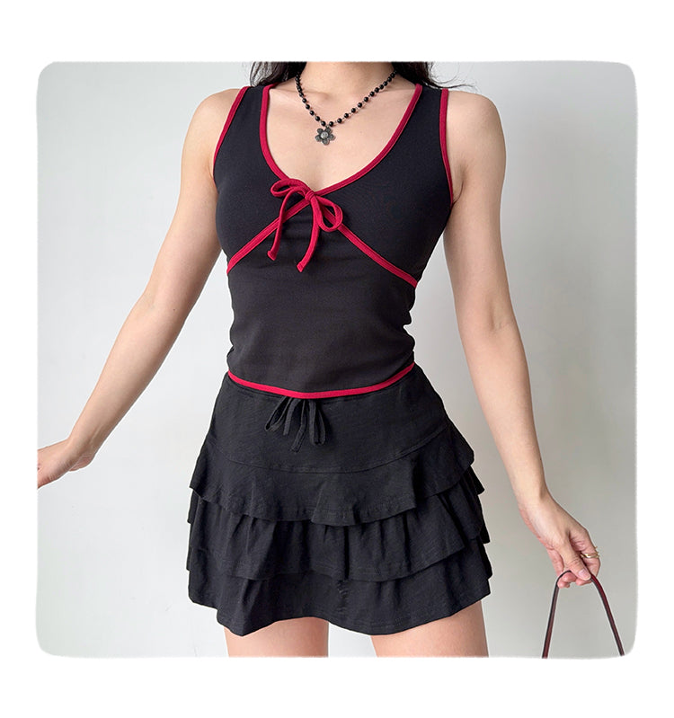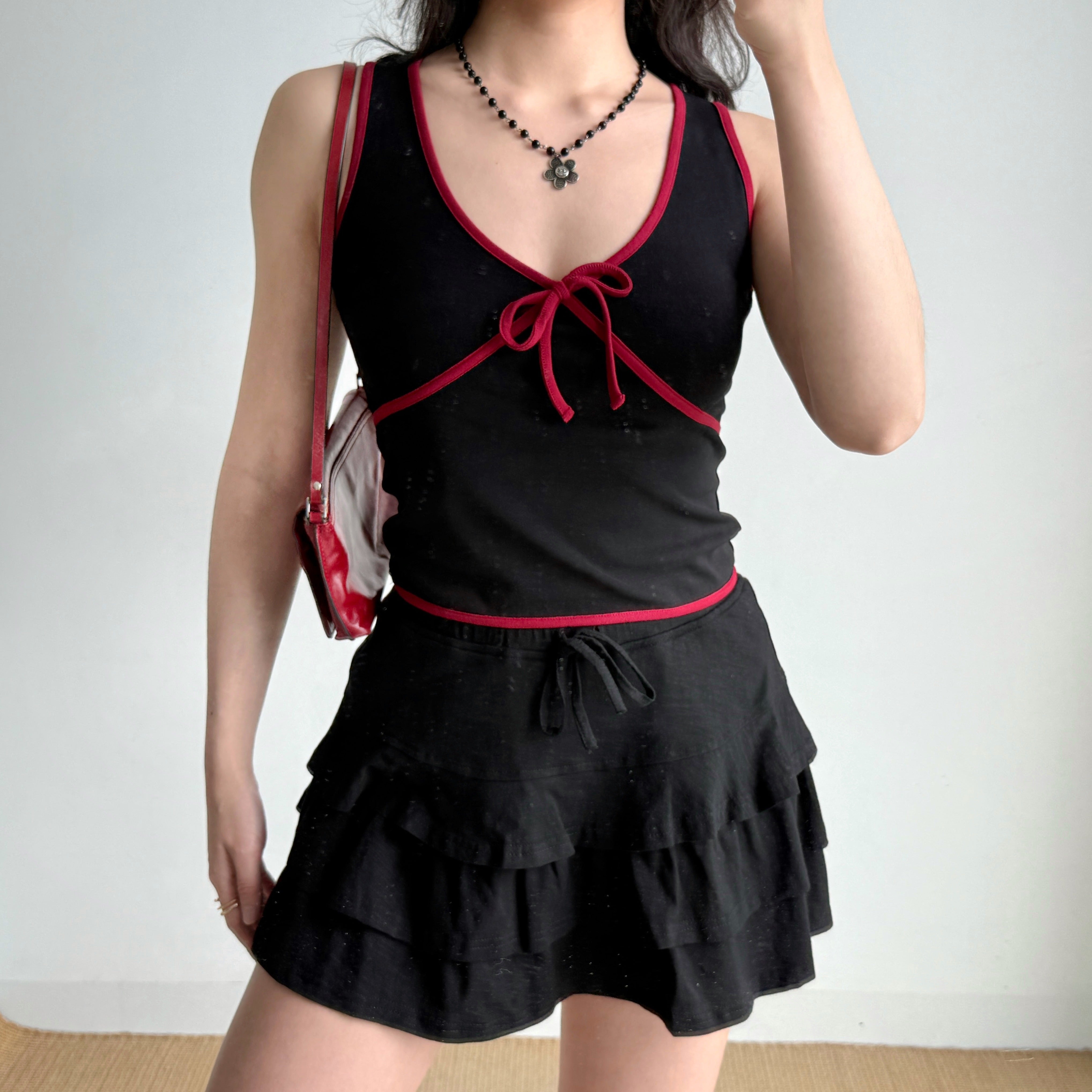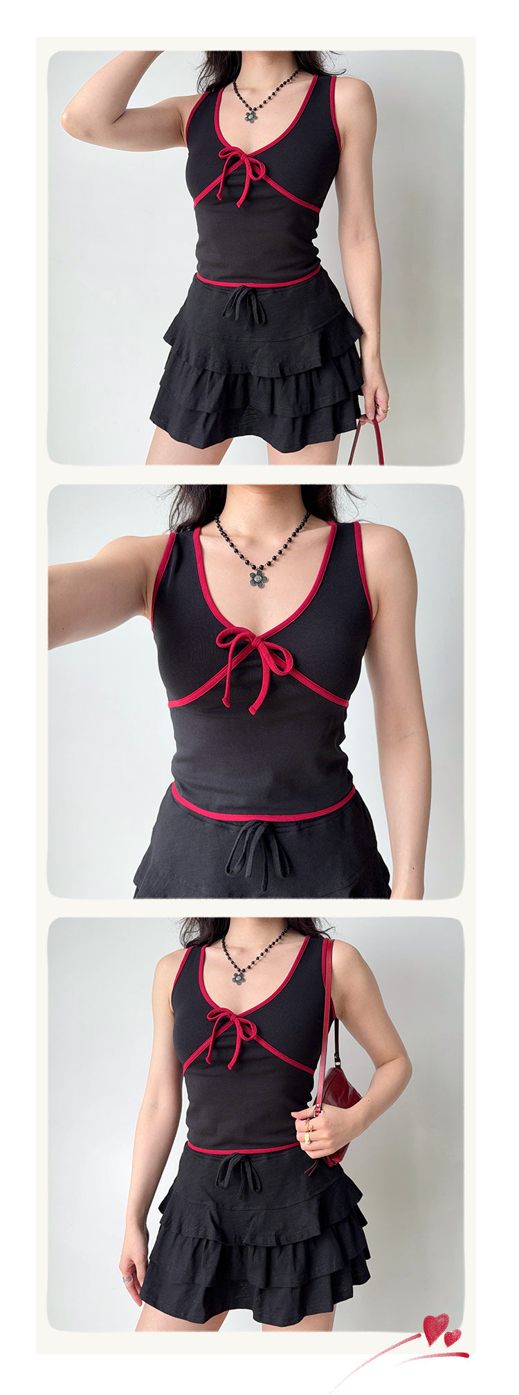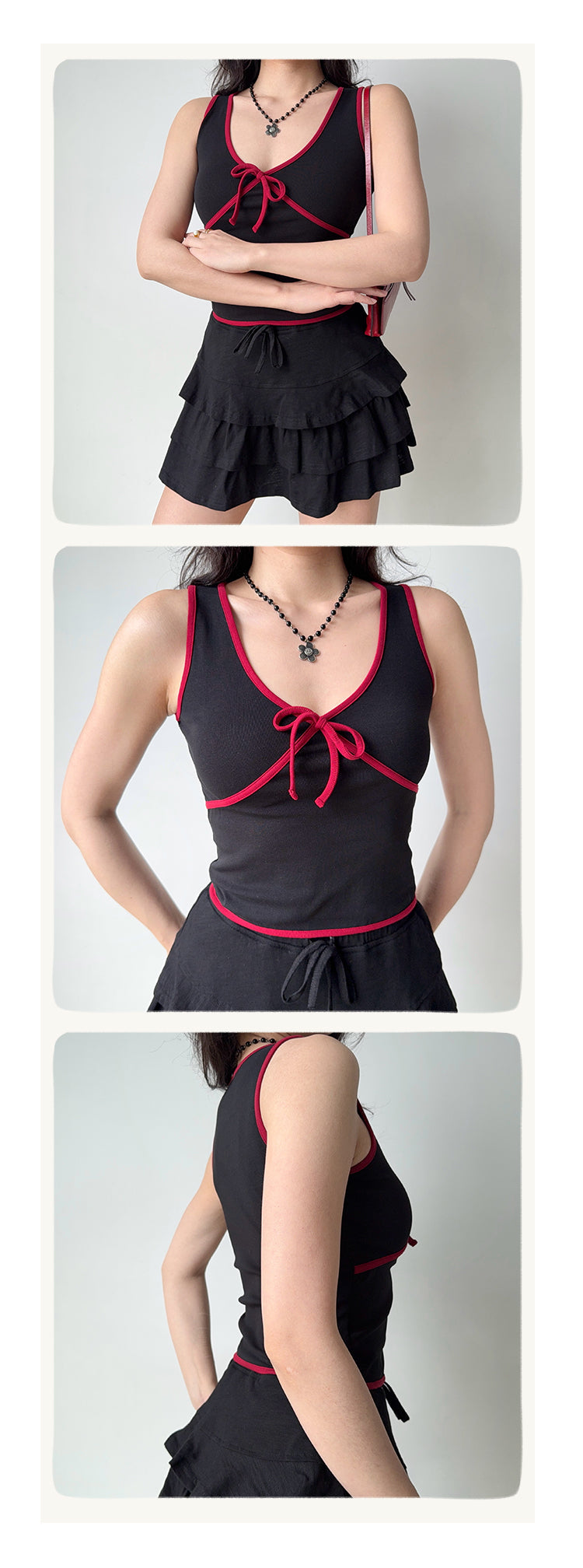 Contrast color bow design is simple and has highlights. The cuff size is just right, it covers the secondary breasts and is not easy to expose. V-neck neckline makes it look slim and elegant. Cotton fabric is skin-friendly and comfortable and elastic. Two colors to choose according to personal preference. The feeling of light yellow dopamine black makes it look slim and not picky. 93% cotton 7% spandex.