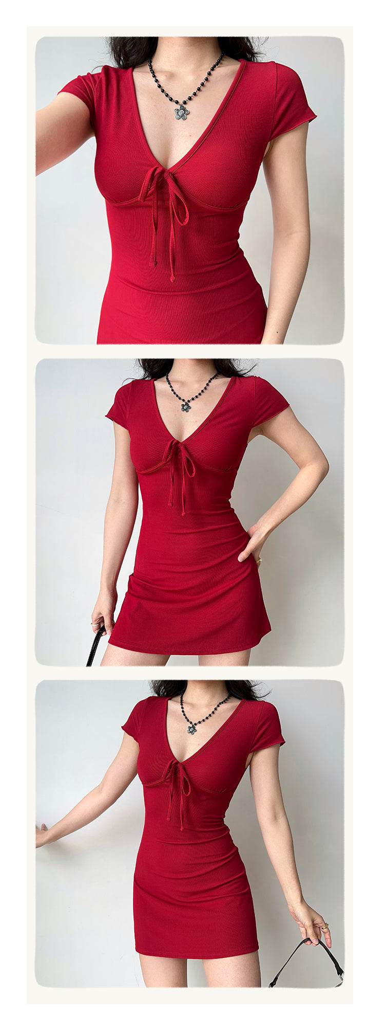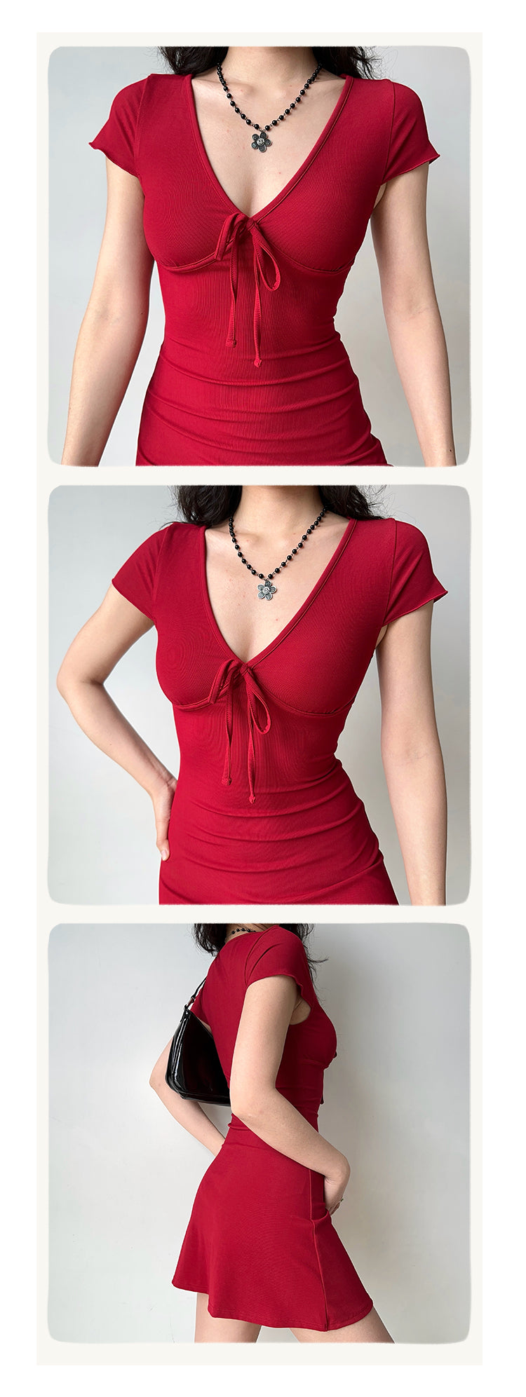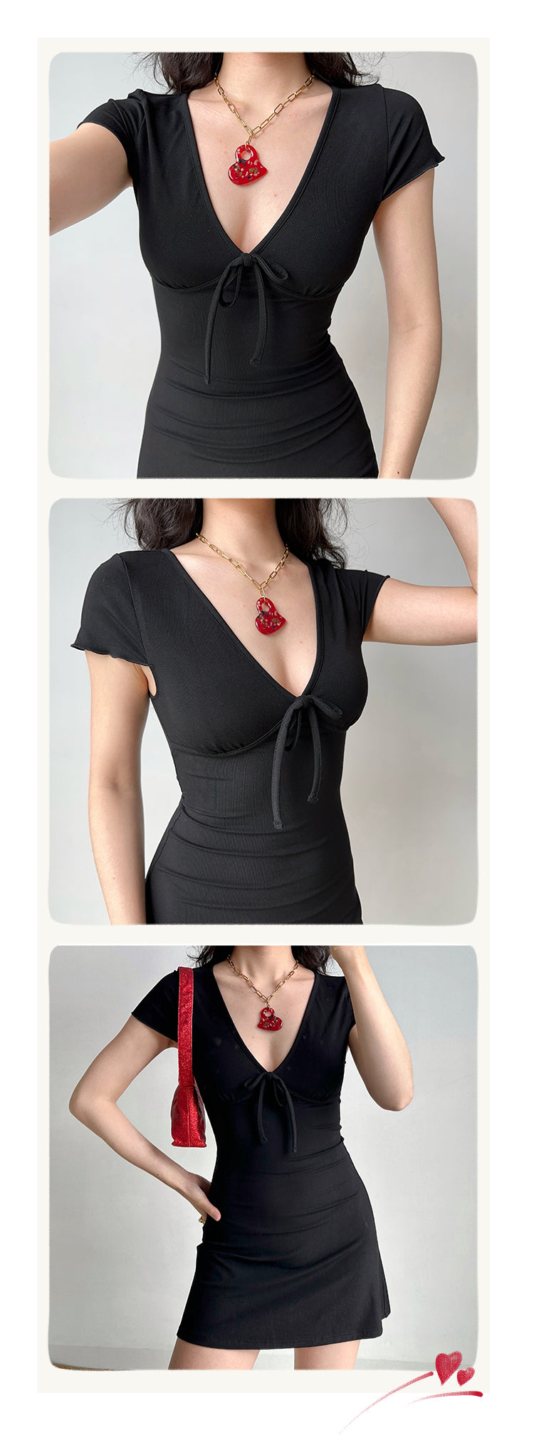 Sexy deep V-neck design, with bow