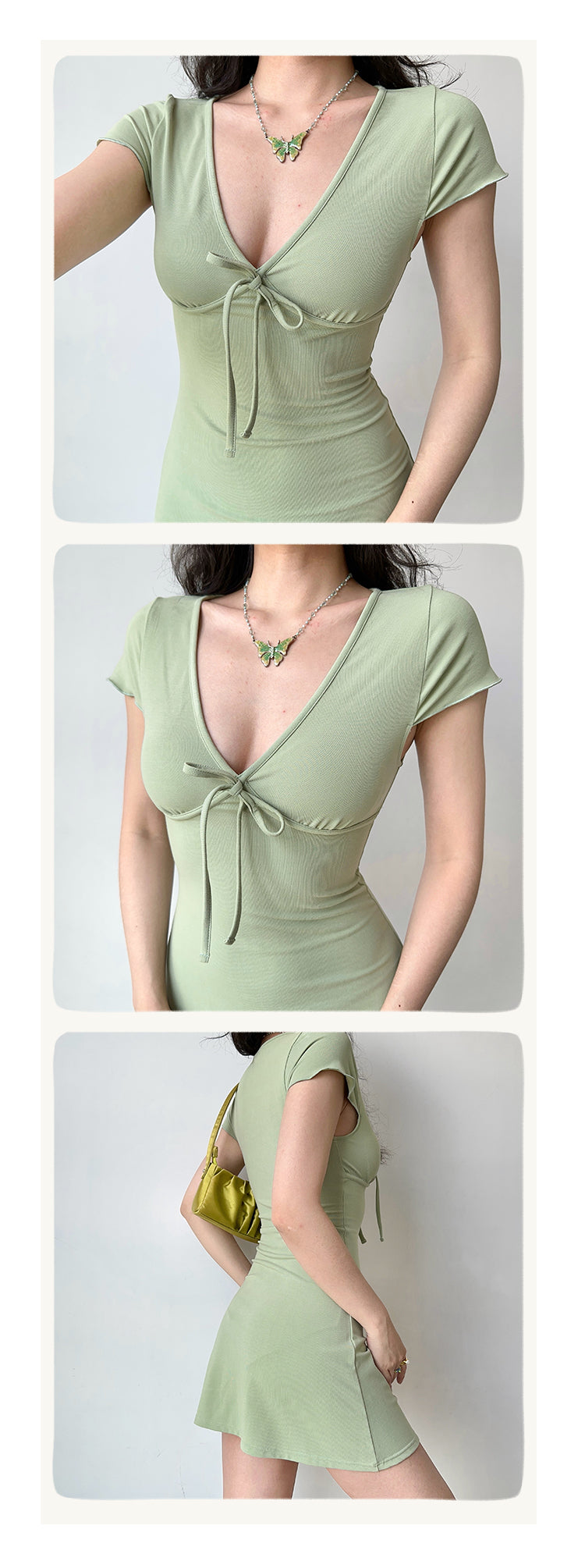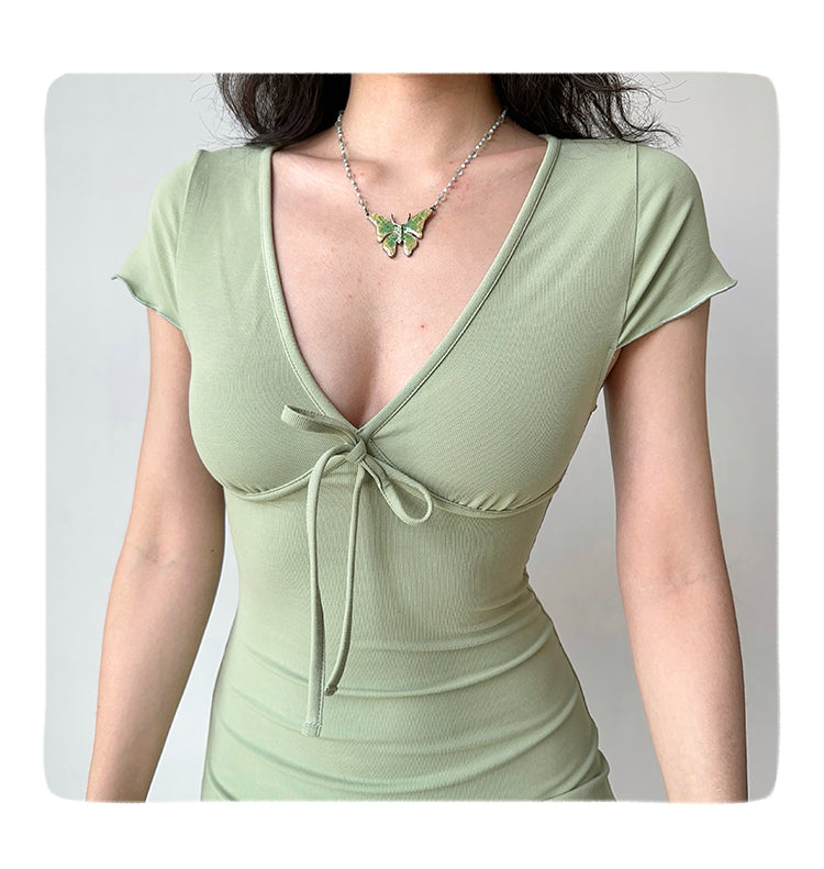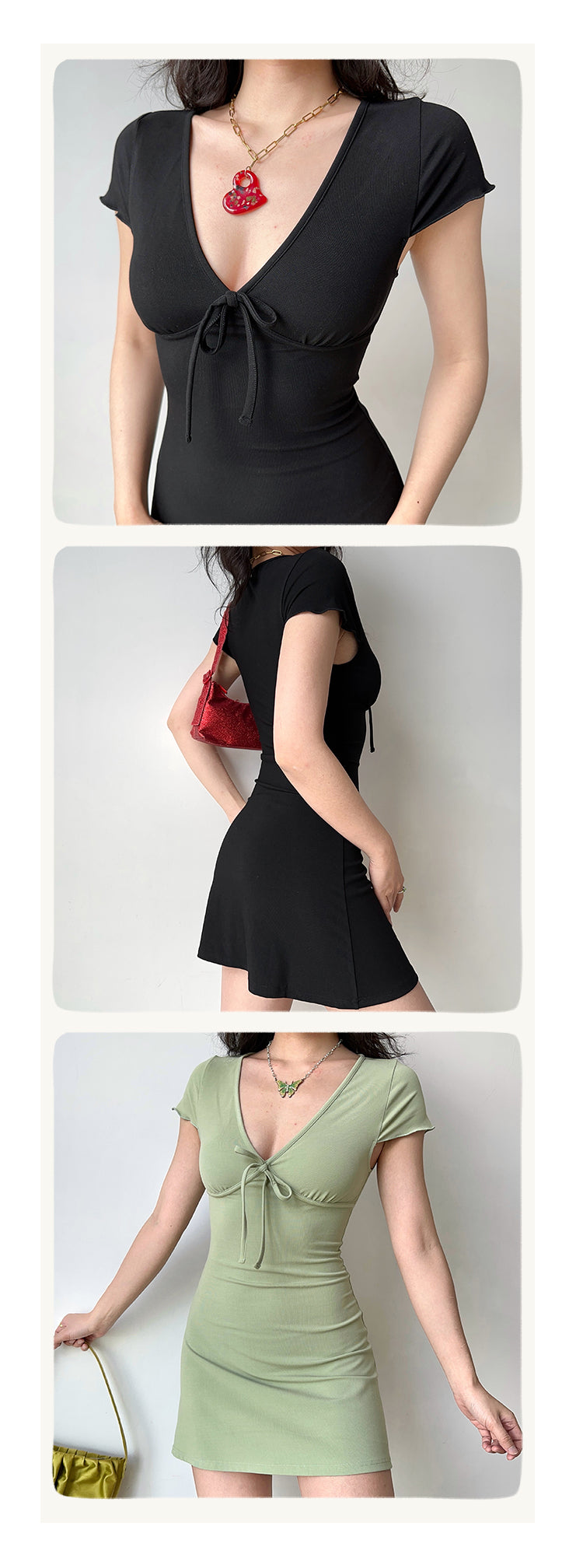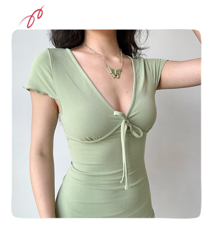 Sexy deep V-neck design, with bow