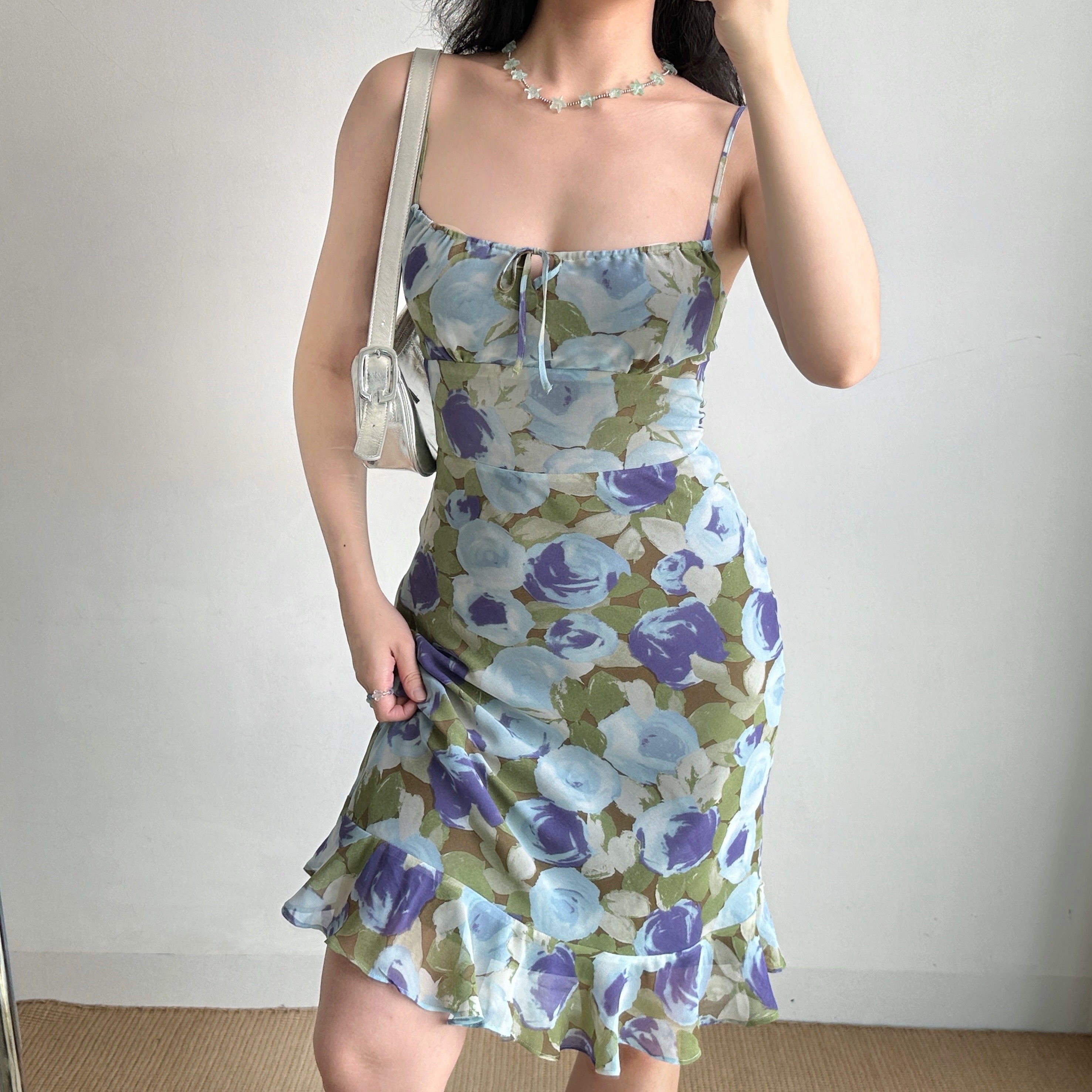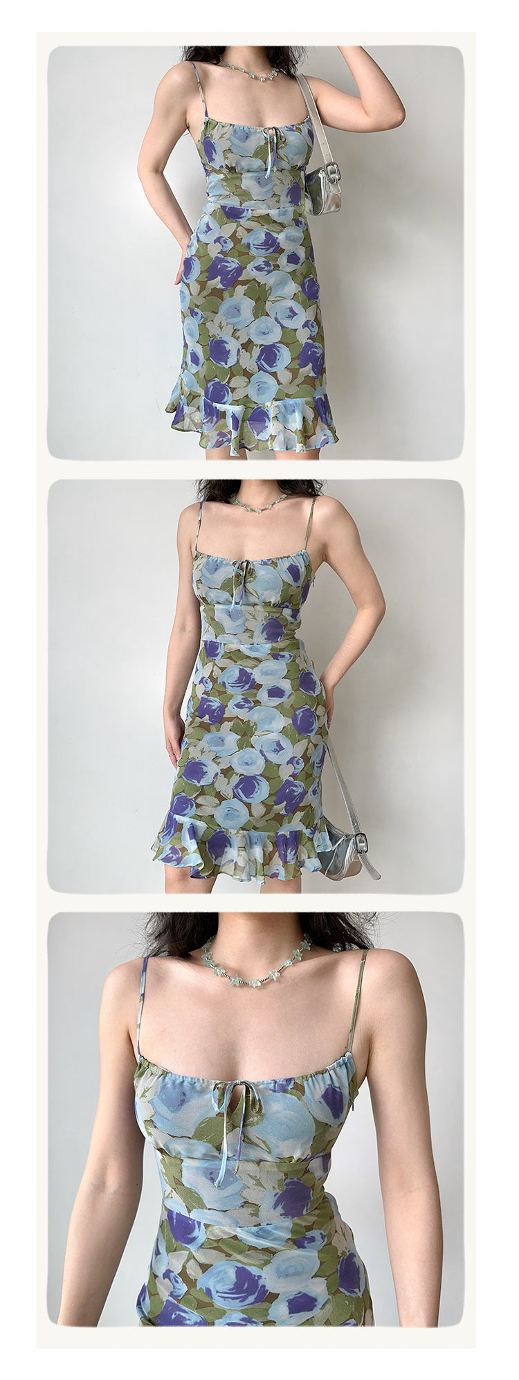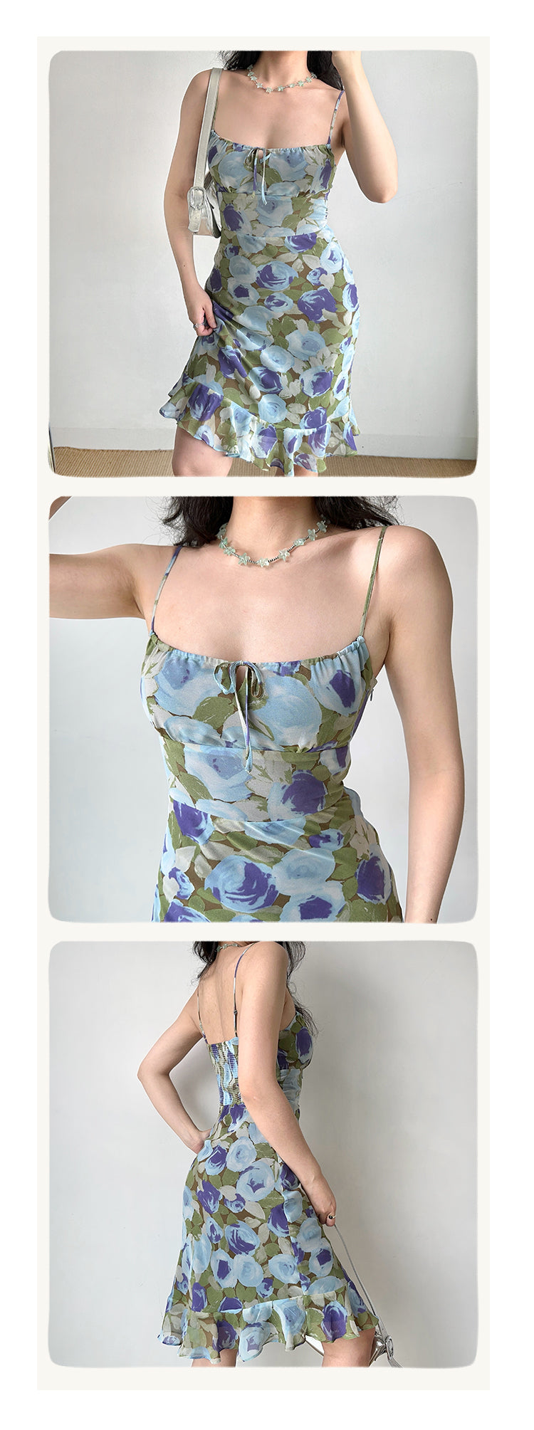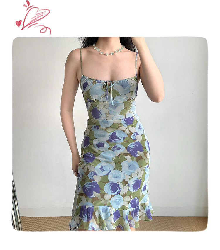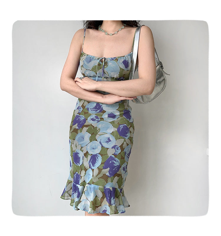The contrasting print pattern in oil painting style. Niqi and eye-catching, very suitable for beach vacation. Slim fit style highlights the curve of the figure. Rough hem breaks the routine and makes the overall more flexible. The back has a zipper adjustable shoulder straps. The side zipper is very convenient to put on and take off, the skirt has a lining. Note: the printed position is random. Fabric: 100% polyester. Line: 100% polyester.