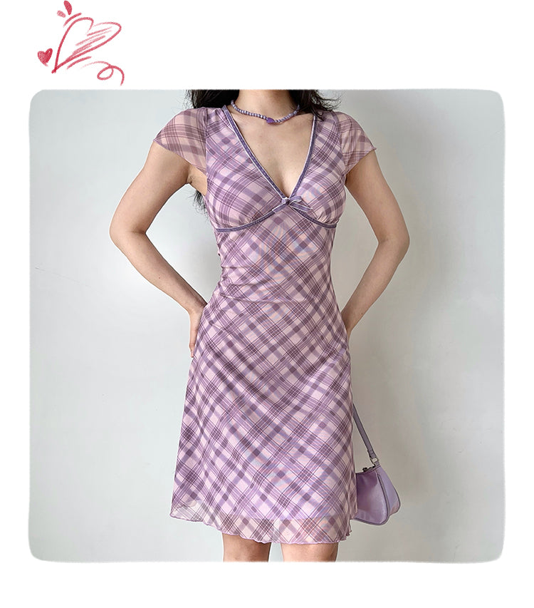 plaid mesh dress