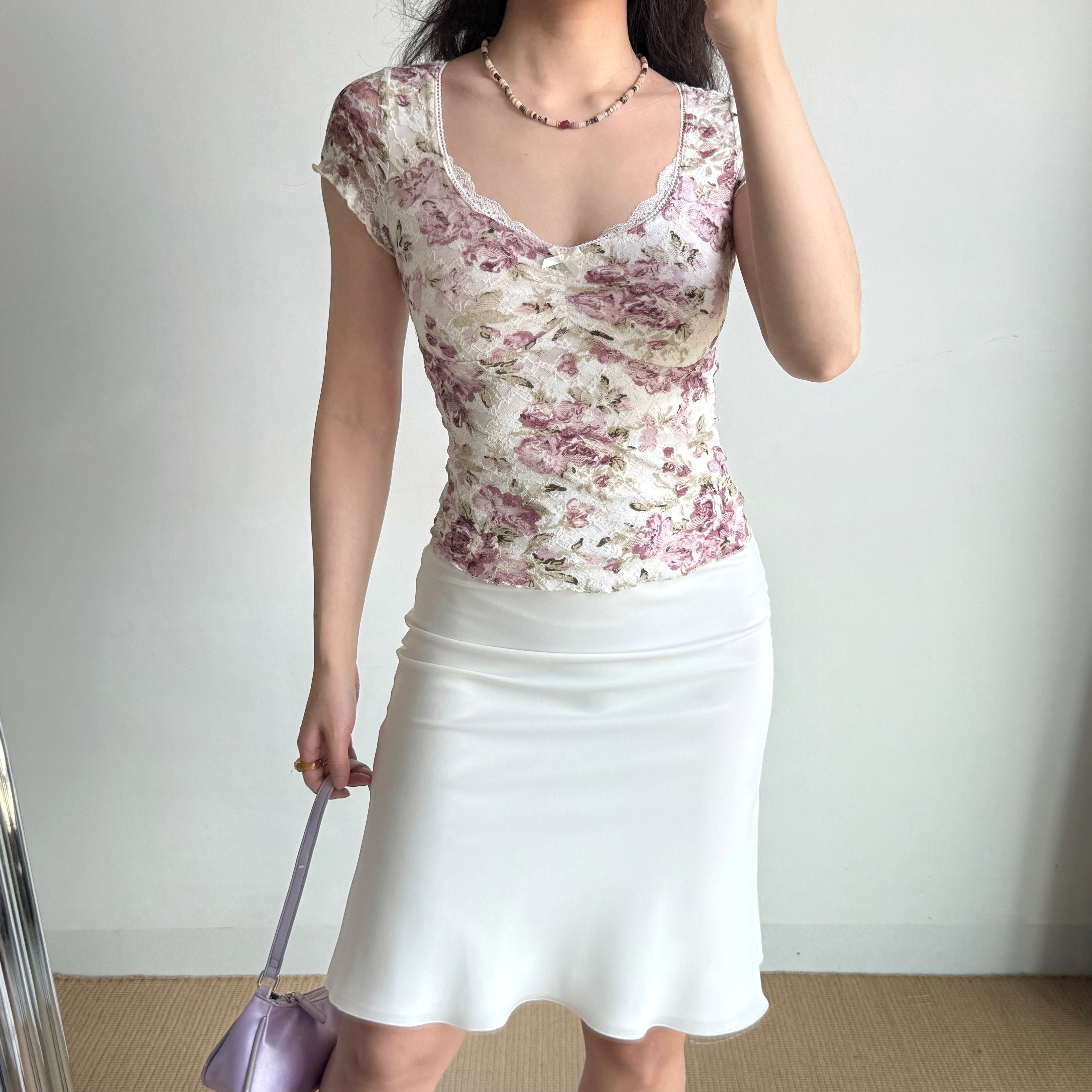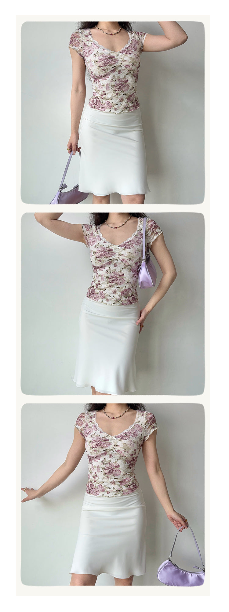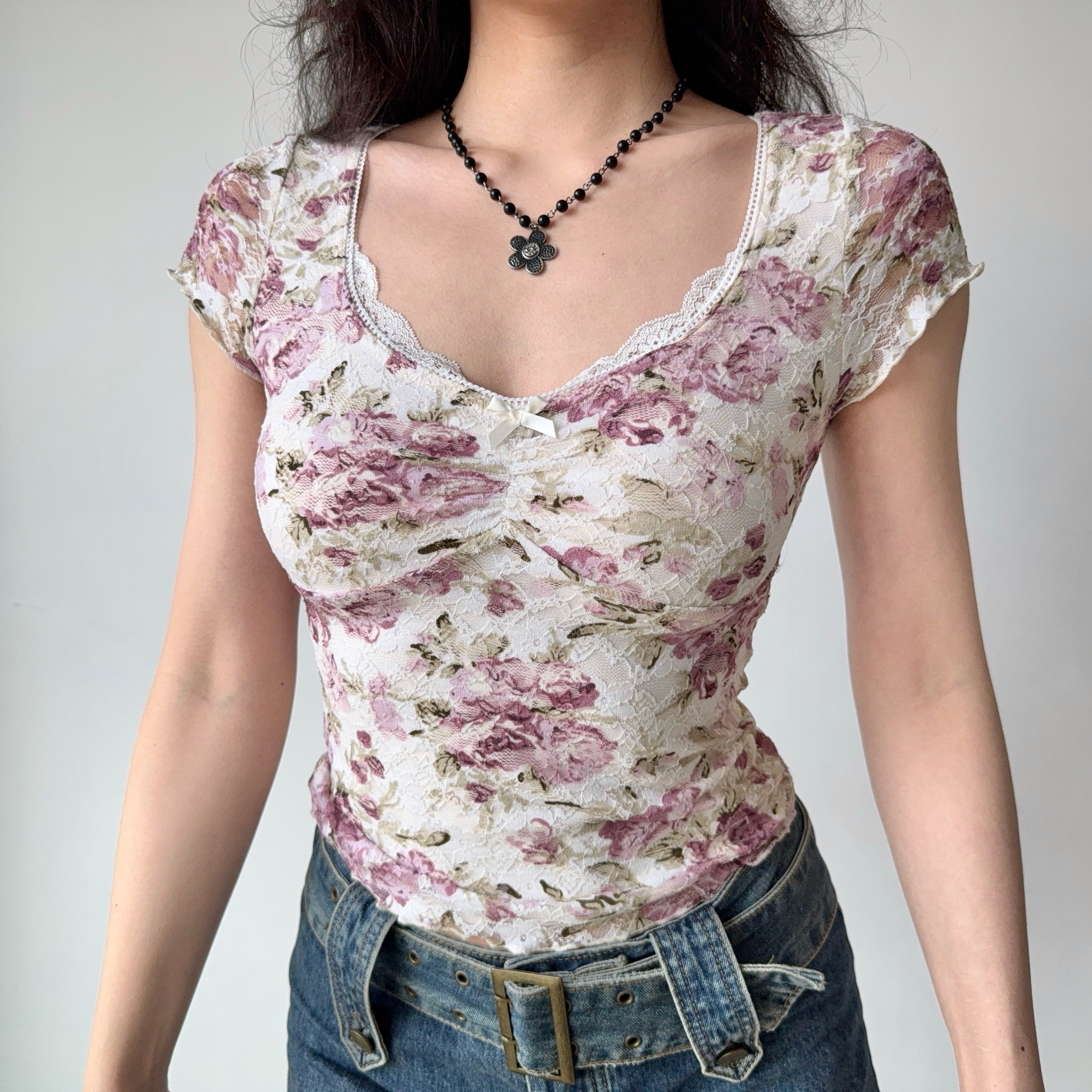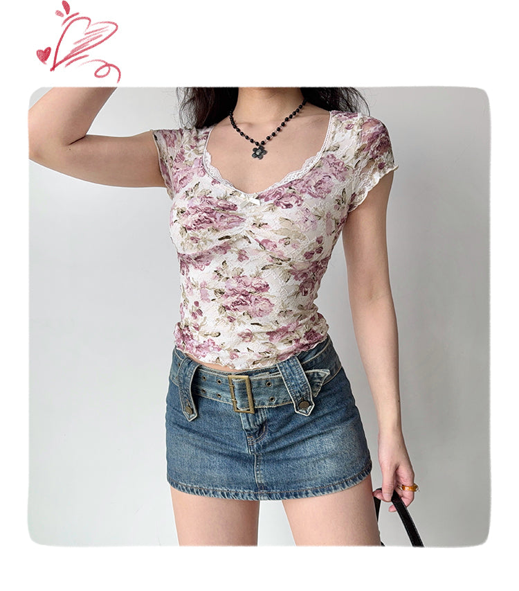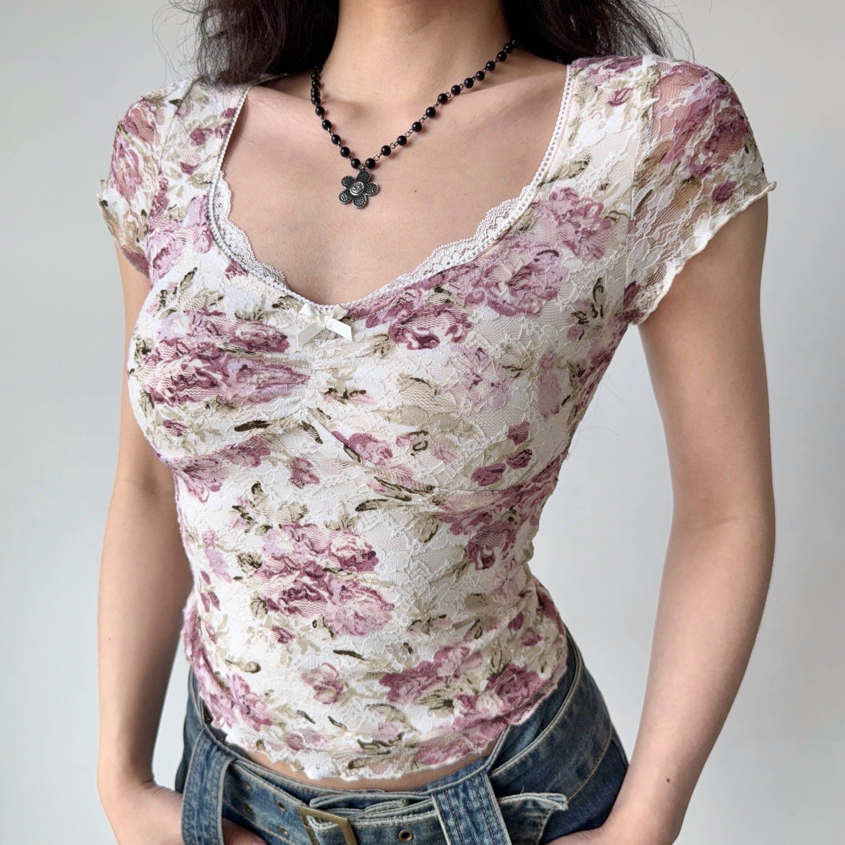 Printed lace fabric is very feminine. UV neckline visually modify the face shape. slim fit style The fabric is elastic. m casual with denim skirt. m elegant with fishtail skirt. Note: lace fabric may be easy to hook up. It is difficult to avoid during wearing. Try to choose hand washing, if you need a machine, please turn over and put a laundry bag. 95% nylon 5% spandex.