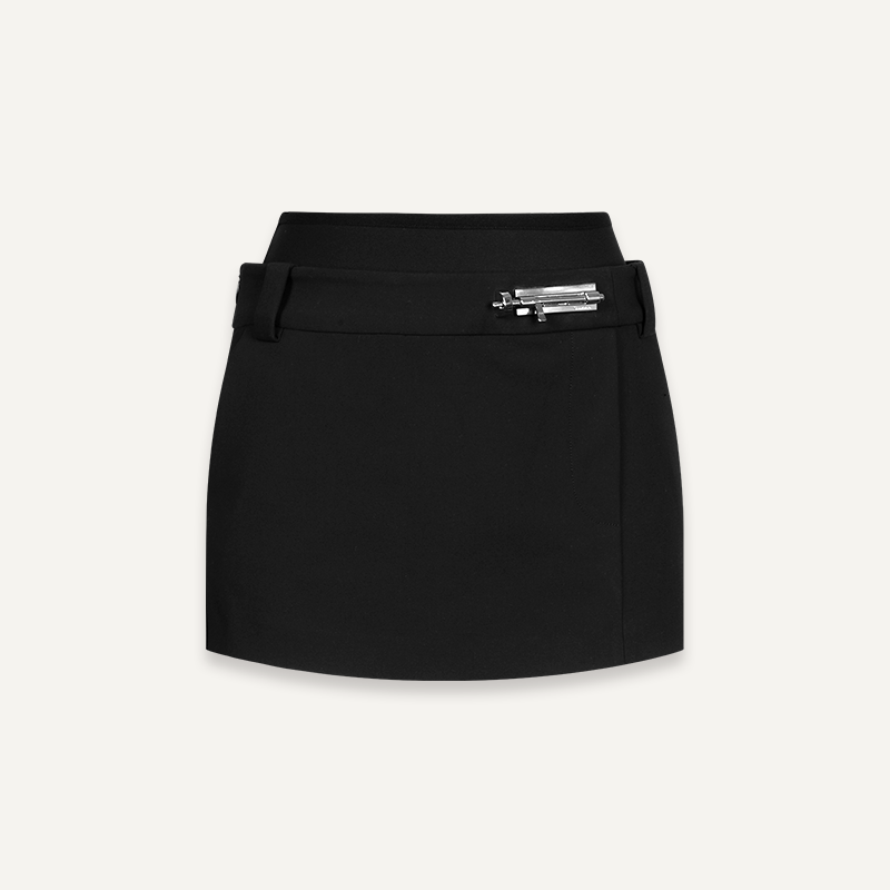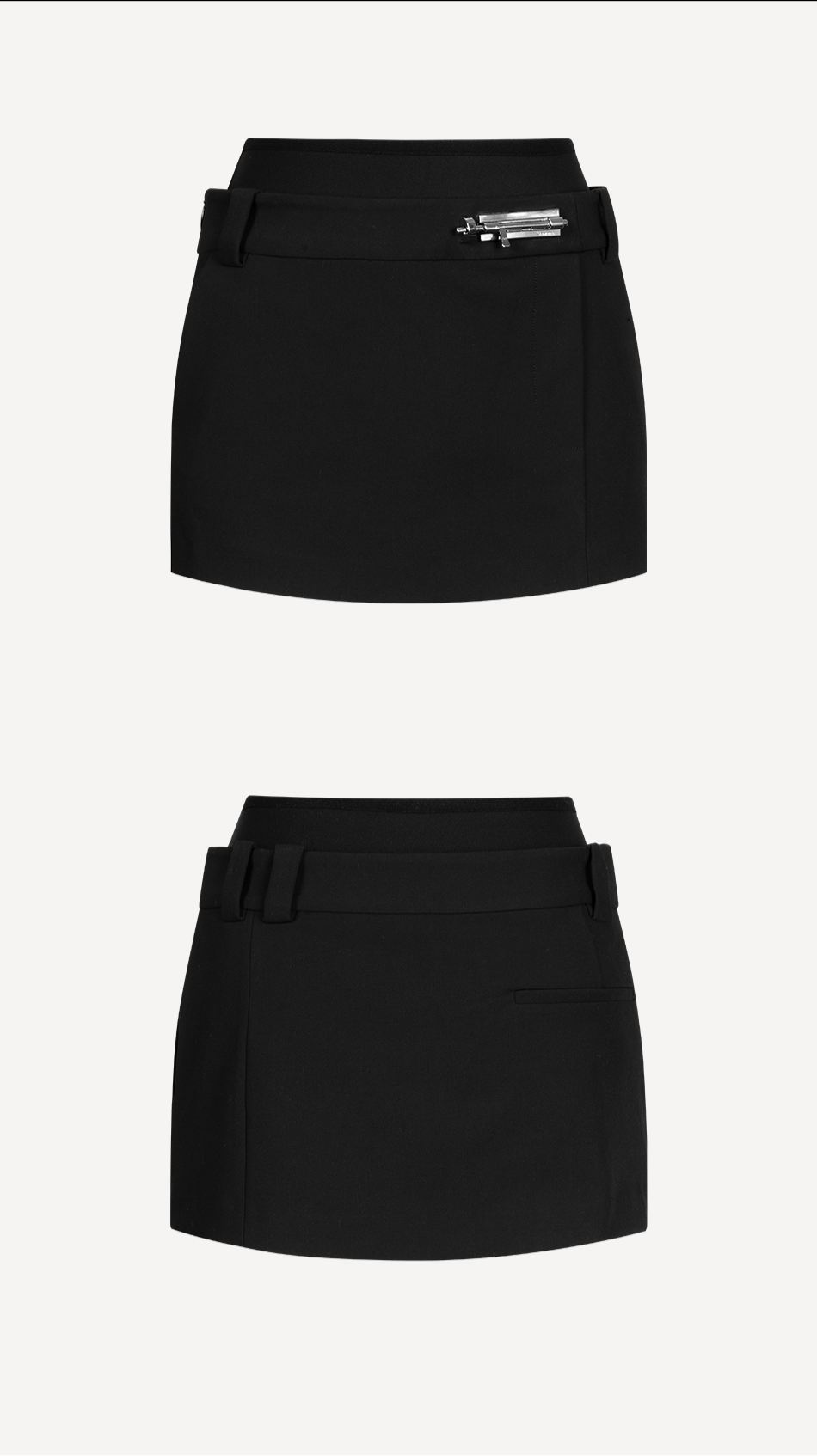 [UNAWARES] Double-Layer Waist Pin Buckle Mini Skirt
