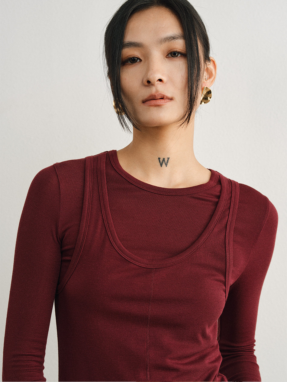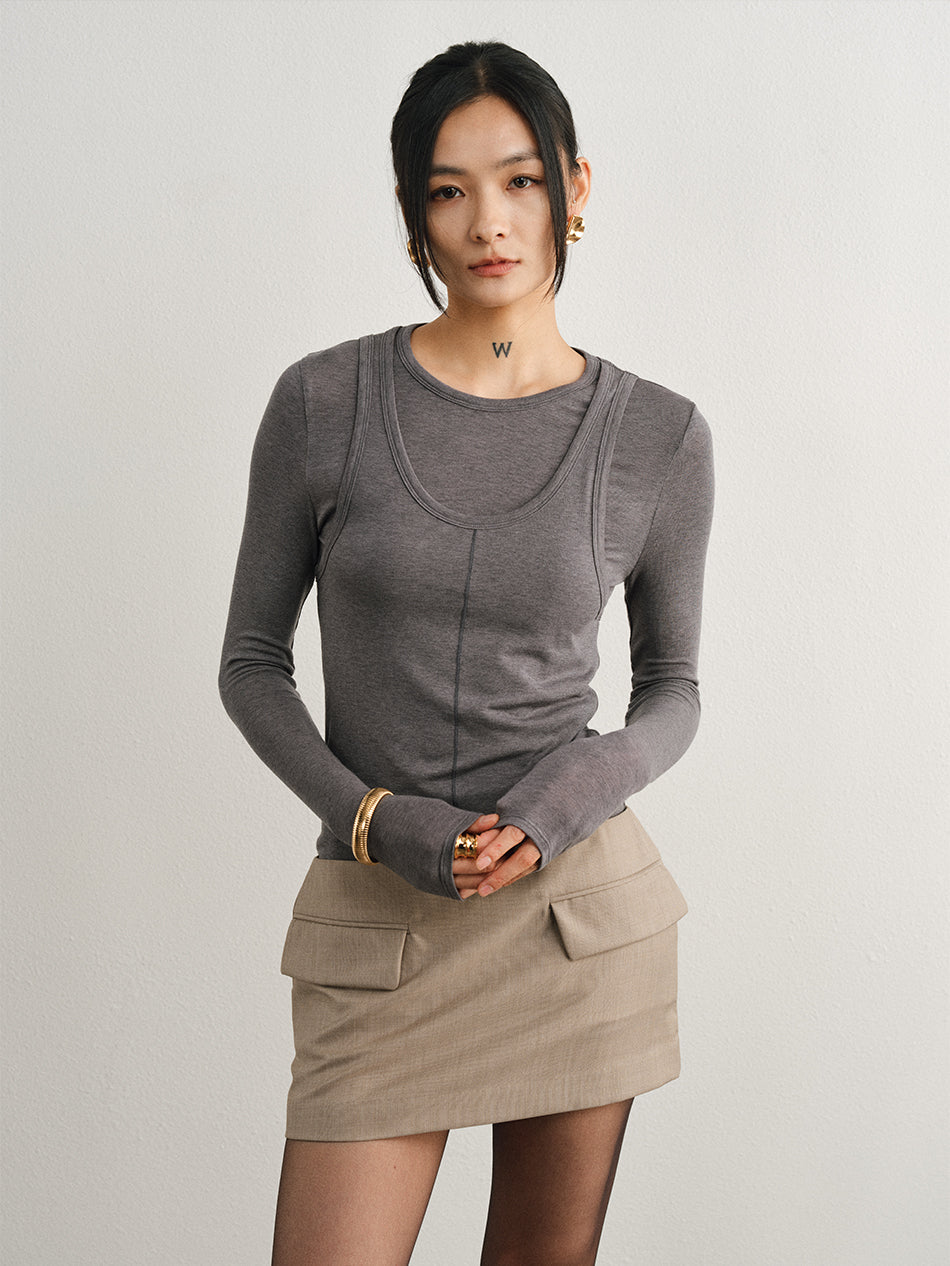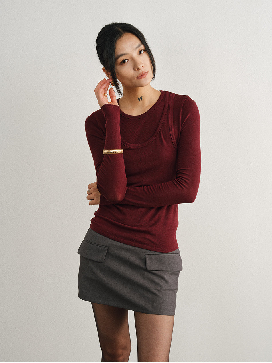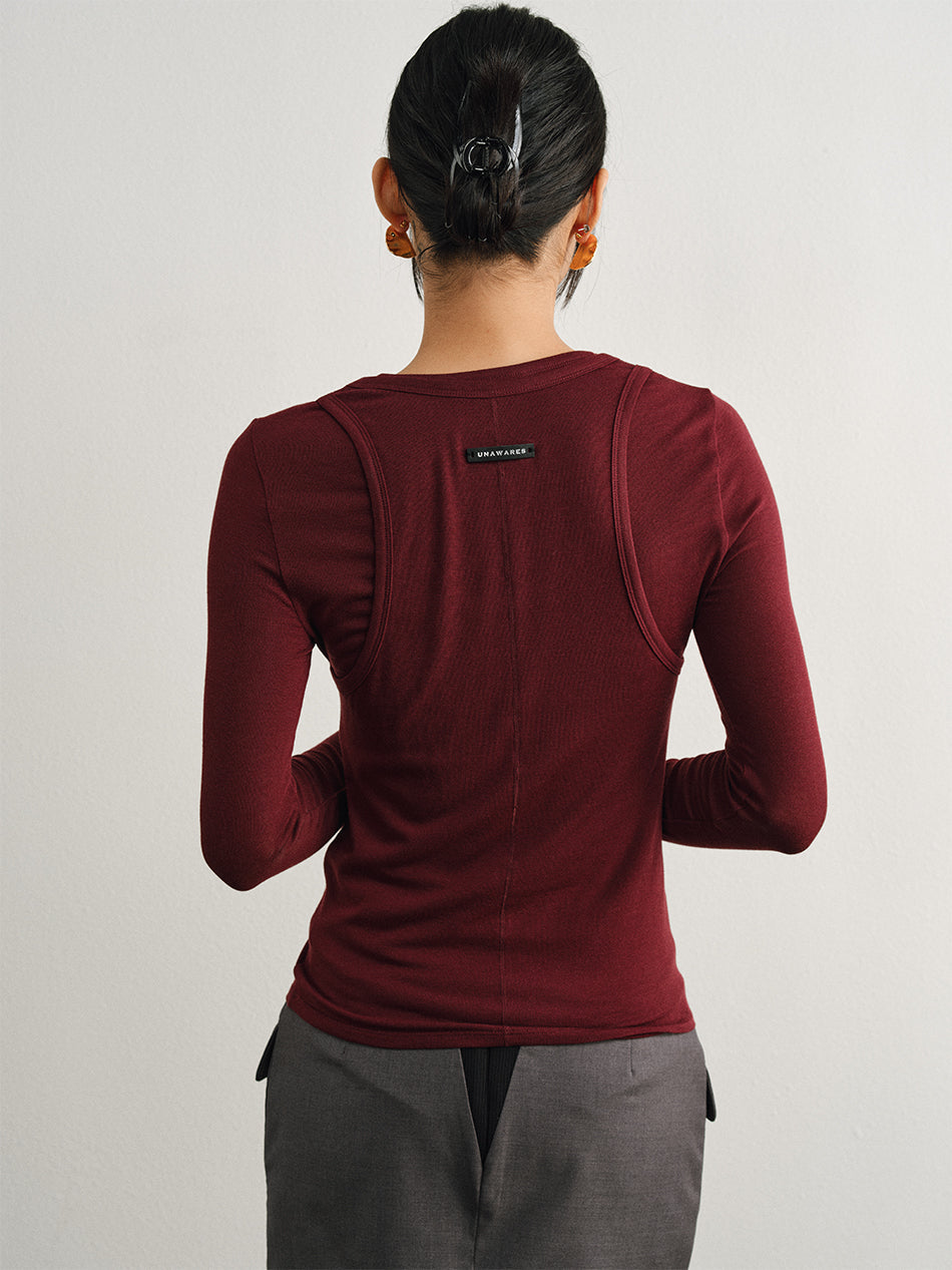 [UNAWARES] Merino Tencel Wool Fake Two-Piece Top