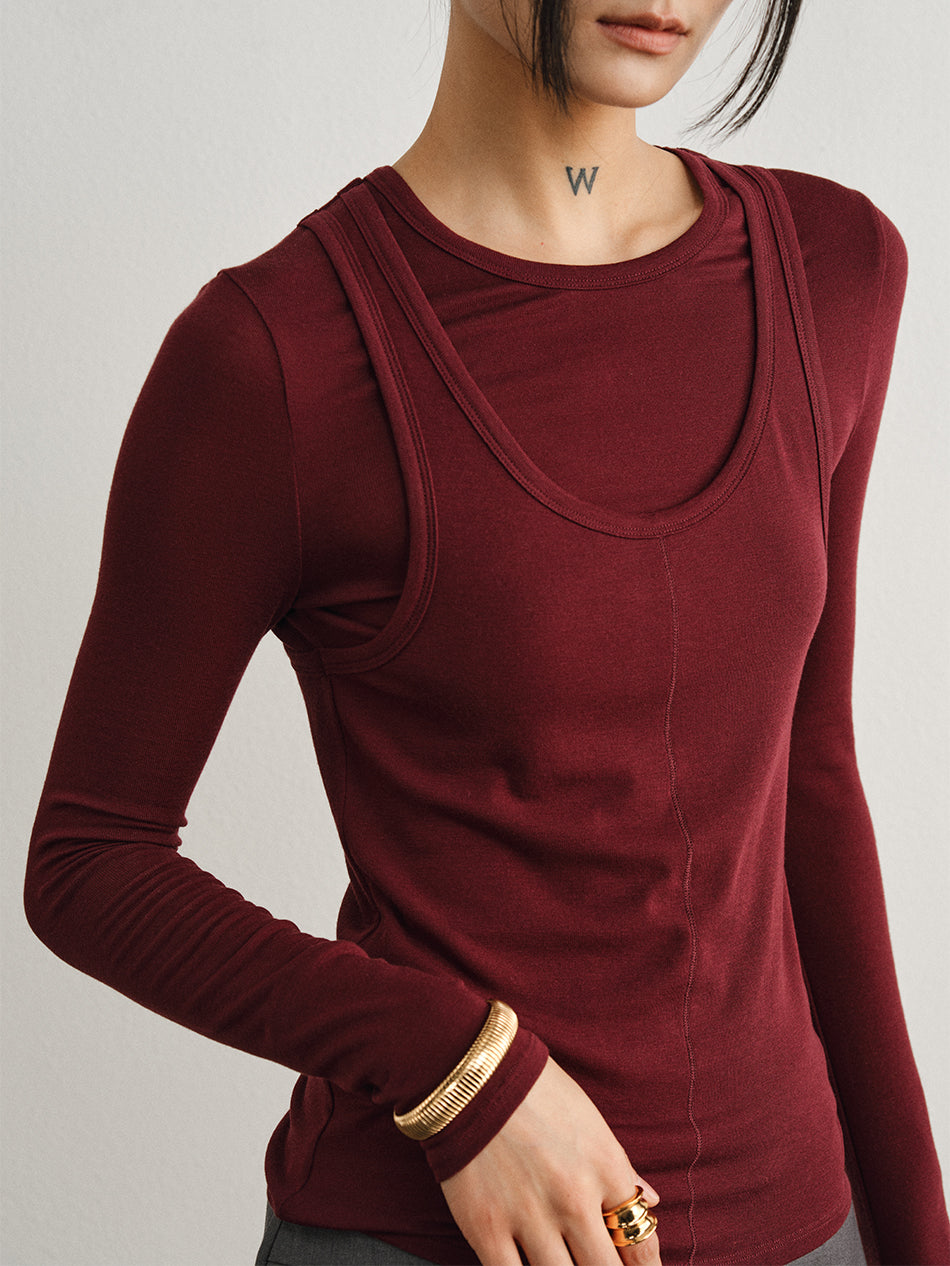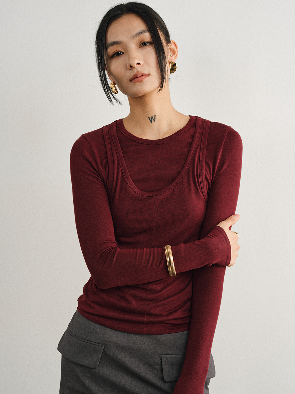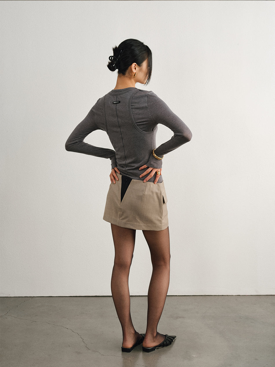 [UNAWARES] Merino Tencel Wool Fake Two-Piece Top