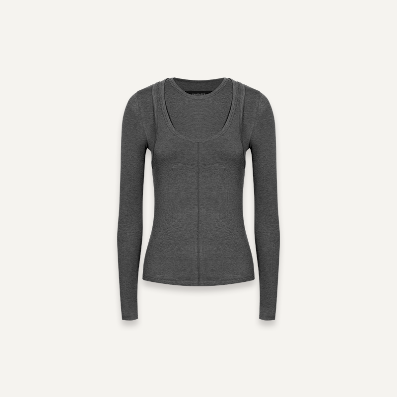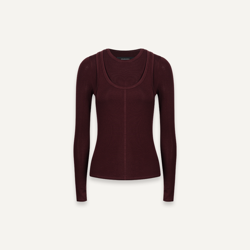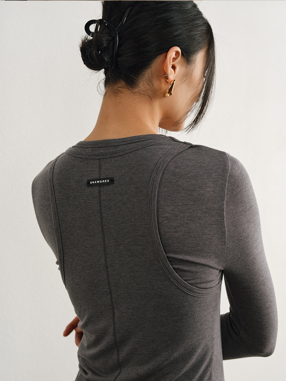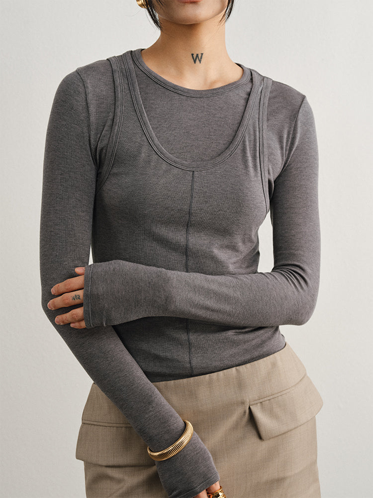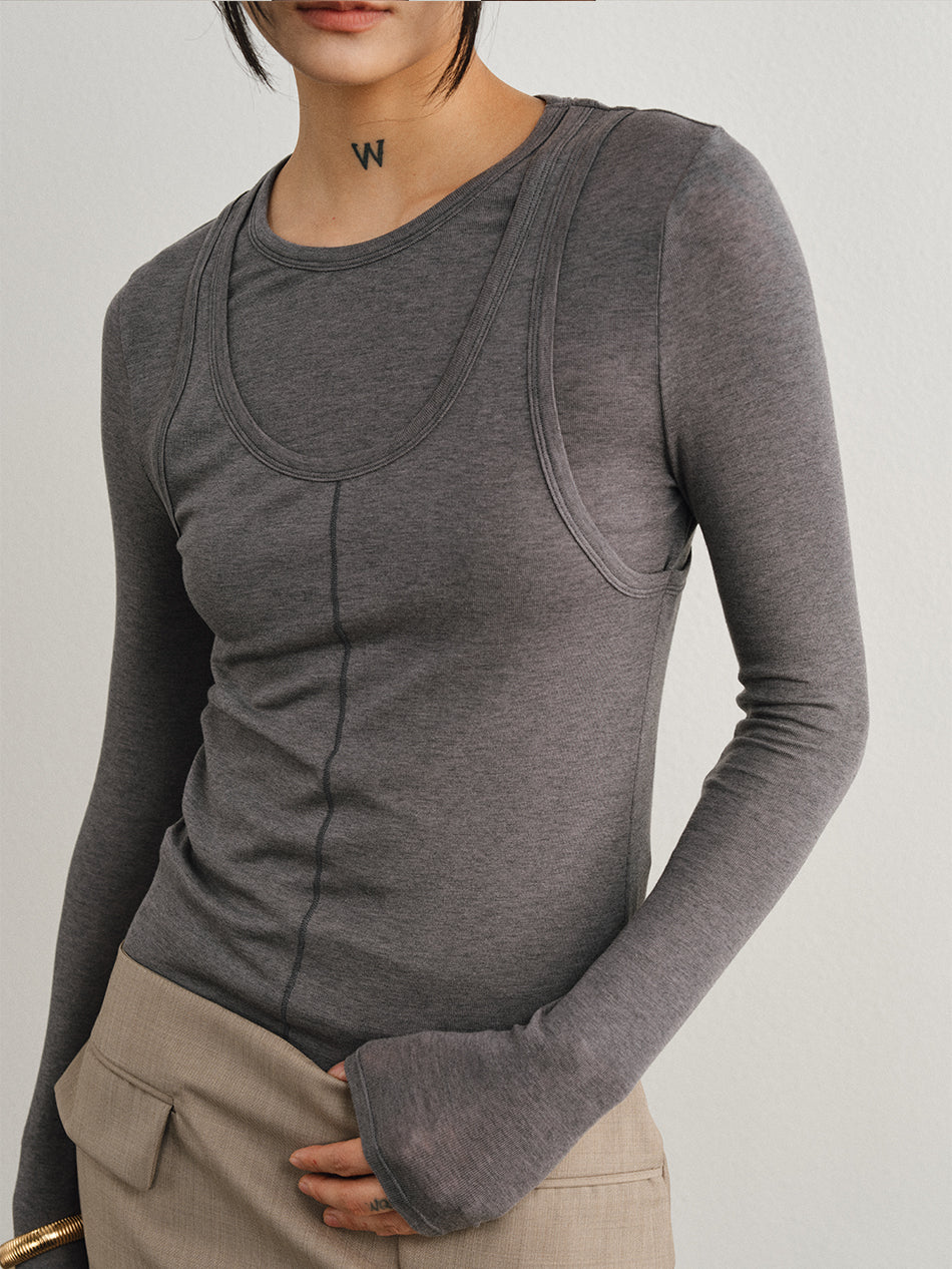 [UNAWARES] Merino Tencel Wool Fake Two-Piece Top