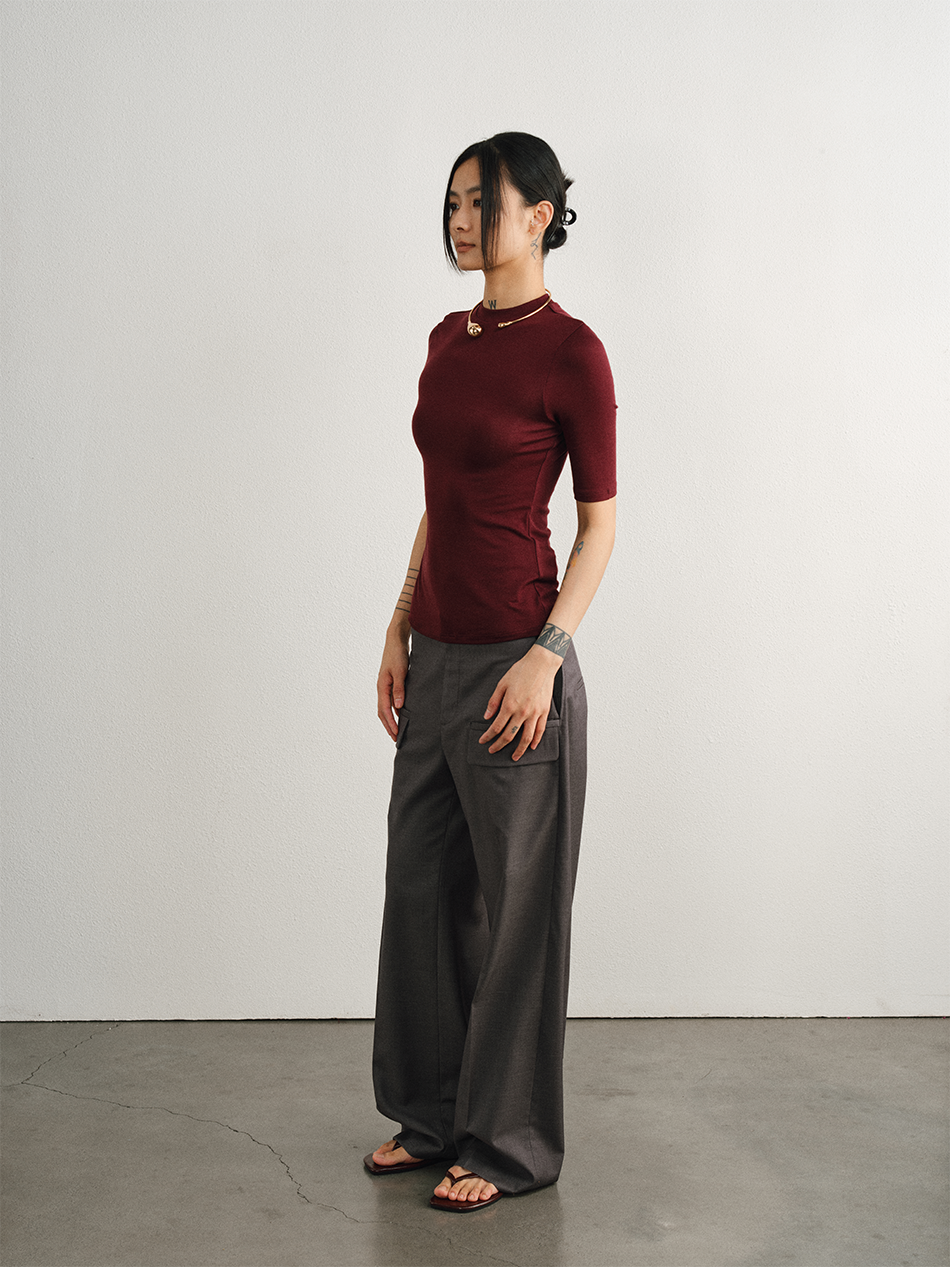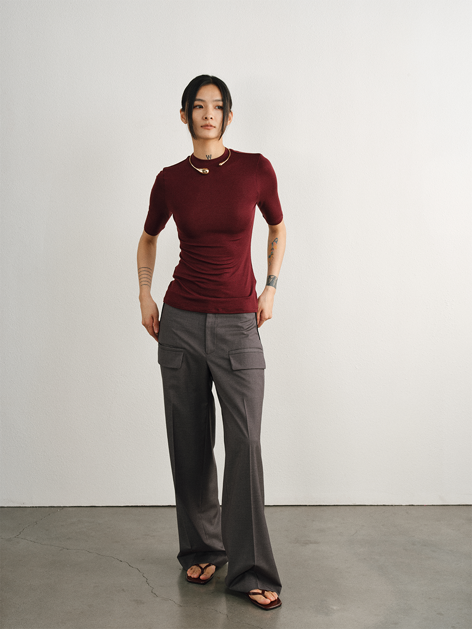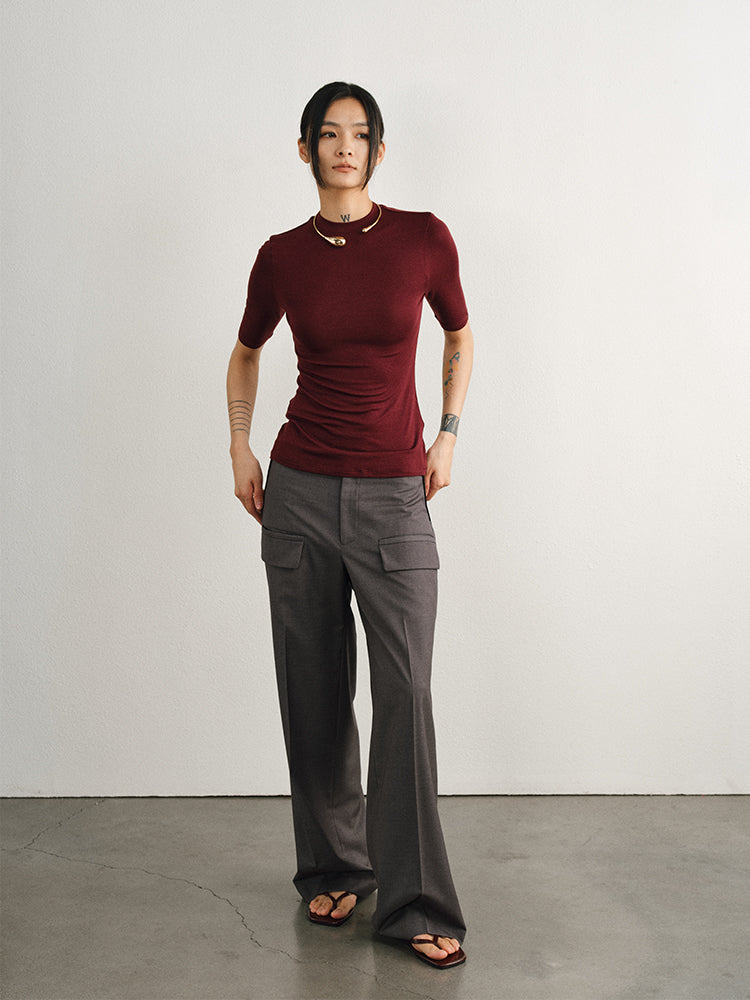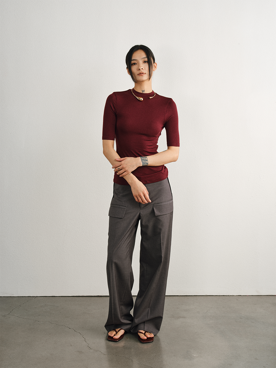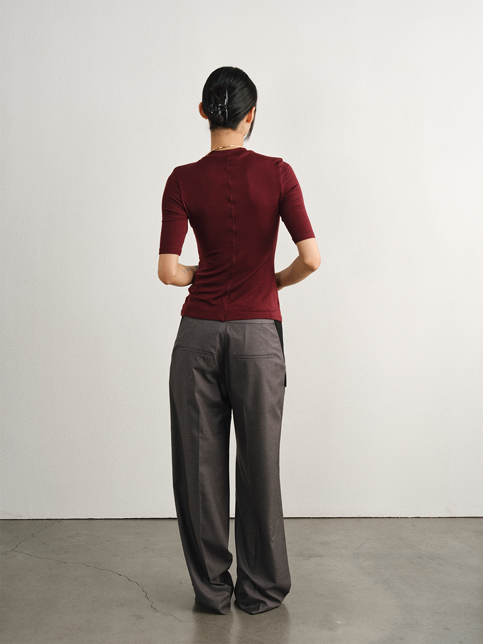 — Worsted Wool 50%, Polyester Fiber 47%, Spandex 3% — Australian Merino Fine Wool — Worsted wool fabric — Unique two-tone yarn weaving process — Presents a novel heather effect — Excellent wrinkle resistance, crisp and smooth — Lycra comfortable elasticity — Improves comfort