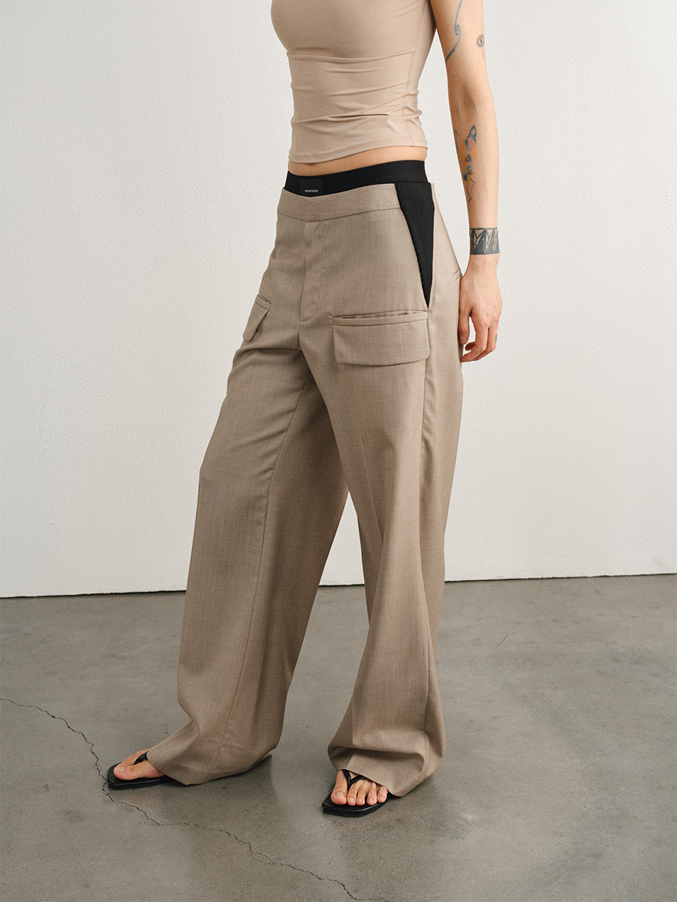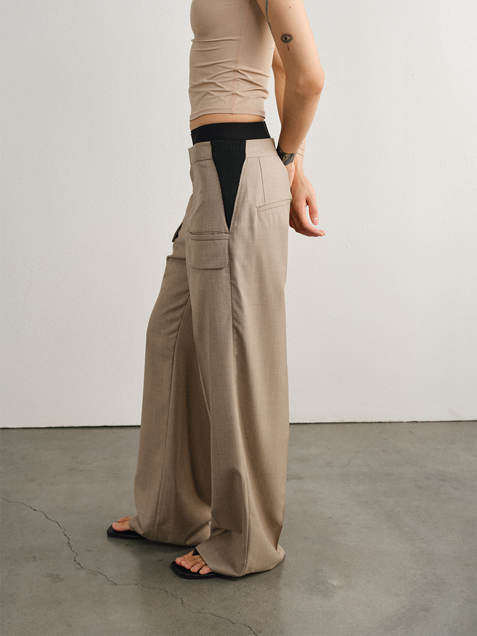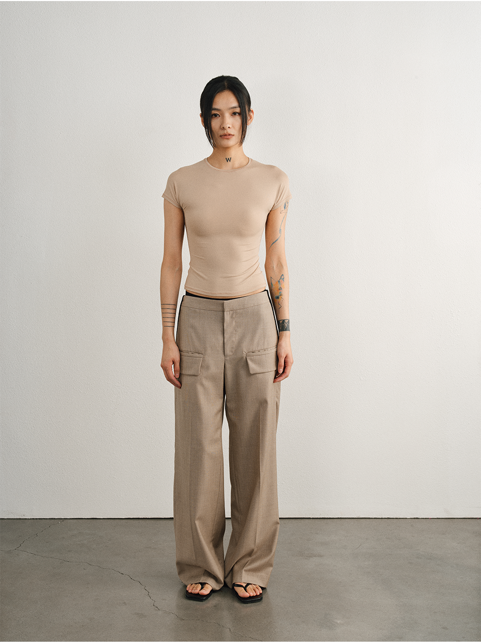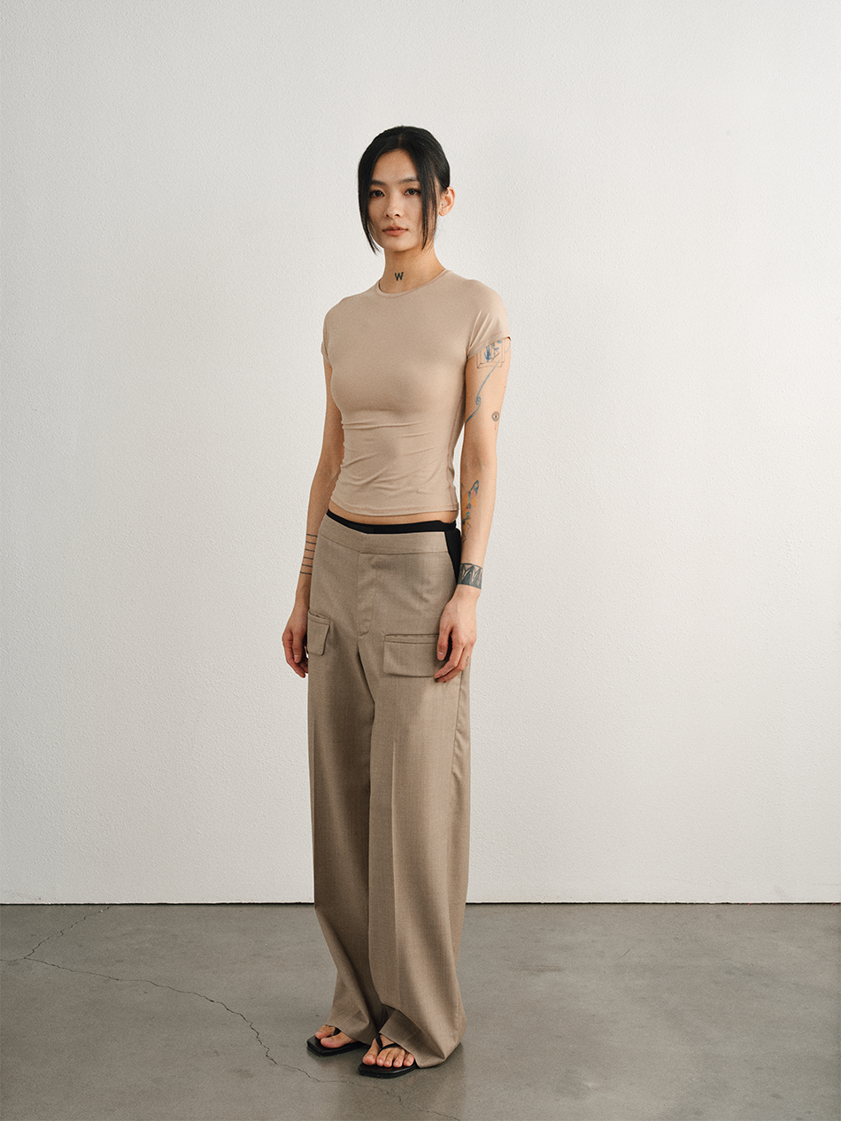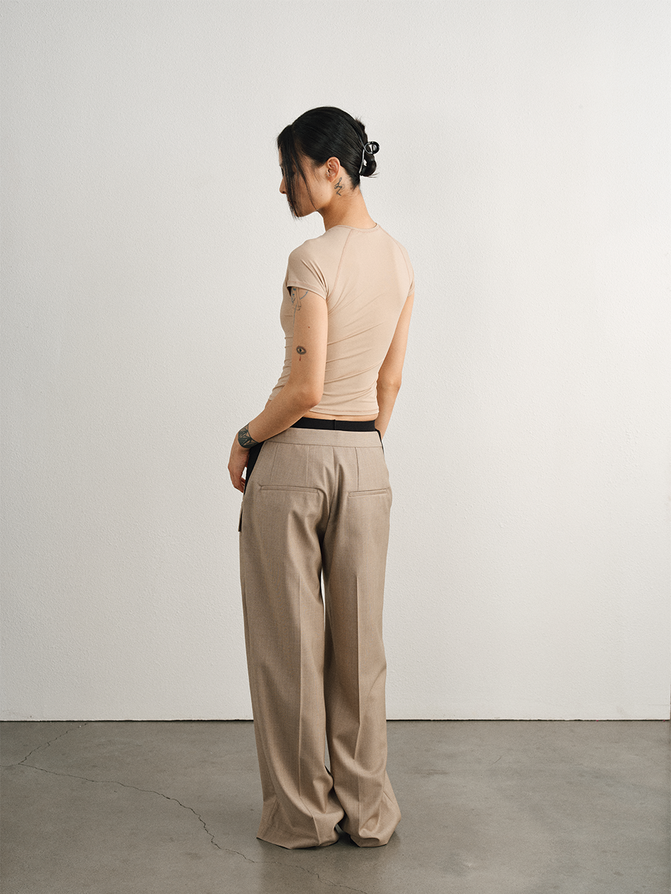 — Worsted Wool 50%, Polyester Fiber 47%, Spandex 3% — Australian Merino Fine Wool — Worsted wool fabric — Unique two-tone yarn weaving process — Presents a novel heather effect — Excellent wrinkle resistance, crisp and smooth — Lycra comfortable elasticity — Improves comfort