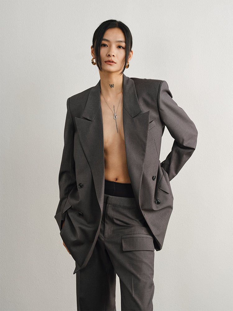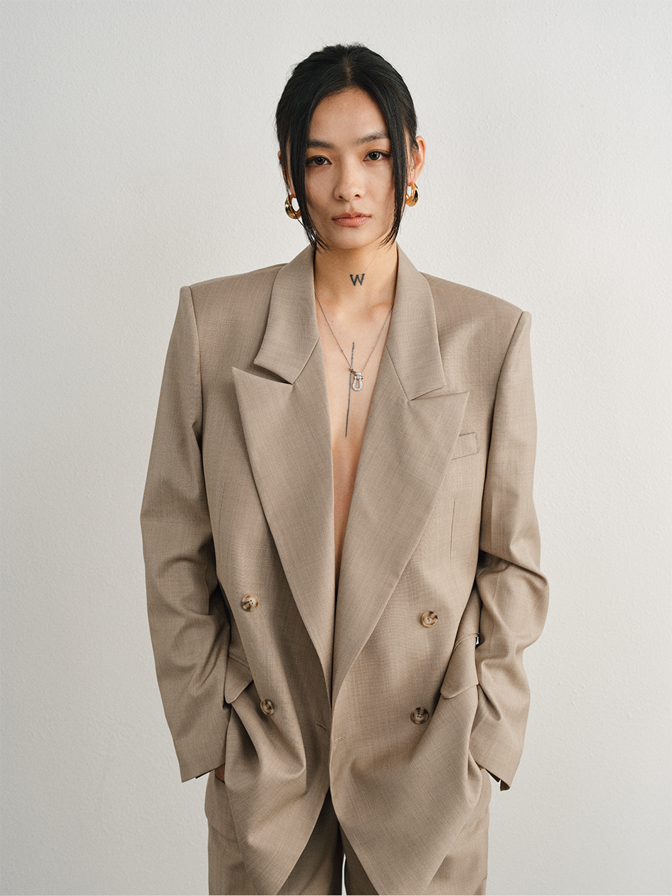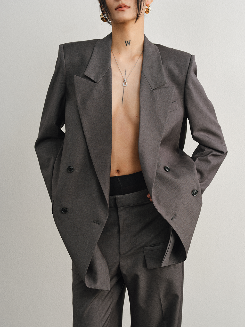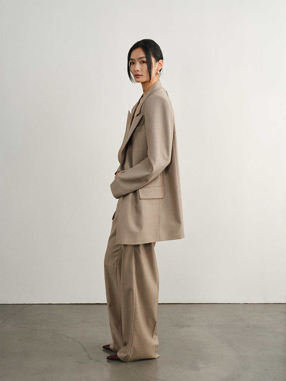 [UNAWARES] Old Money Merino Wool Collar Padded Shoulder Suit
