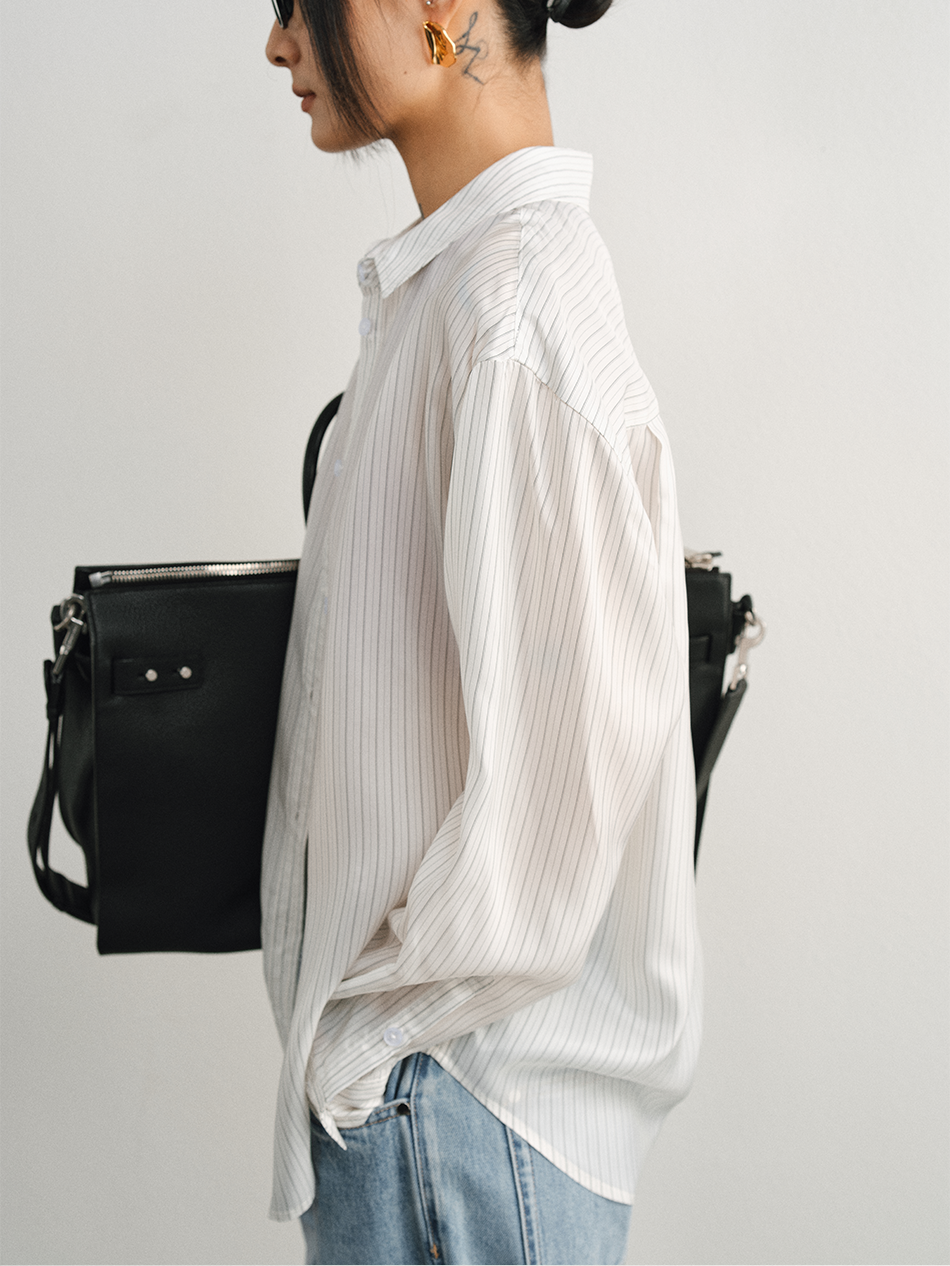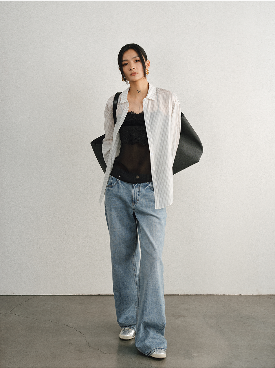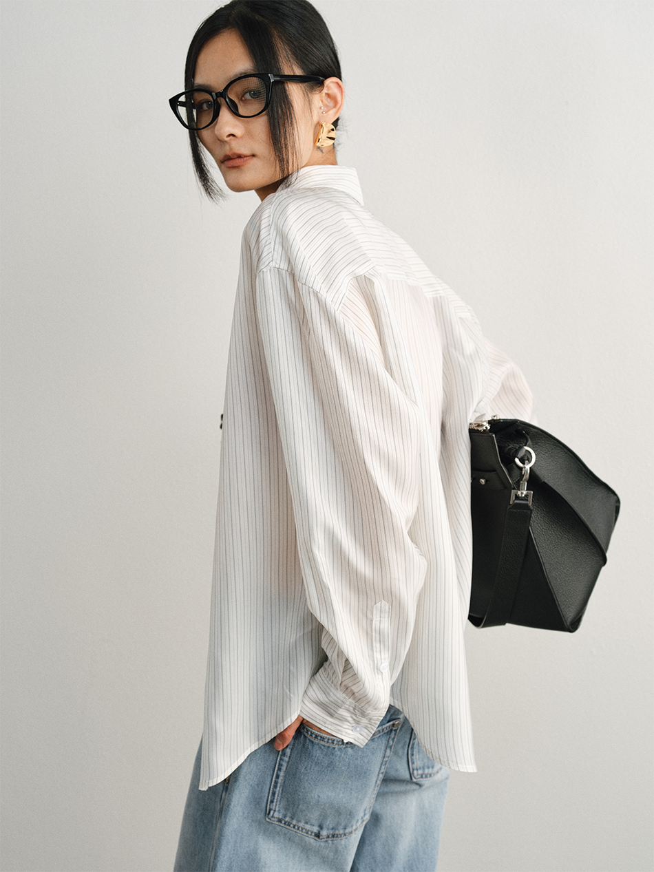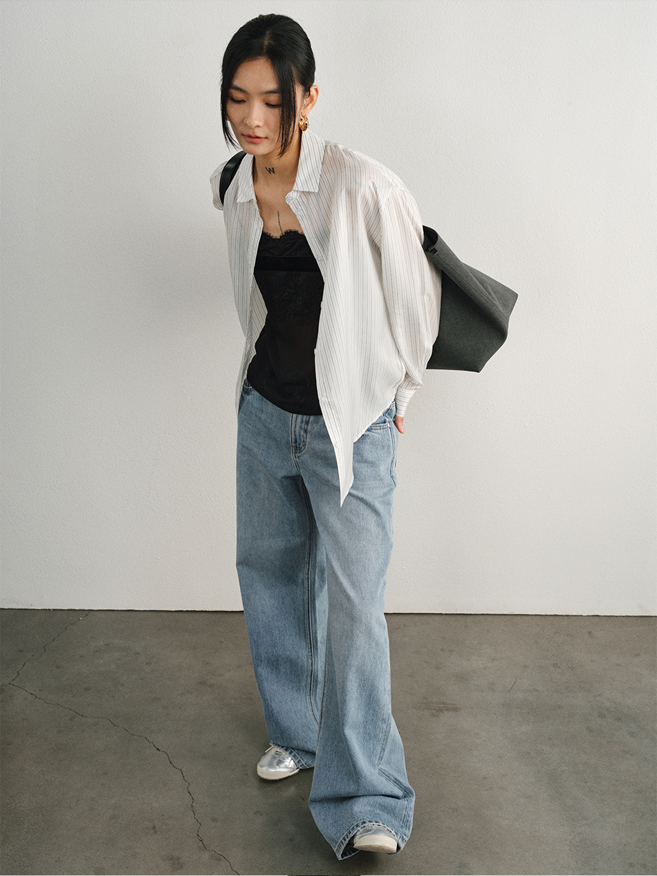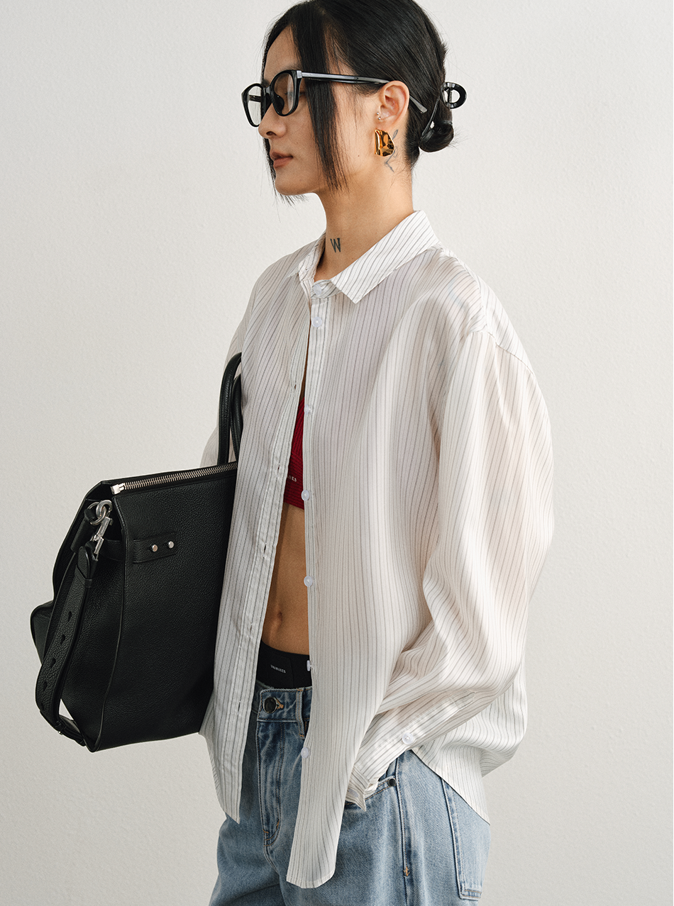 [UNAWARES] Thin Transparent Cuprammonium Striped Long Sleeve Shirt
